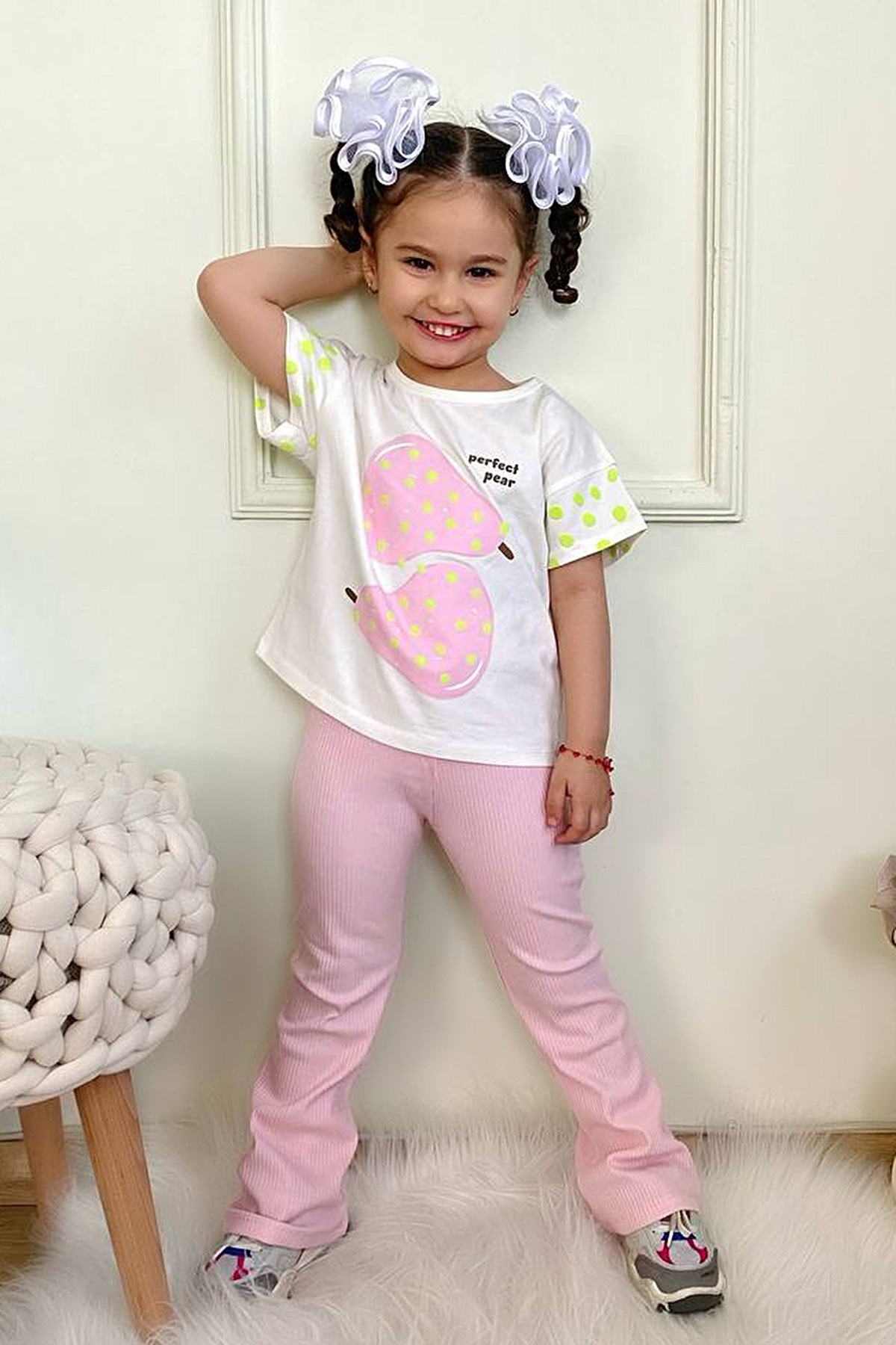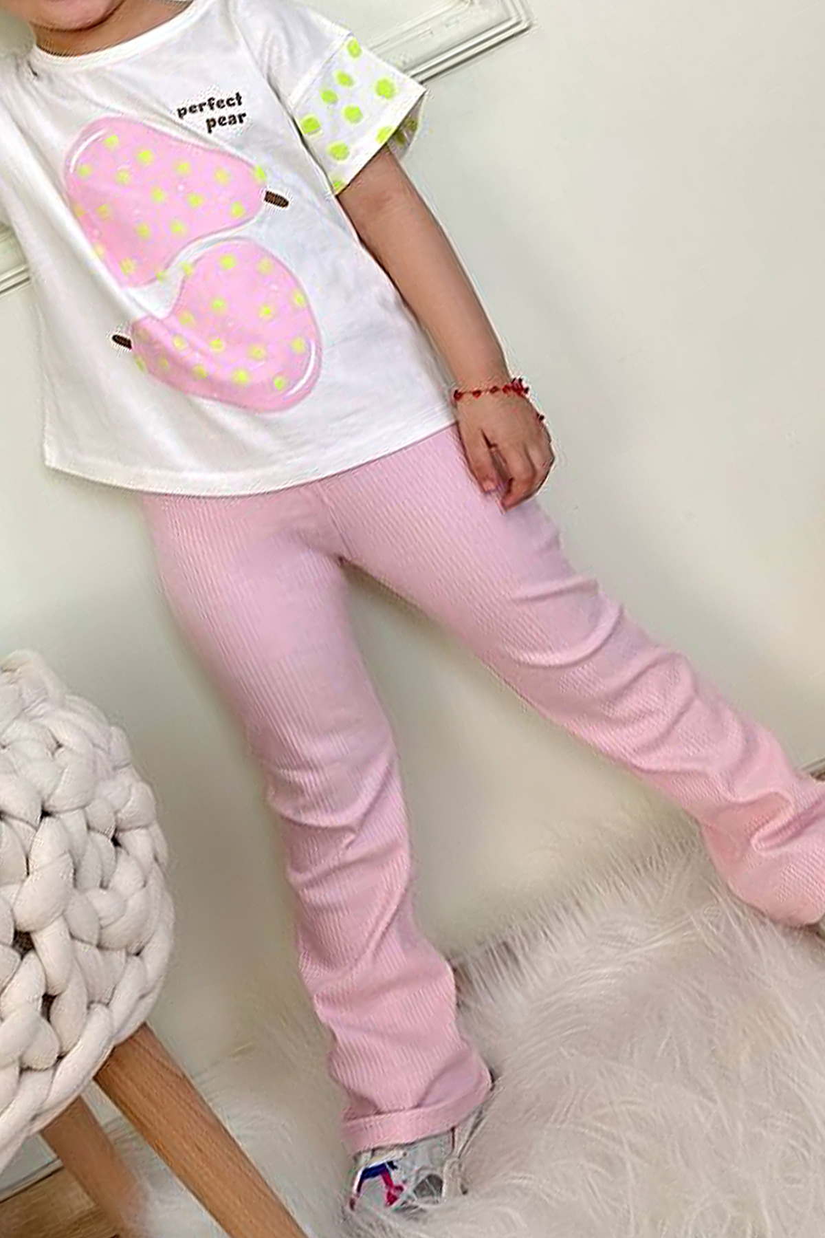 Kız Çocuk Armut Puantine Baskılı İspanyol Takım - 6289 (3-10 Yaş)