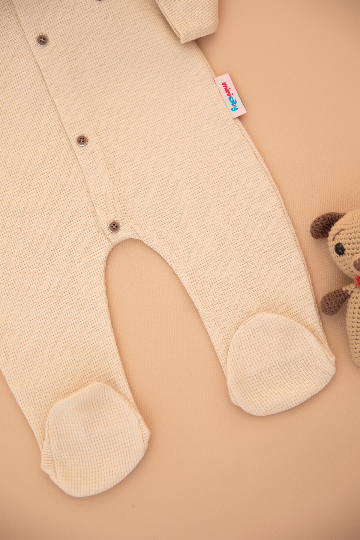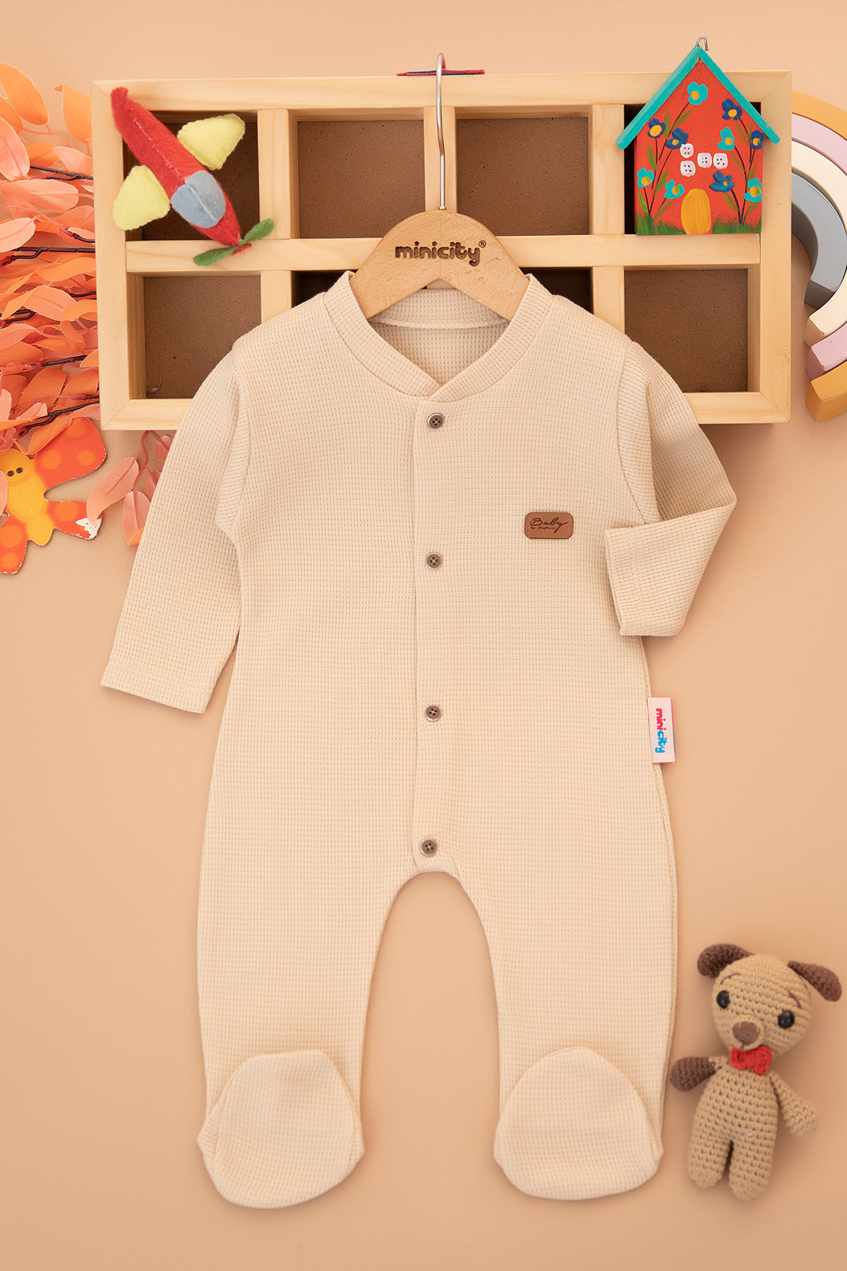Bebek Armalı Waffle Düz Tulum - 7002 (0-3 Ay)