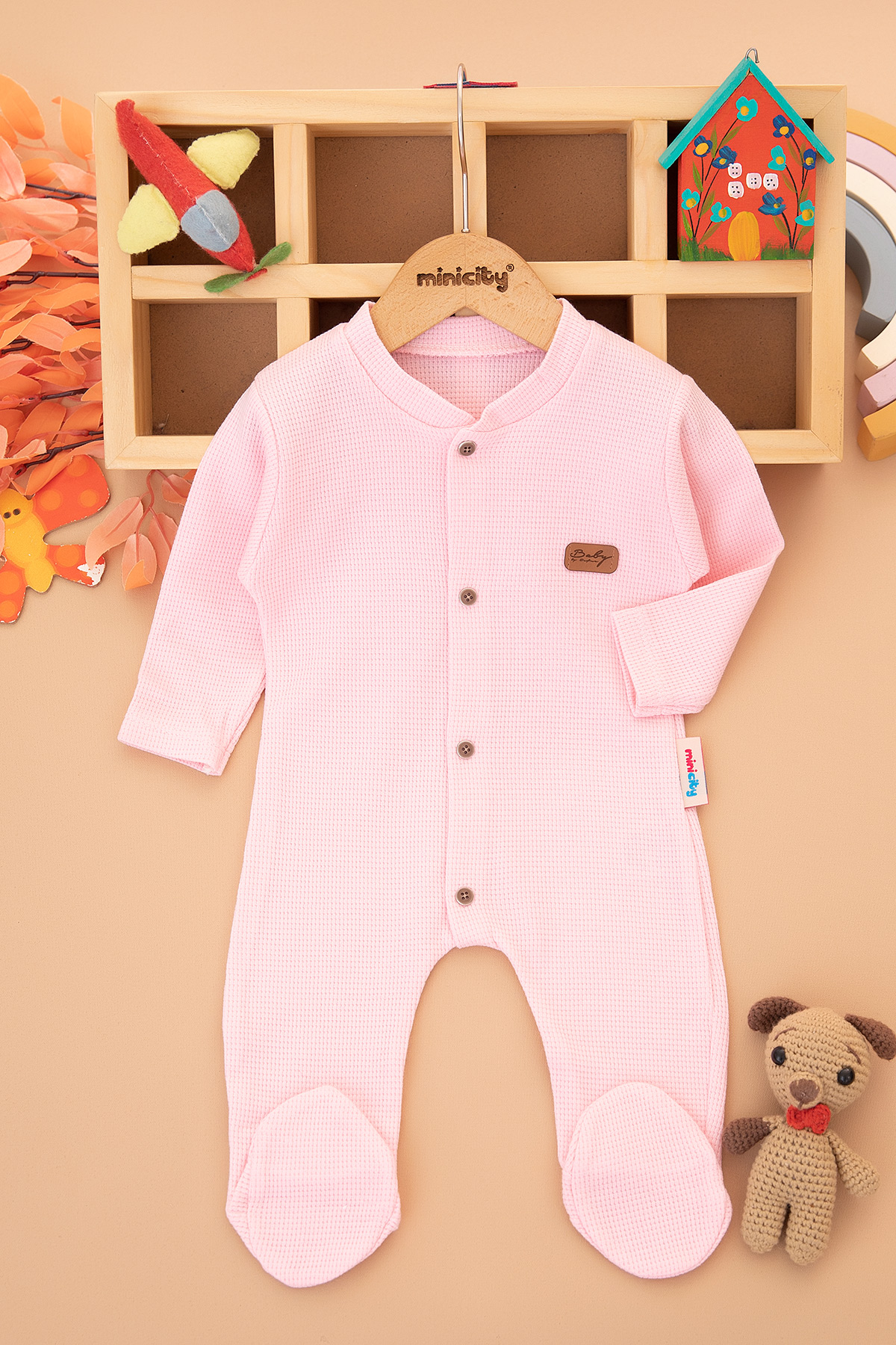 Bebek Armalı Waffle Düz Tulum - 7002 (0-3 Ay)