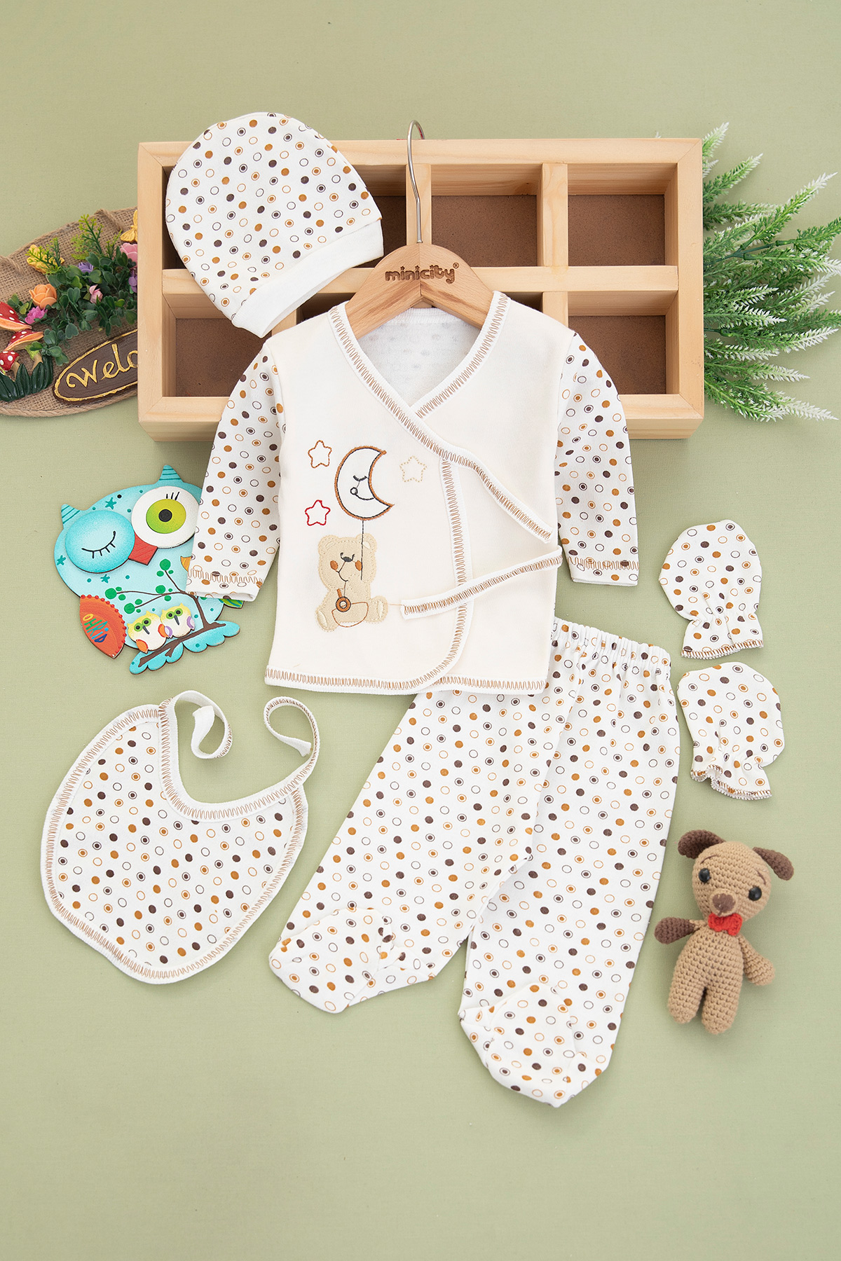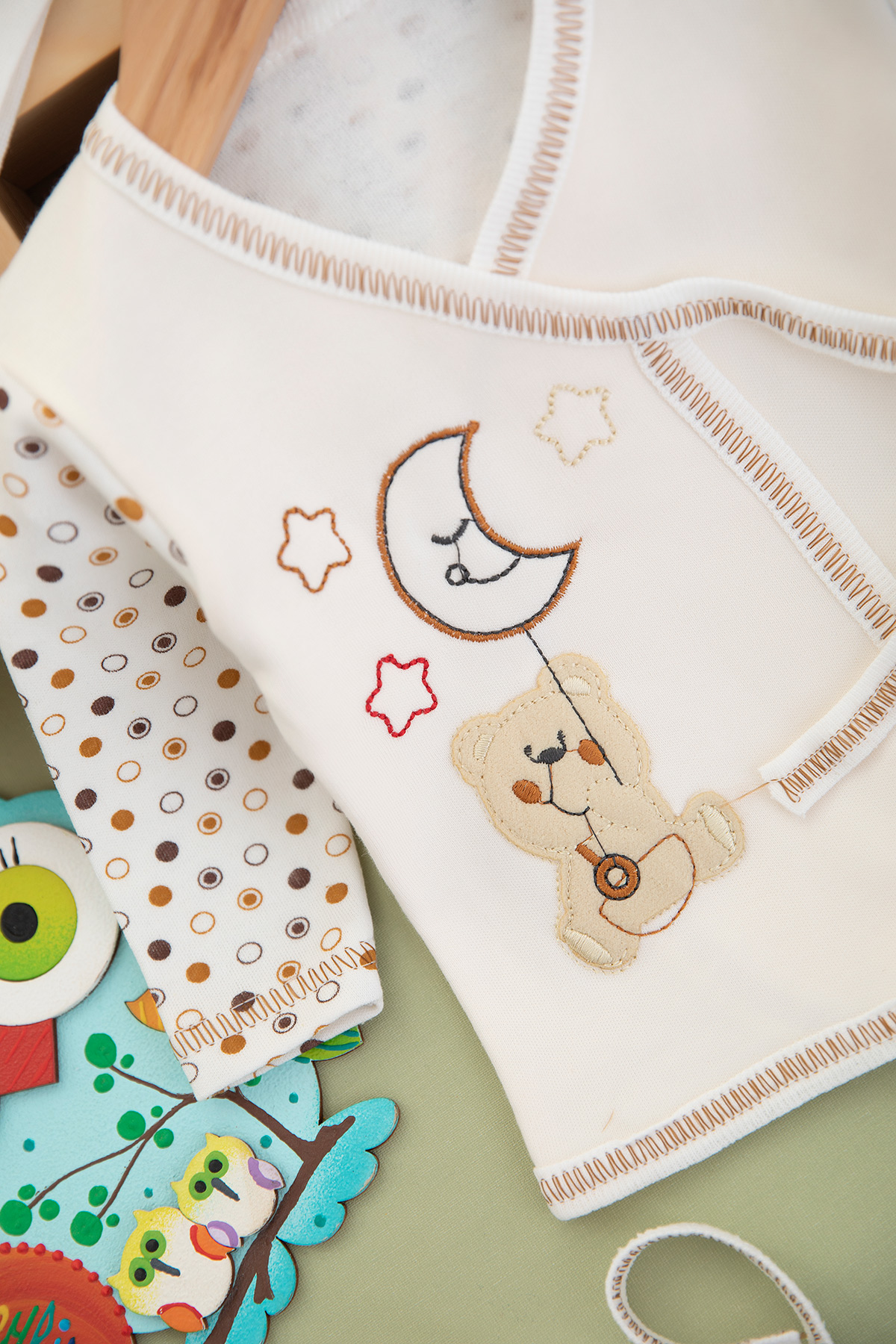 Bebek Ay Ve Ayıcık Nakışlı 5`Li Zıbın Seti