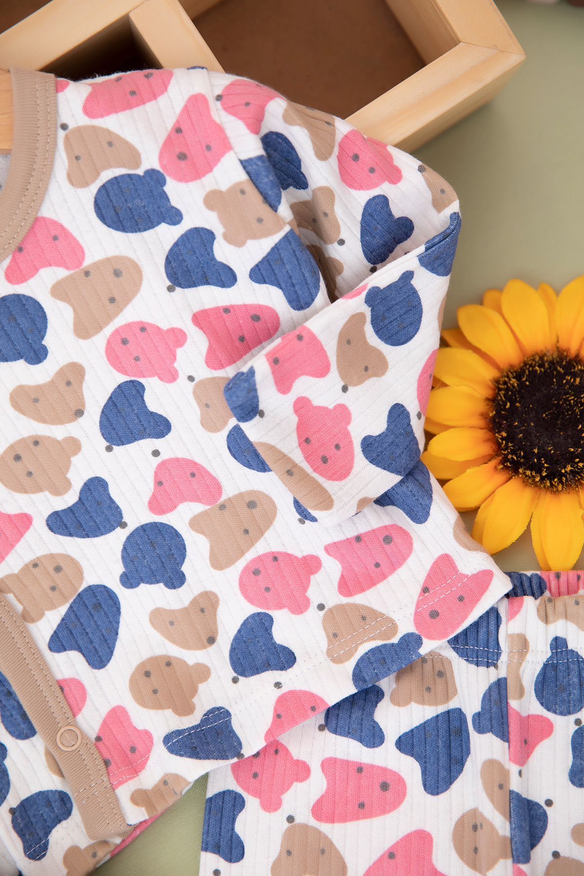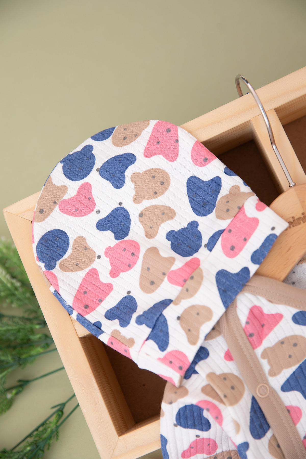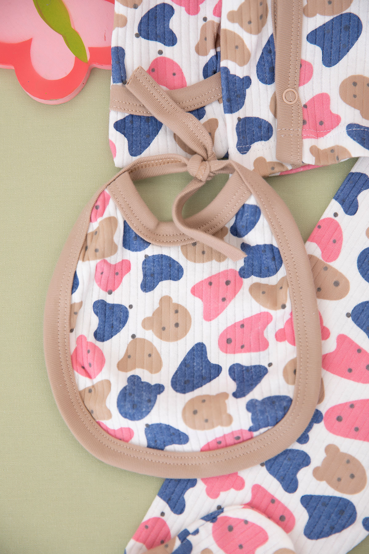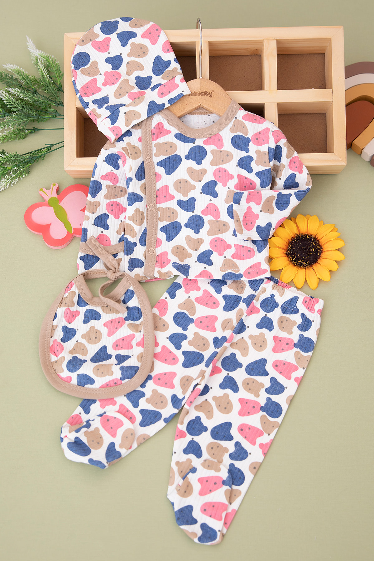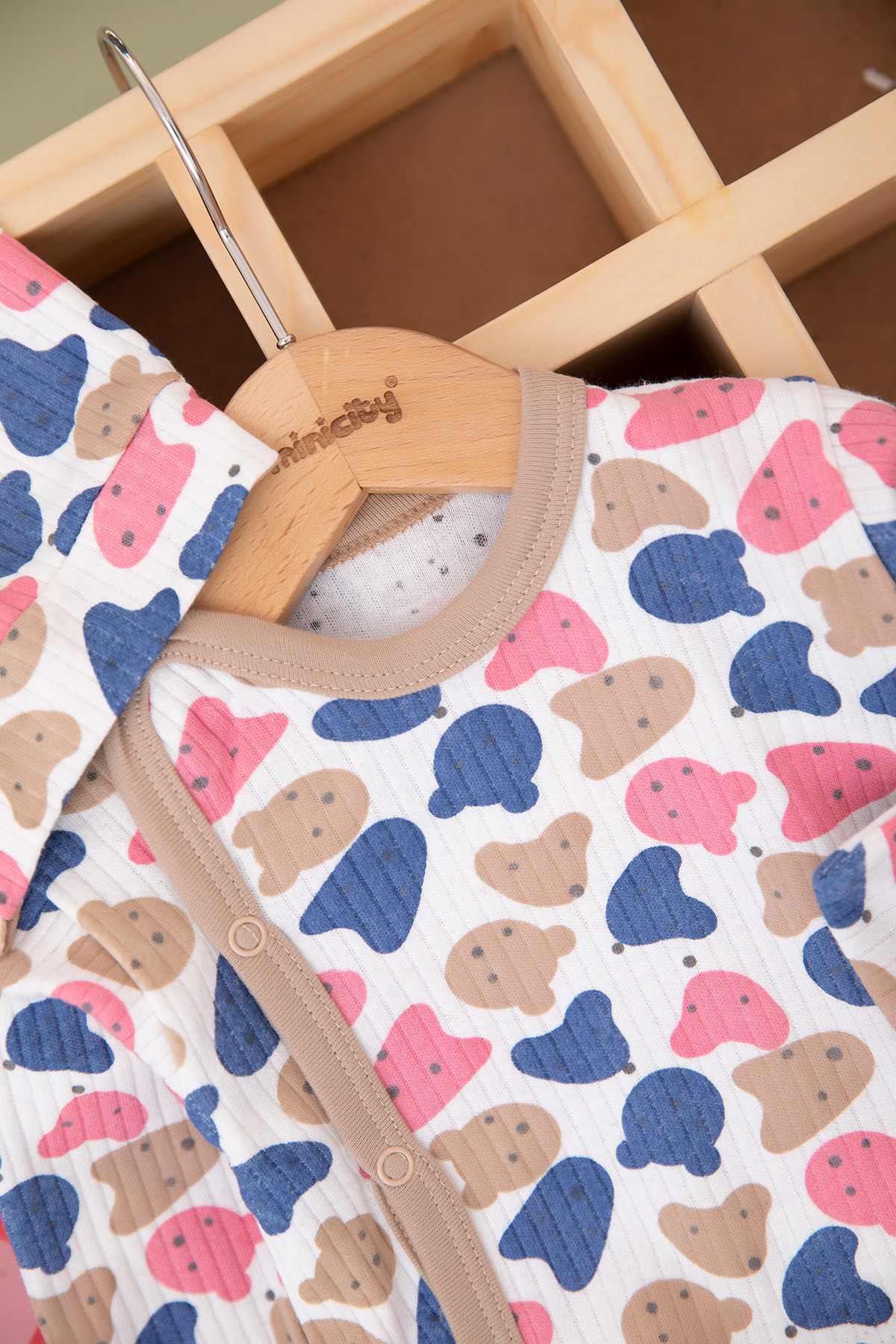 Bebek Ayıcık Baskılı 5`Li Zıbın Seti - 1737 (3-9 Ay)