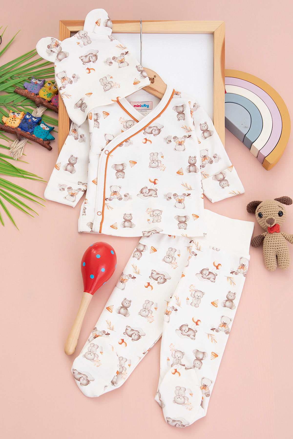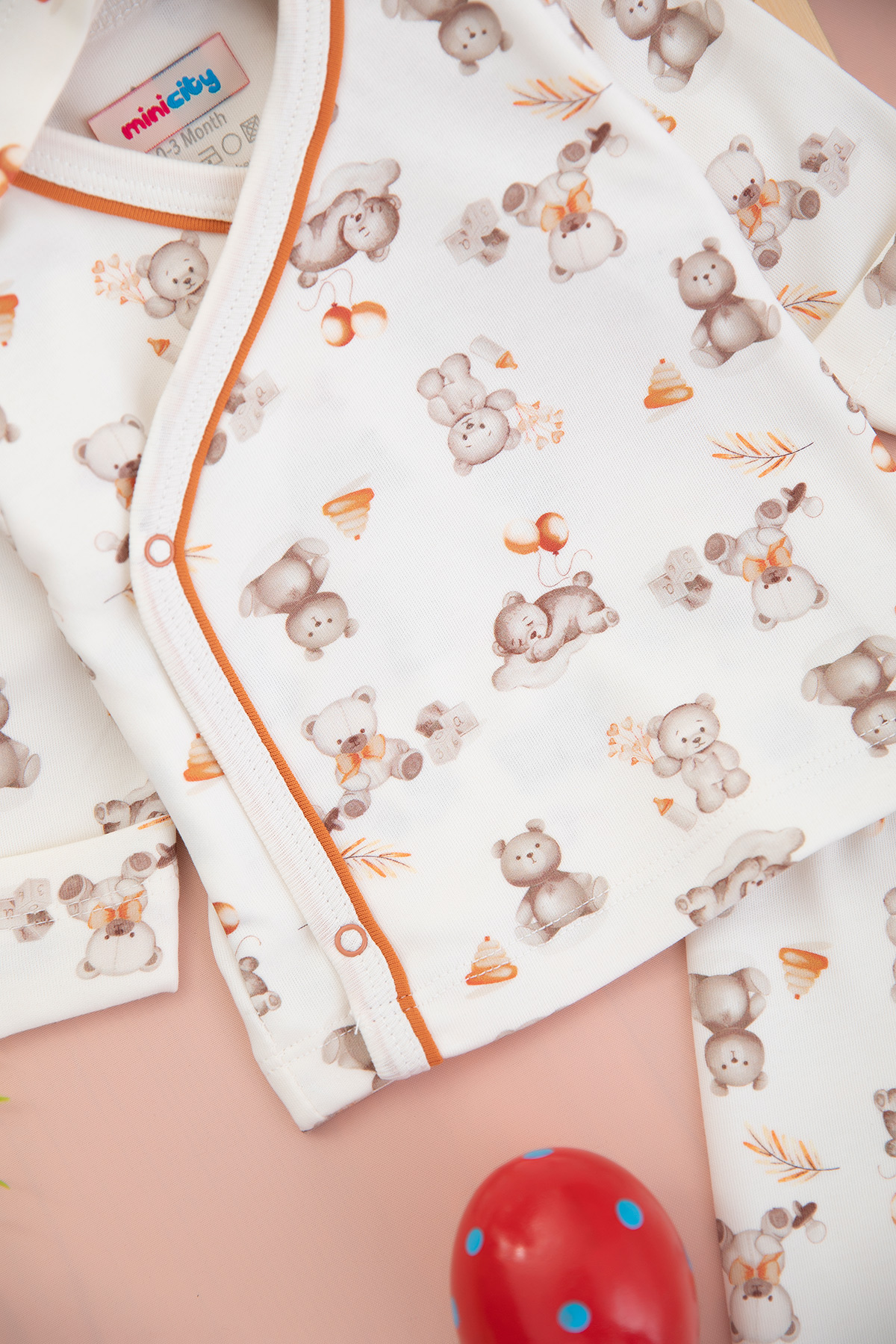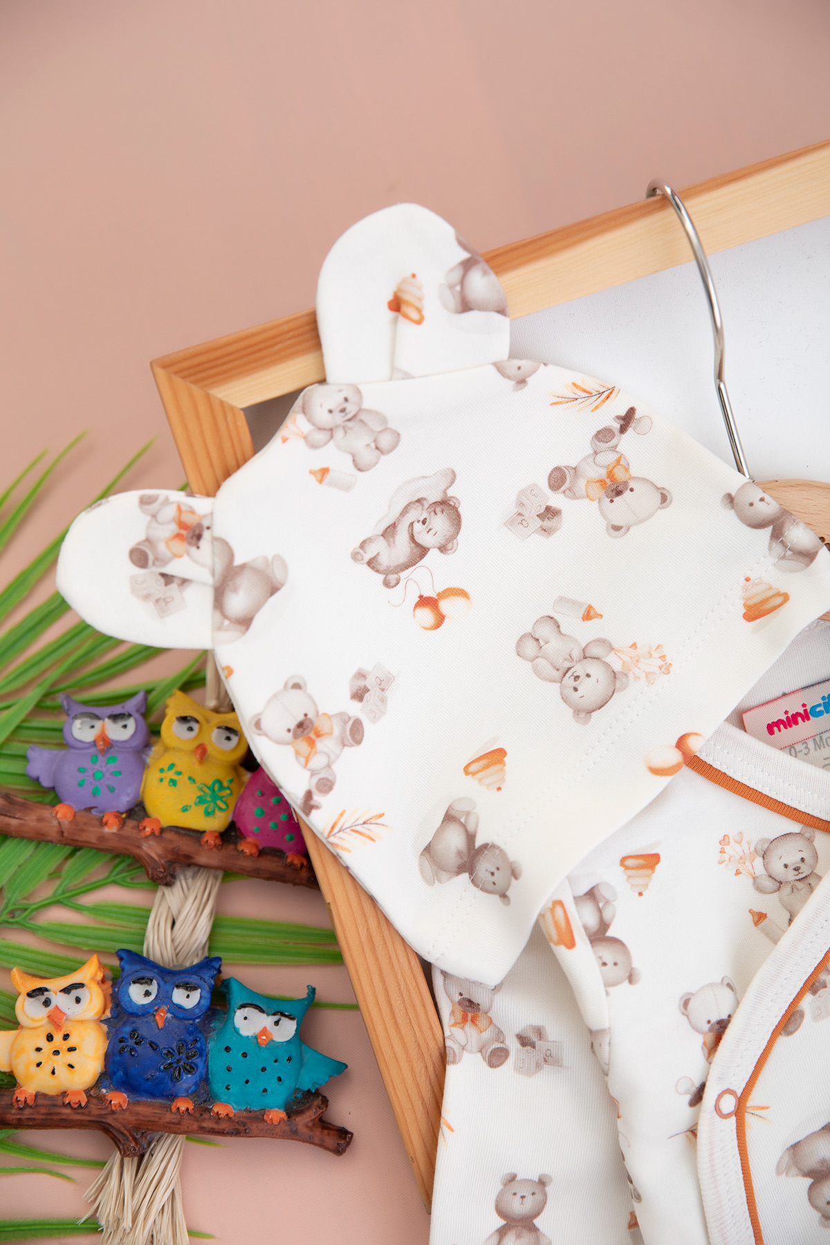 Bebek Ayıcık Biyeli Üçlü Zıbın Takım - 1062 (0-3 Ay)