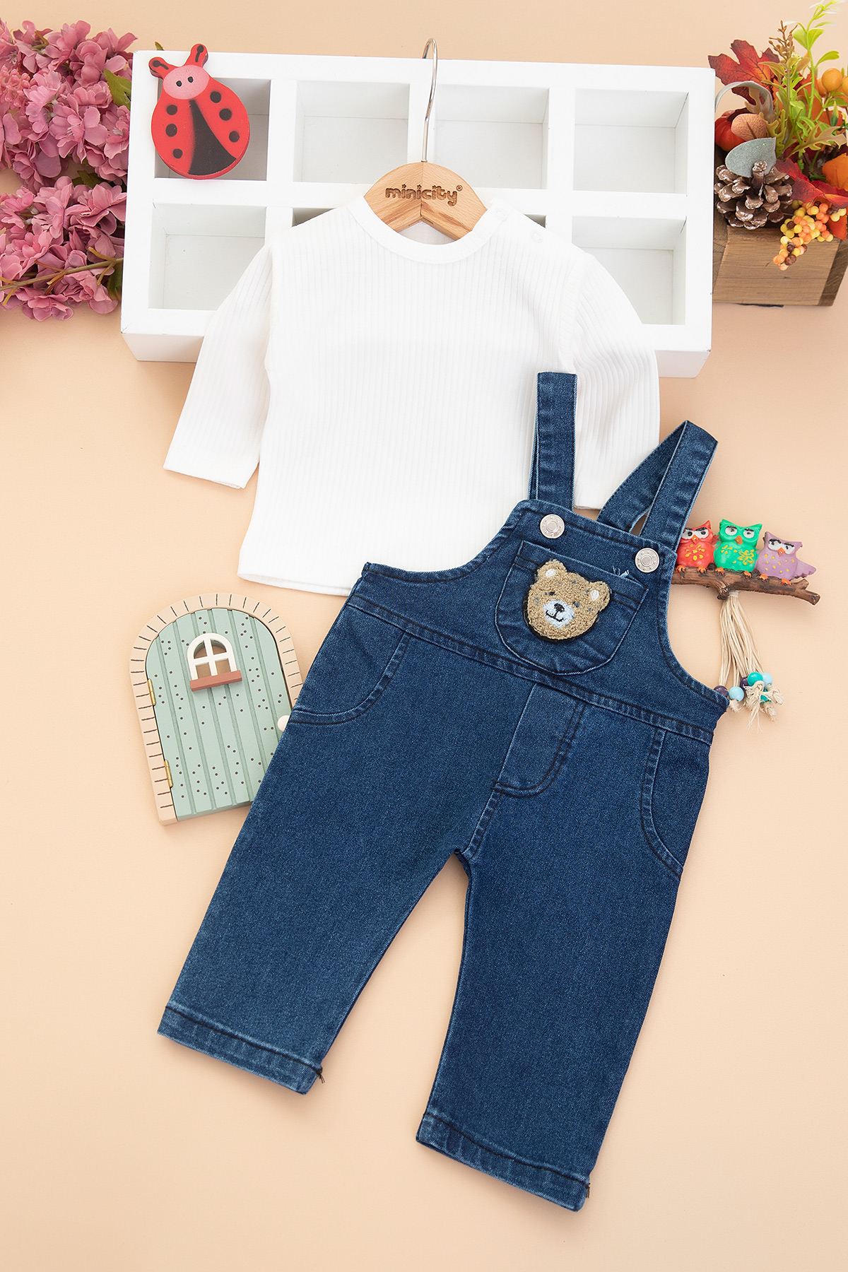Bebek Ayıcık İşlemeli Kot Tulum - 9979 (6-18 Ay)