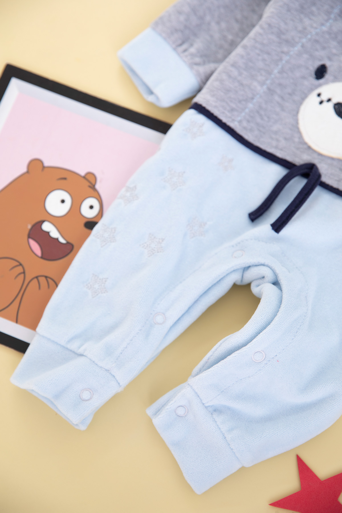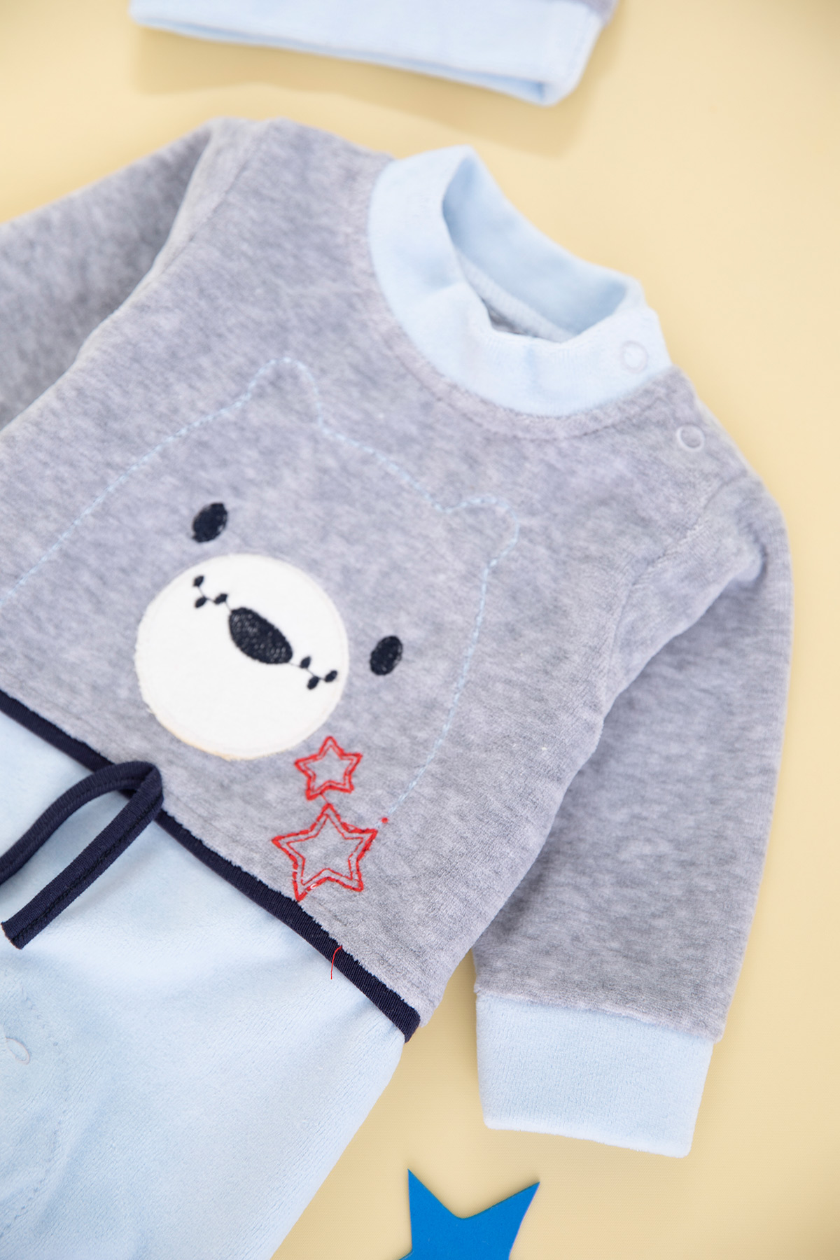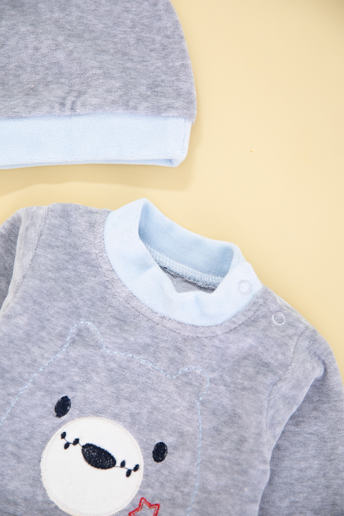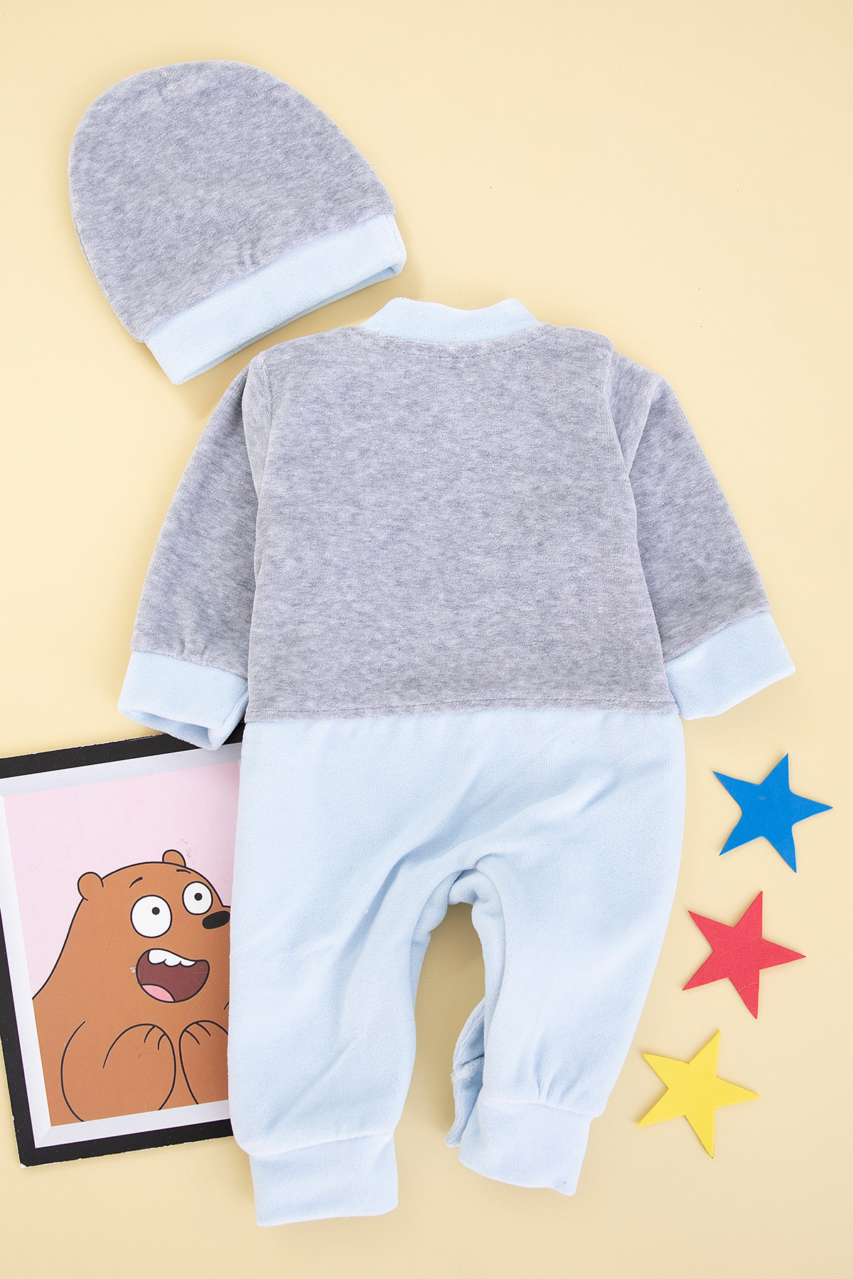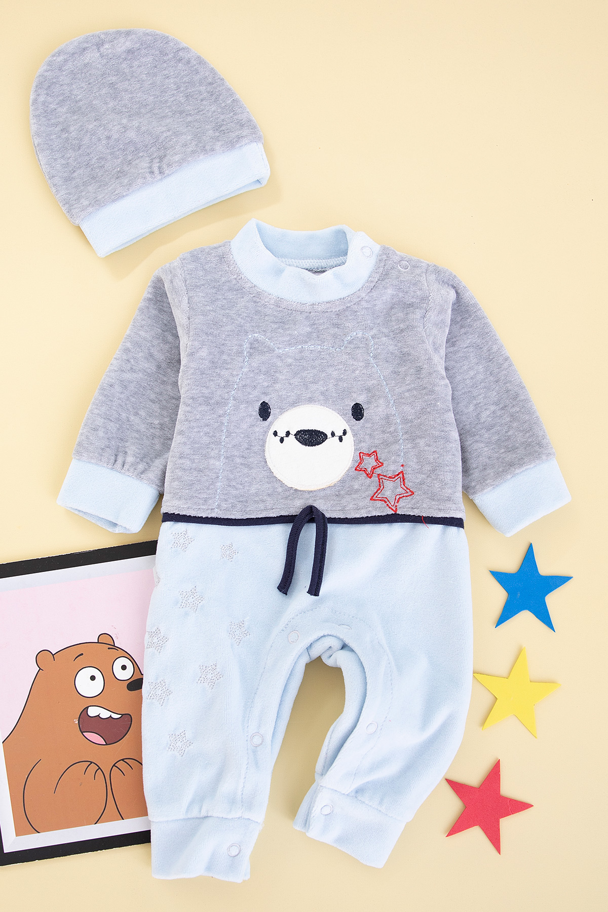 Bebek Ayıcık Nakışlı Kadife Tulum - 8247 (0-6 Ay)
