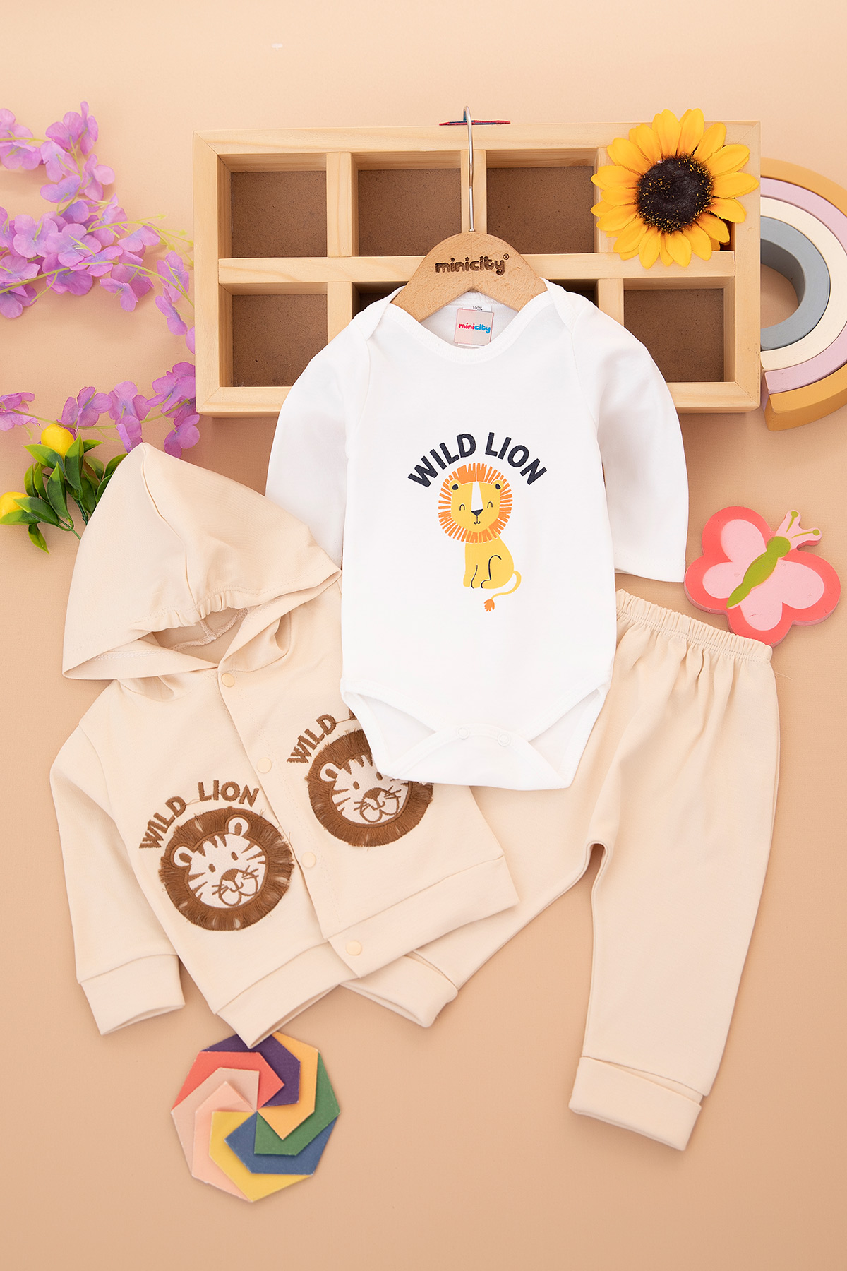 Bebek Baskılı Badili Üçlü Takım - 8282 (3-9 Ay)