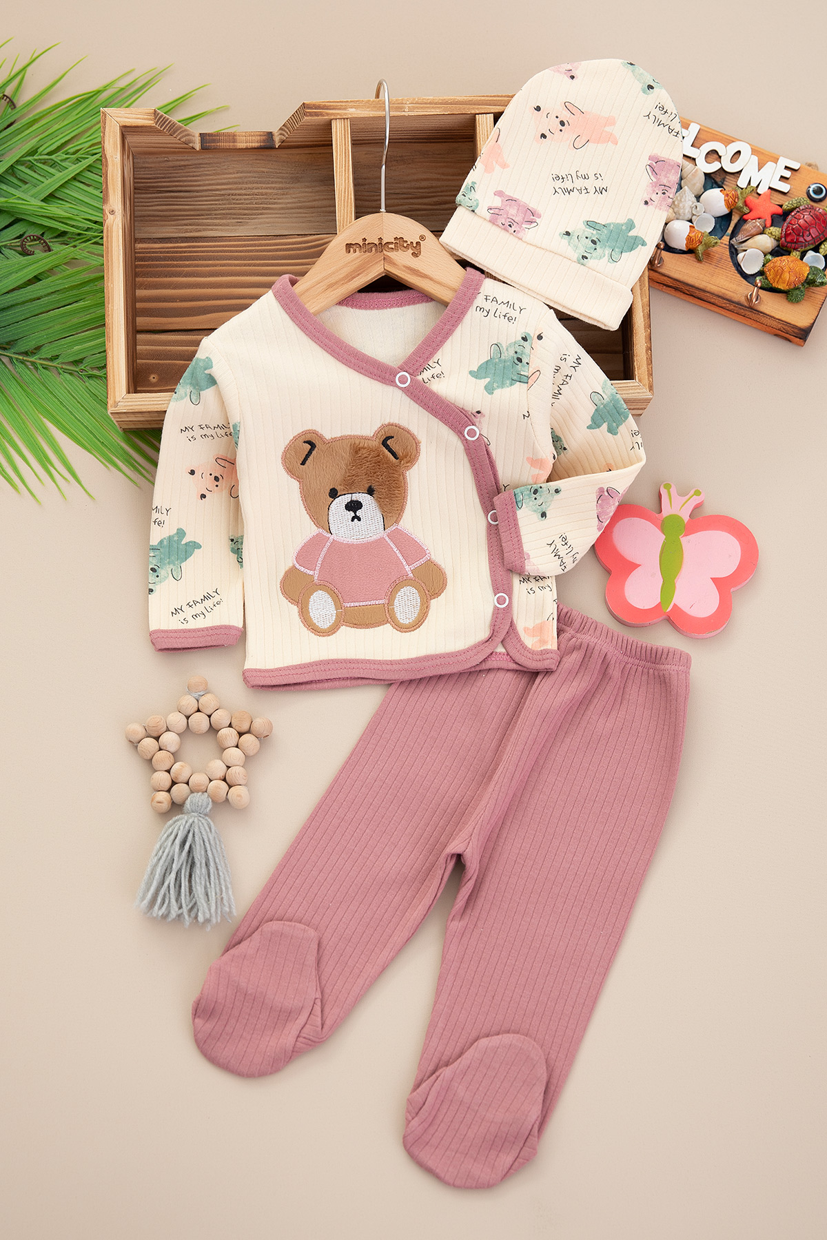Bebek Baskılı Nakışlı Raporlu Takım - 4255 (0-3 Ay)