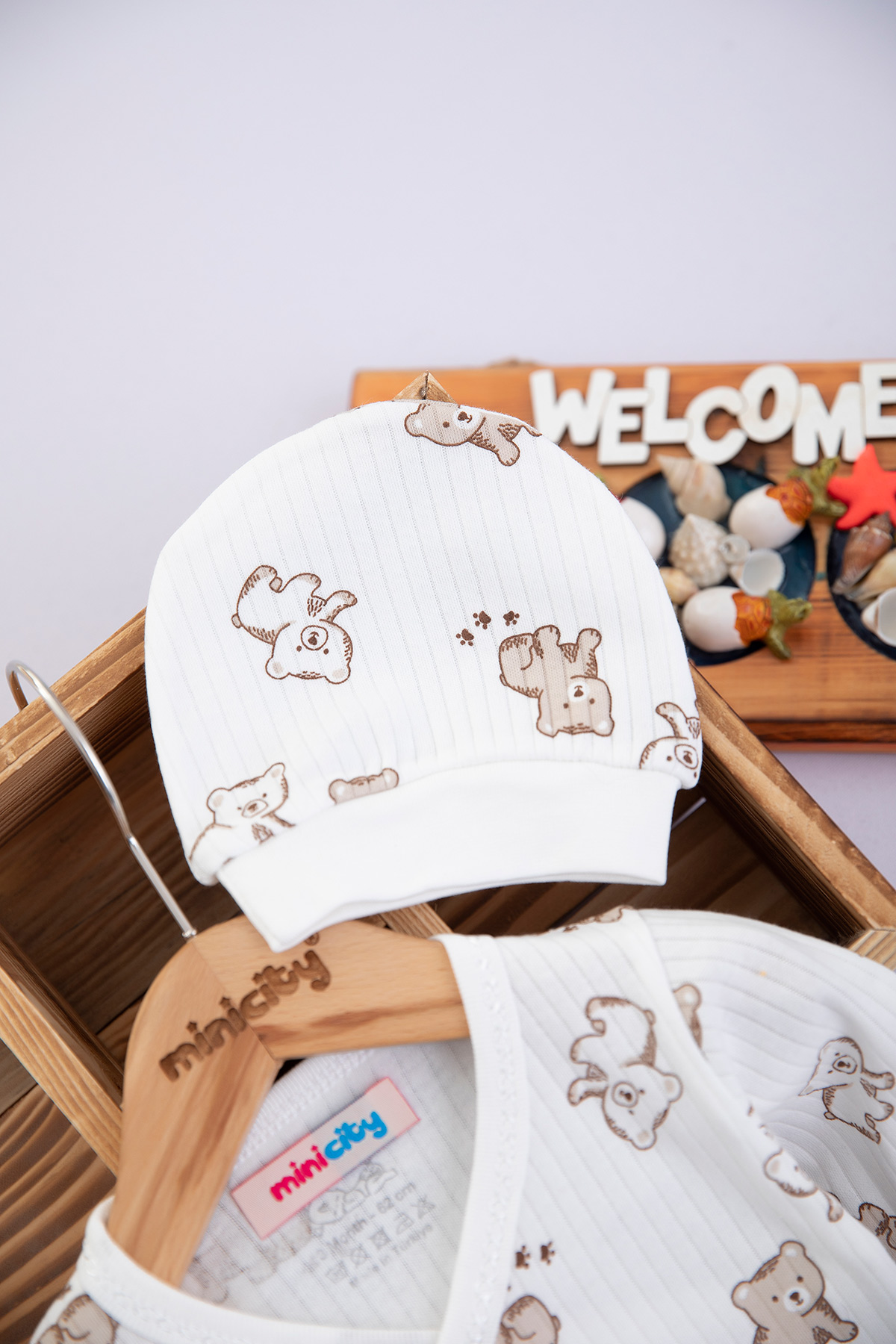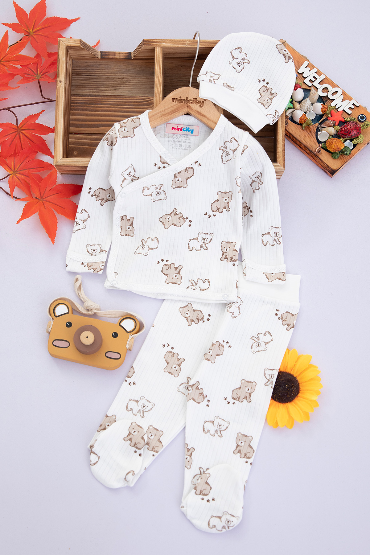 Bebek Baskılı Rapolrlu 3`Lü Zıbın Takım - 9689 (0-3 Ay)