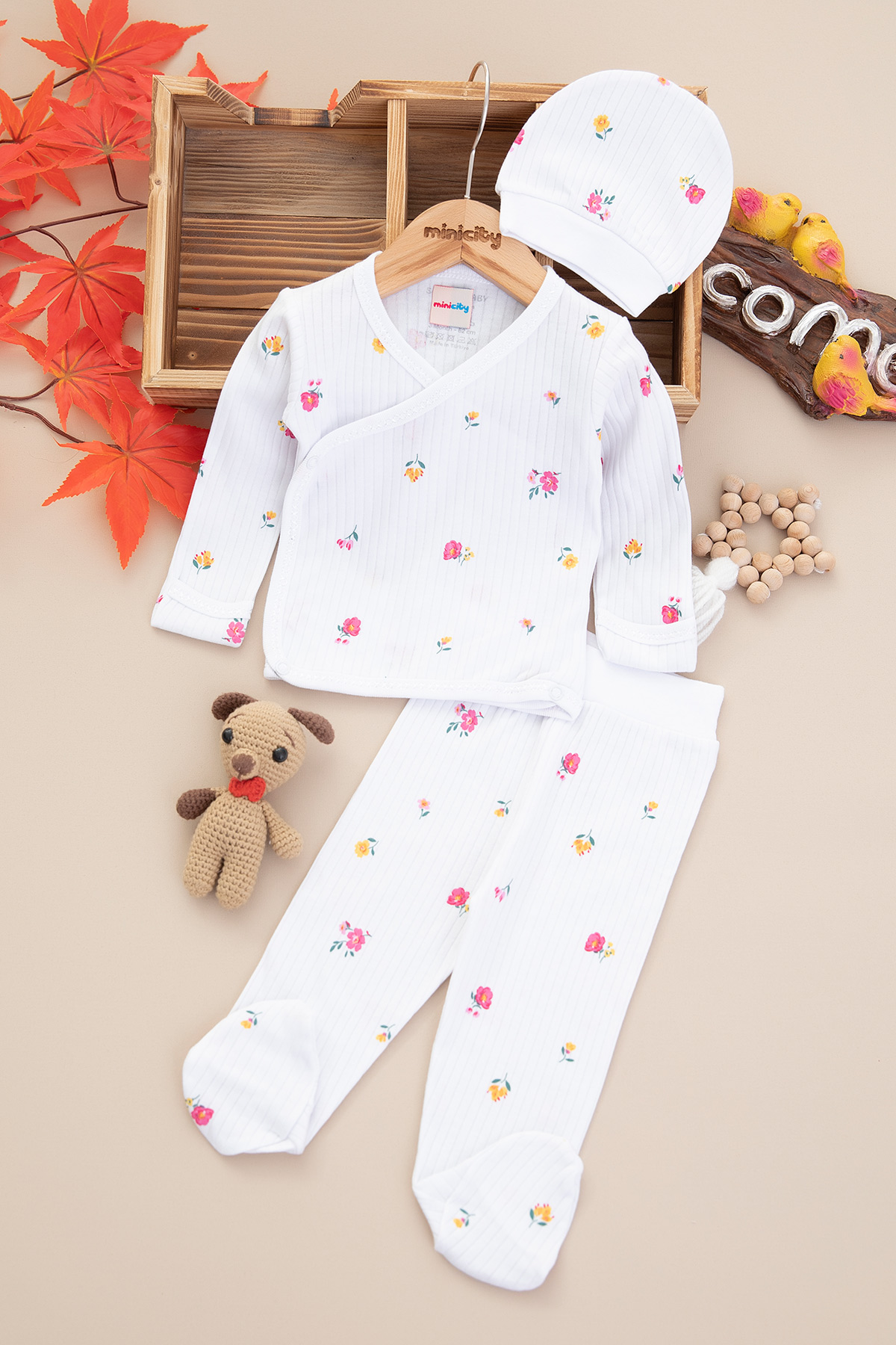 Bebek Baskılı Rapolrlu 3`Lü Zıbın Takım - 9689 (0-3 Ay)