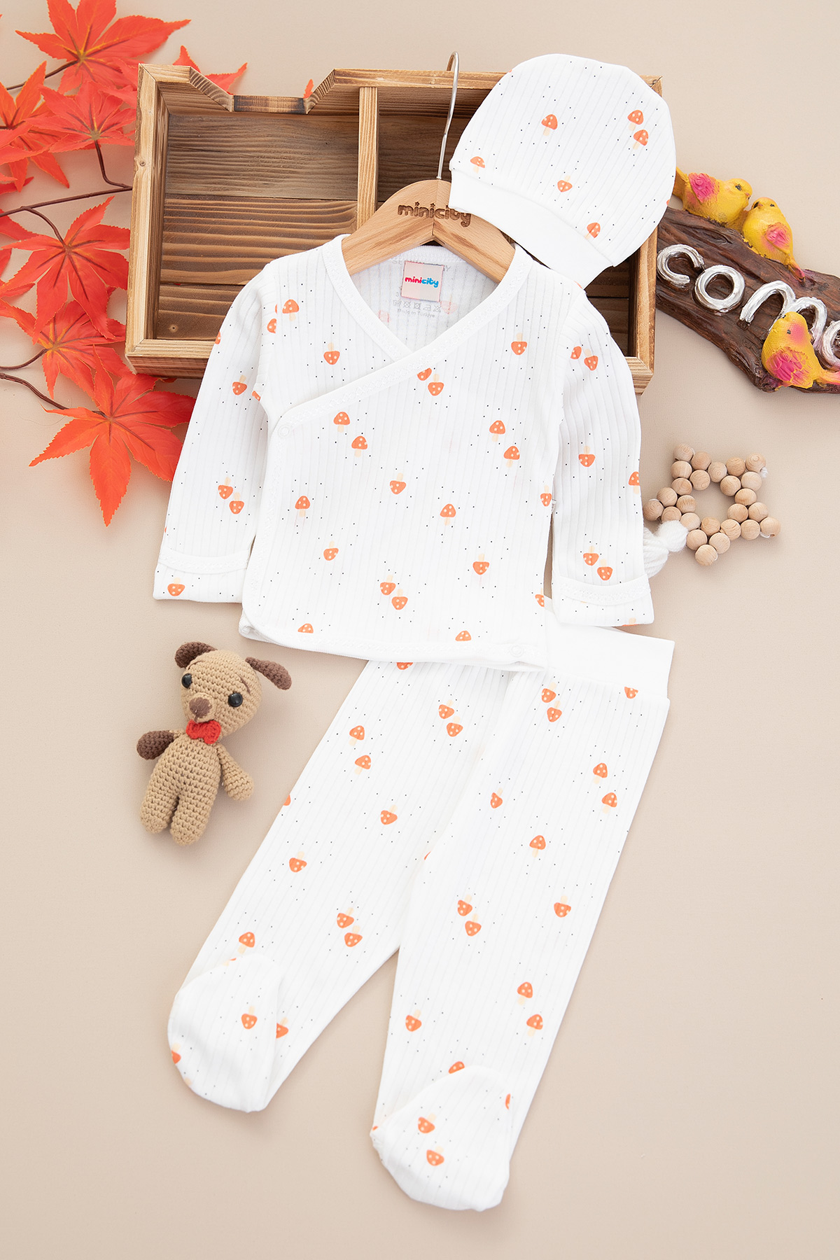 Bebek Baskılı Rapolrlu 3`Lü Zıbın Takım - 9689 (0-3 Ay)