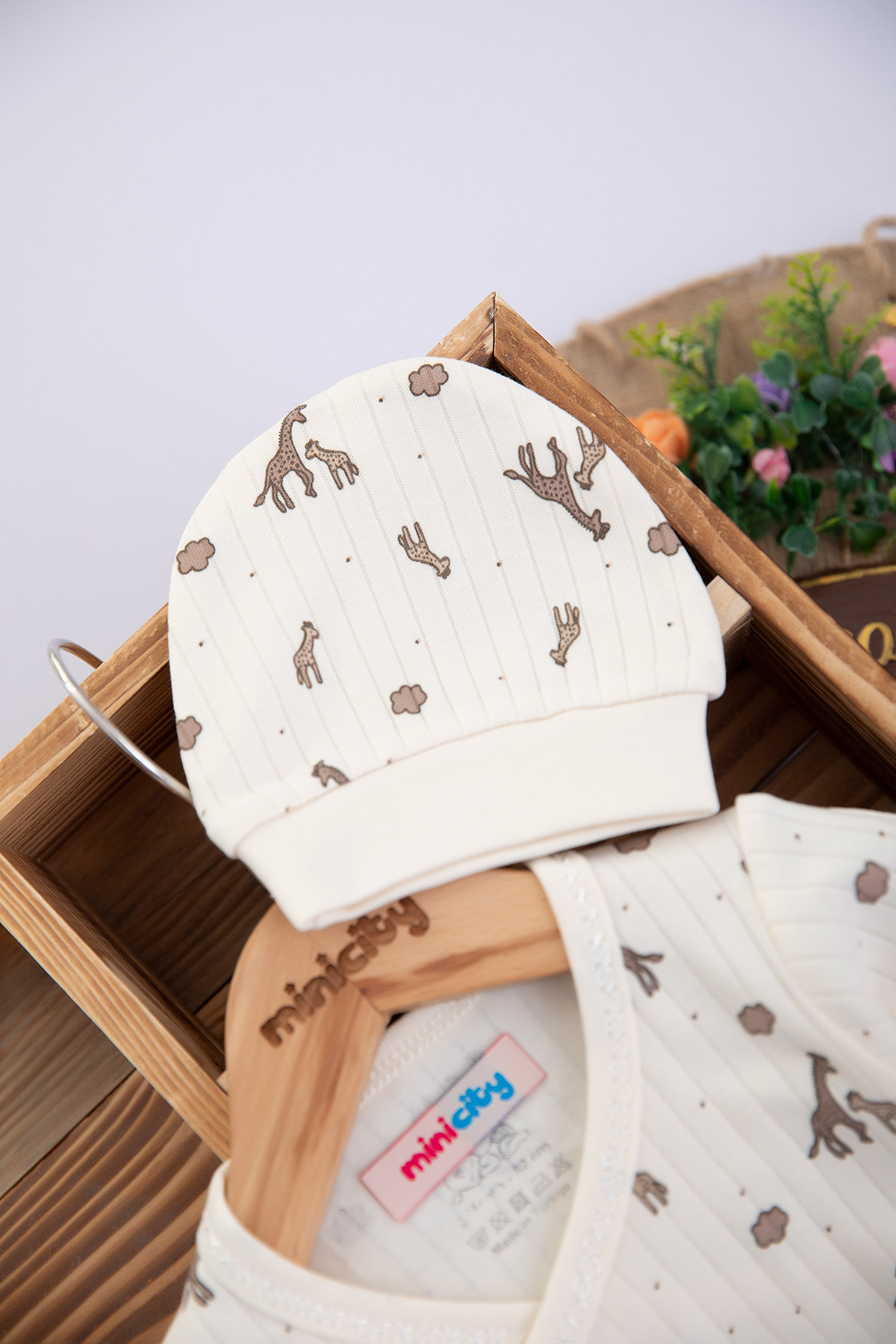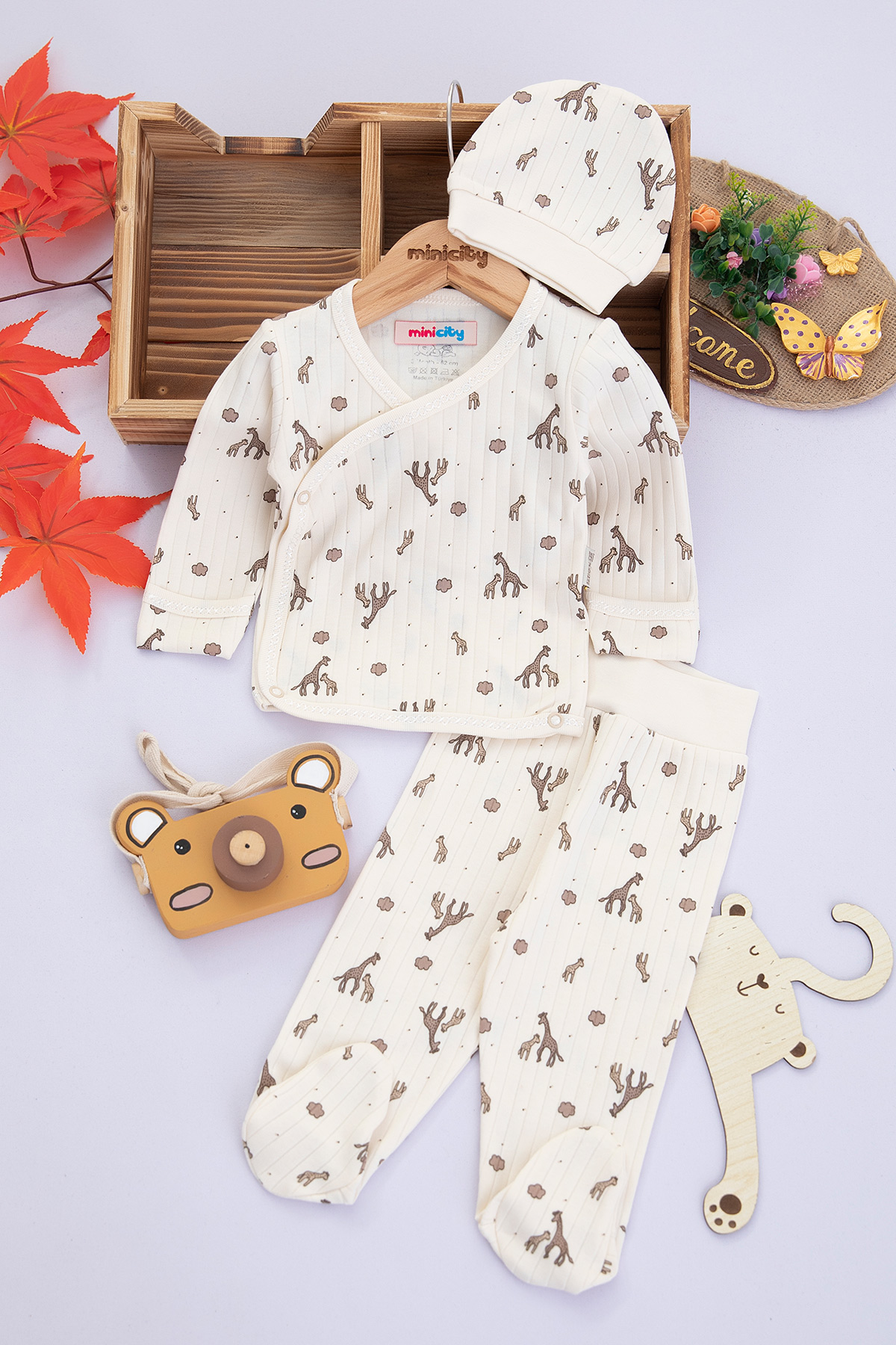 Bebek Baskılı Rapolrlu 3`Lü Zıbın Takım - 9689 (0-3 Ay)