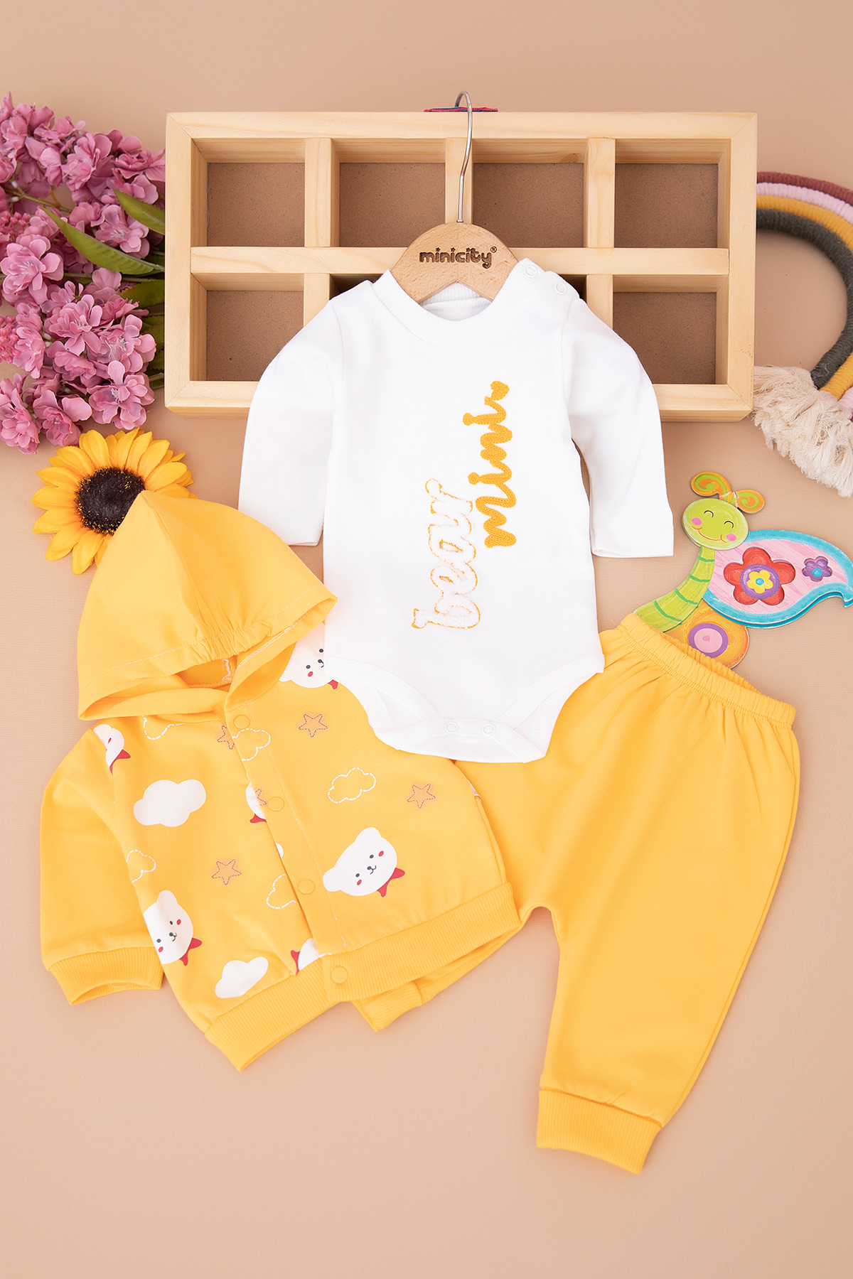 Bebek Bear Mini Nakışlı Üçlü Takım - 1718 (0-9 Ay)