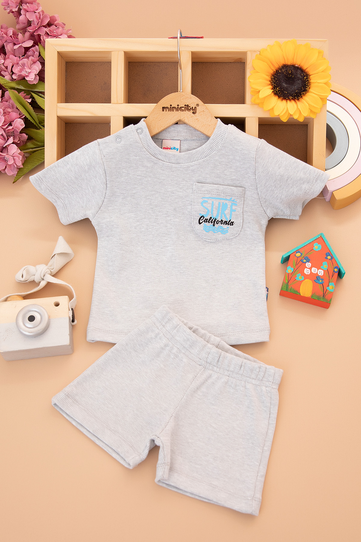 Bebek Cep Baskılı Şortlu Takım- 25143 (9-24 Ay)