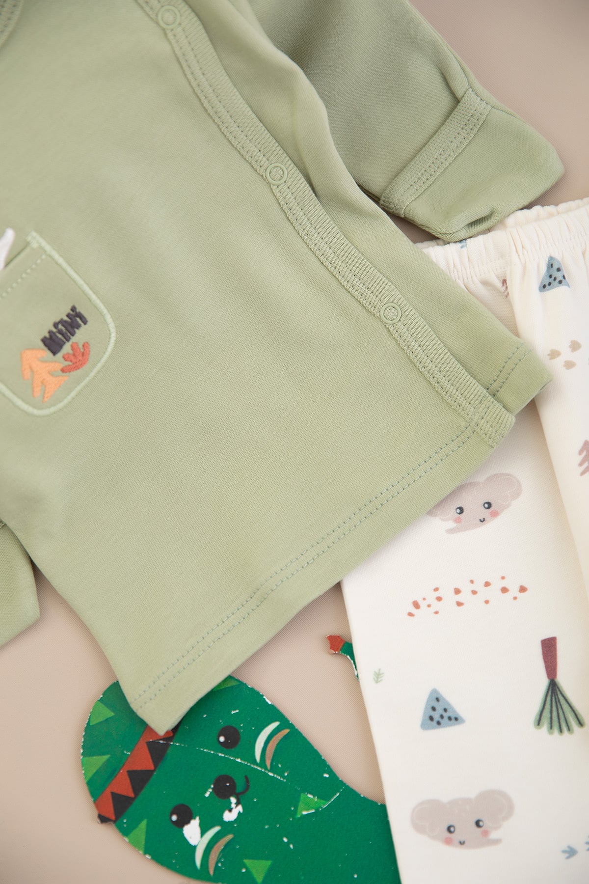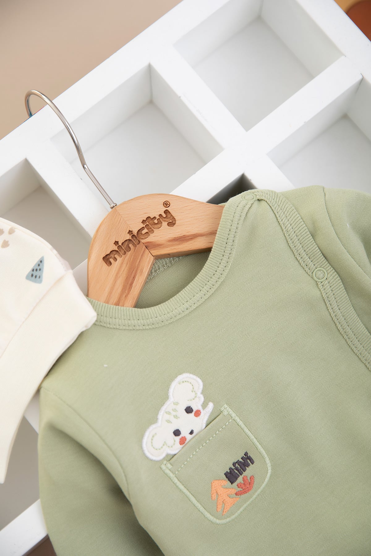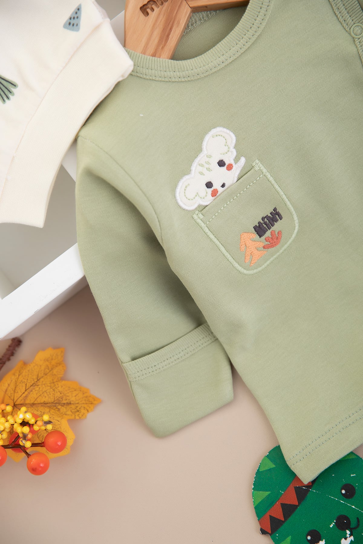 Bebek Cep Fil Nakışlı Zıbın Takım - 9411 (0-3 Ay)