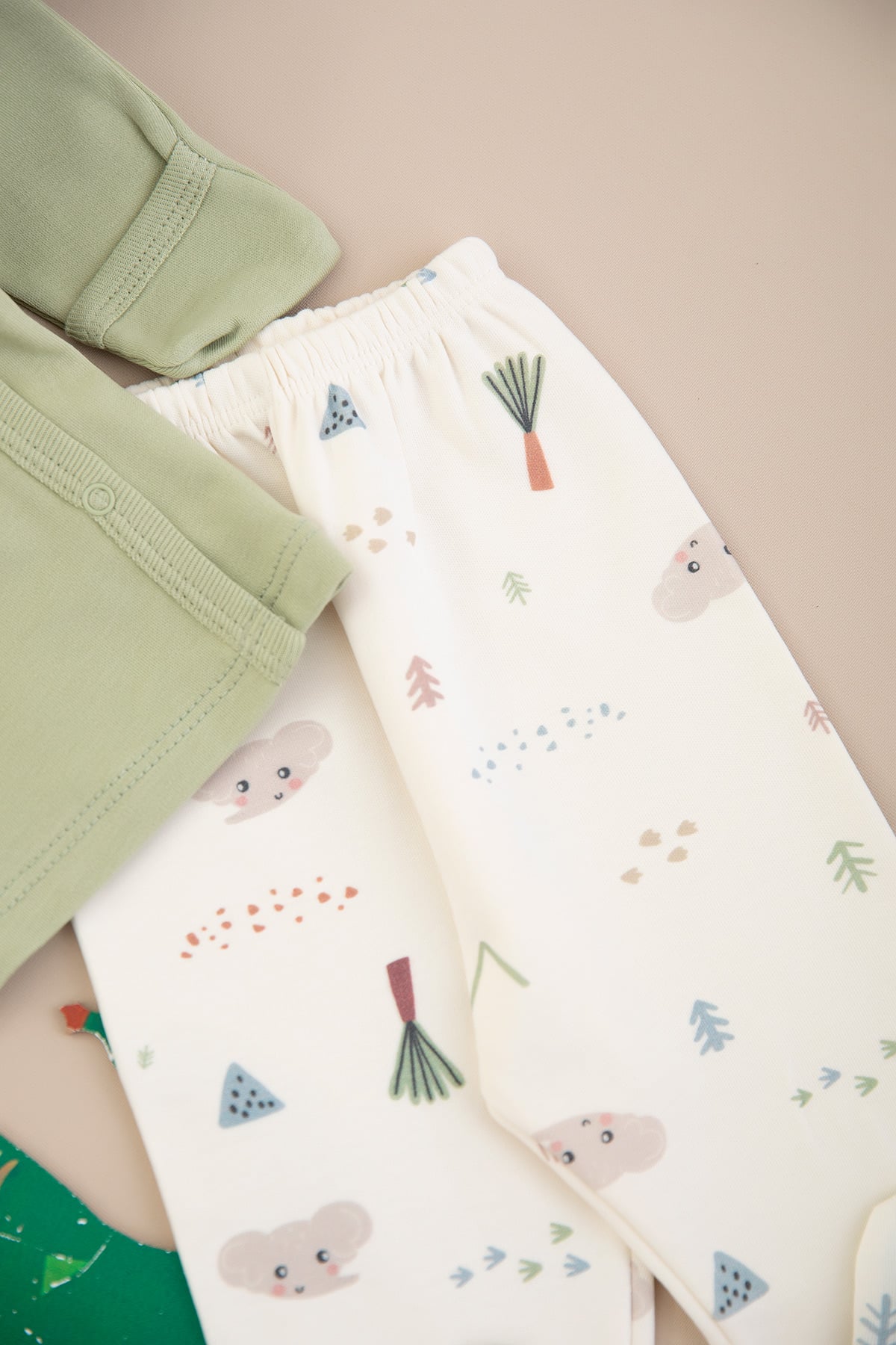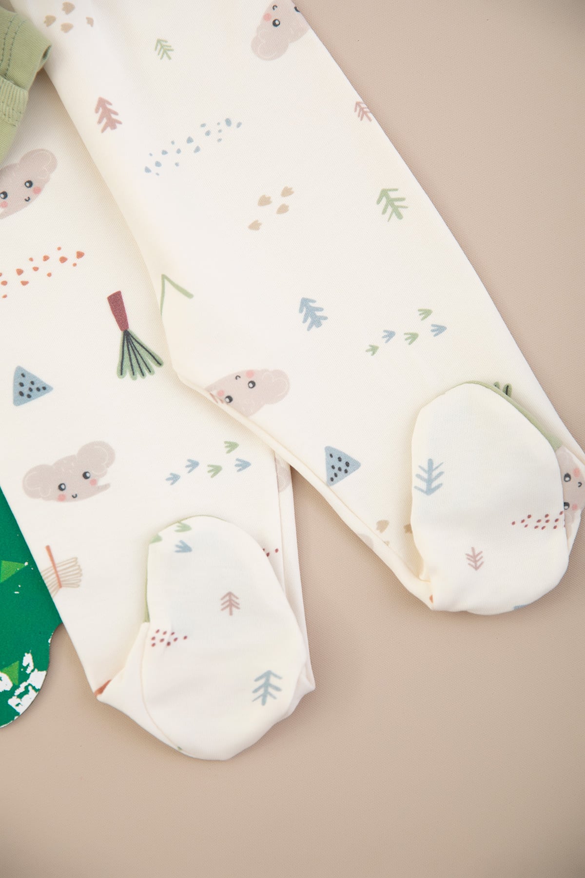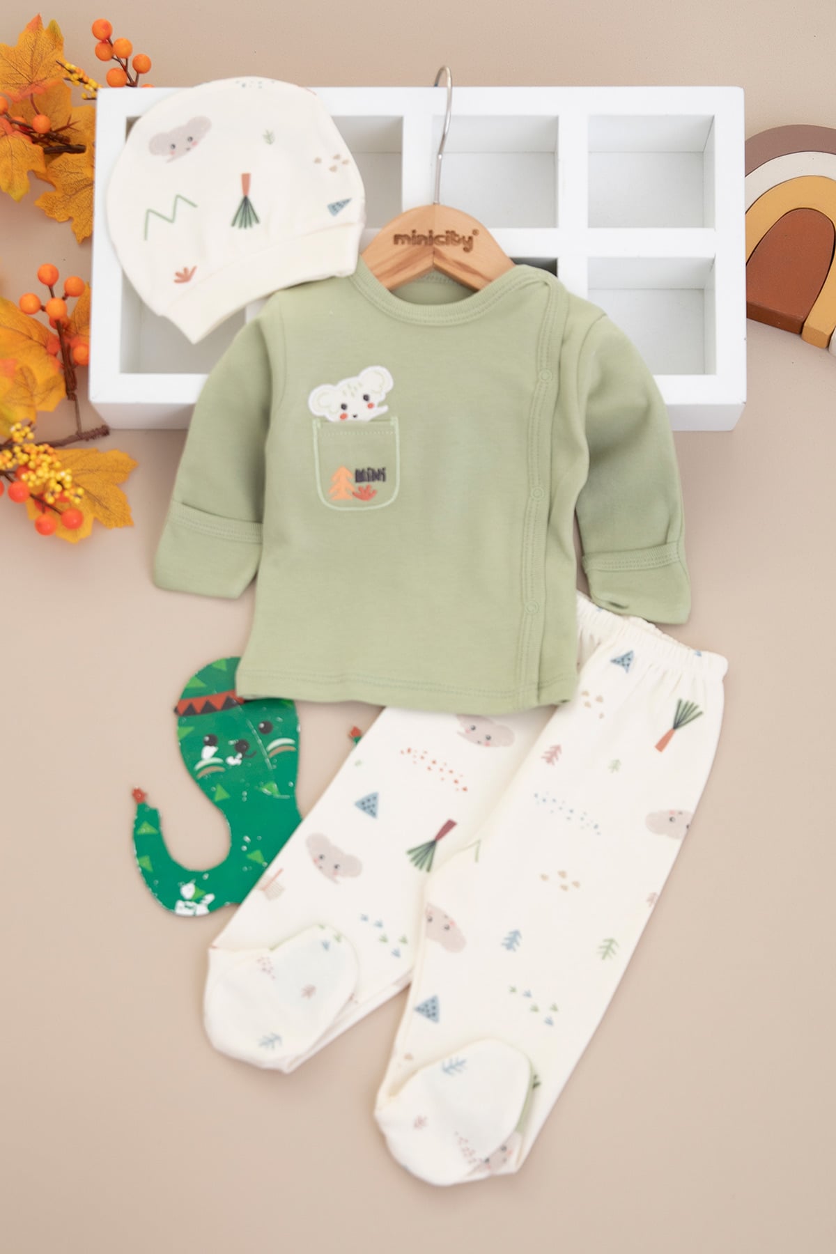 Bebek Cep Fil Nakışlı Zıbın Takım - 9411 (0-3 Ay)