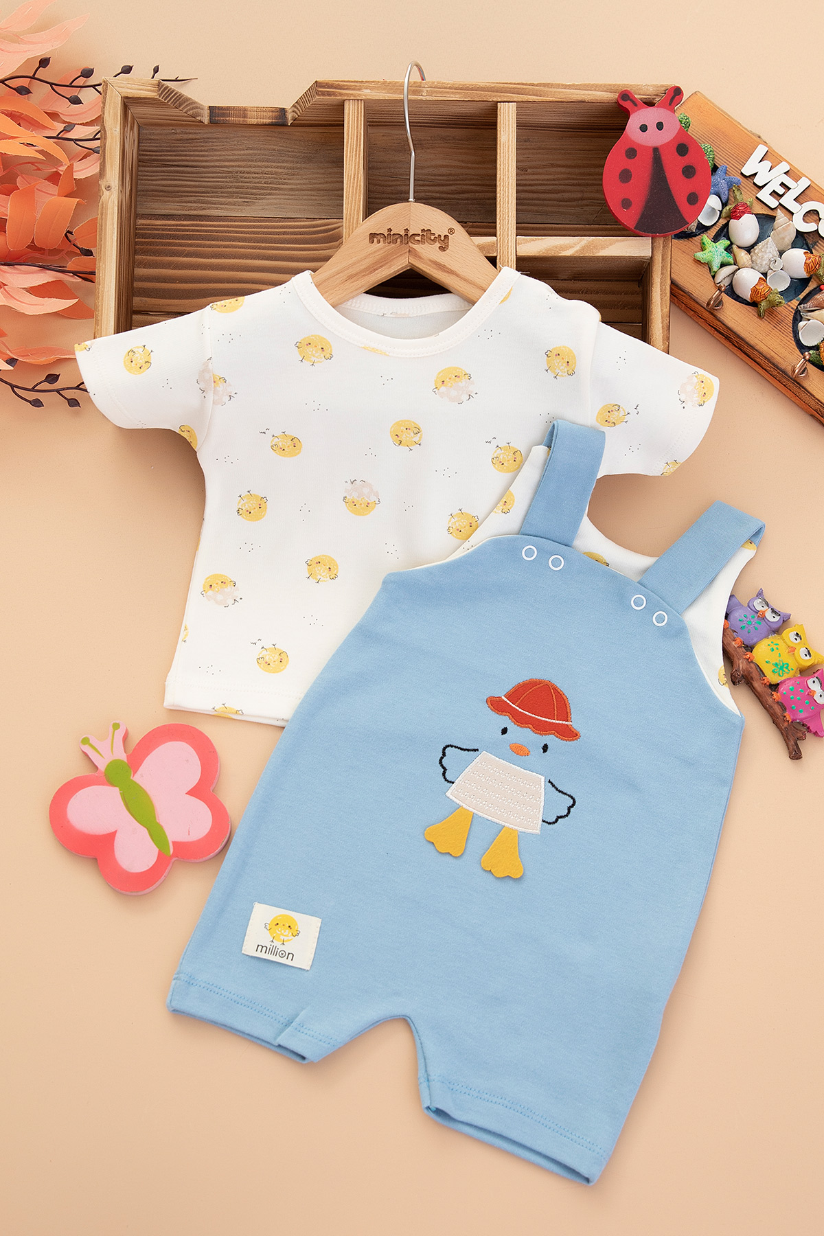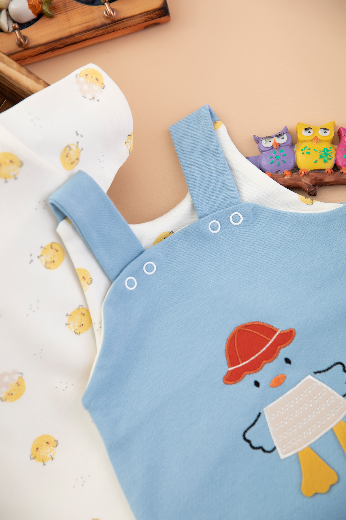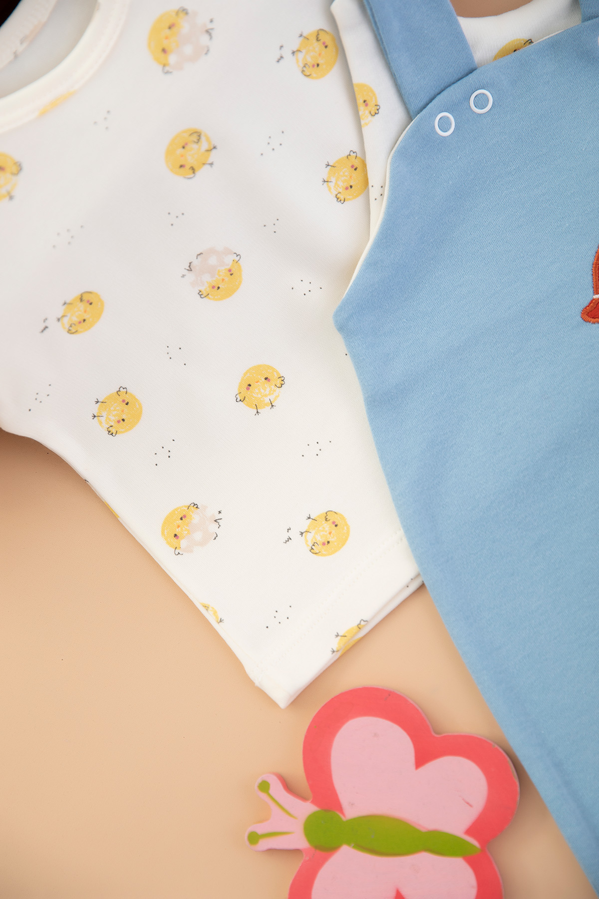 Bebek Civciv Nakışlı Şort Tulum - 4222 (3-9 Ay)
