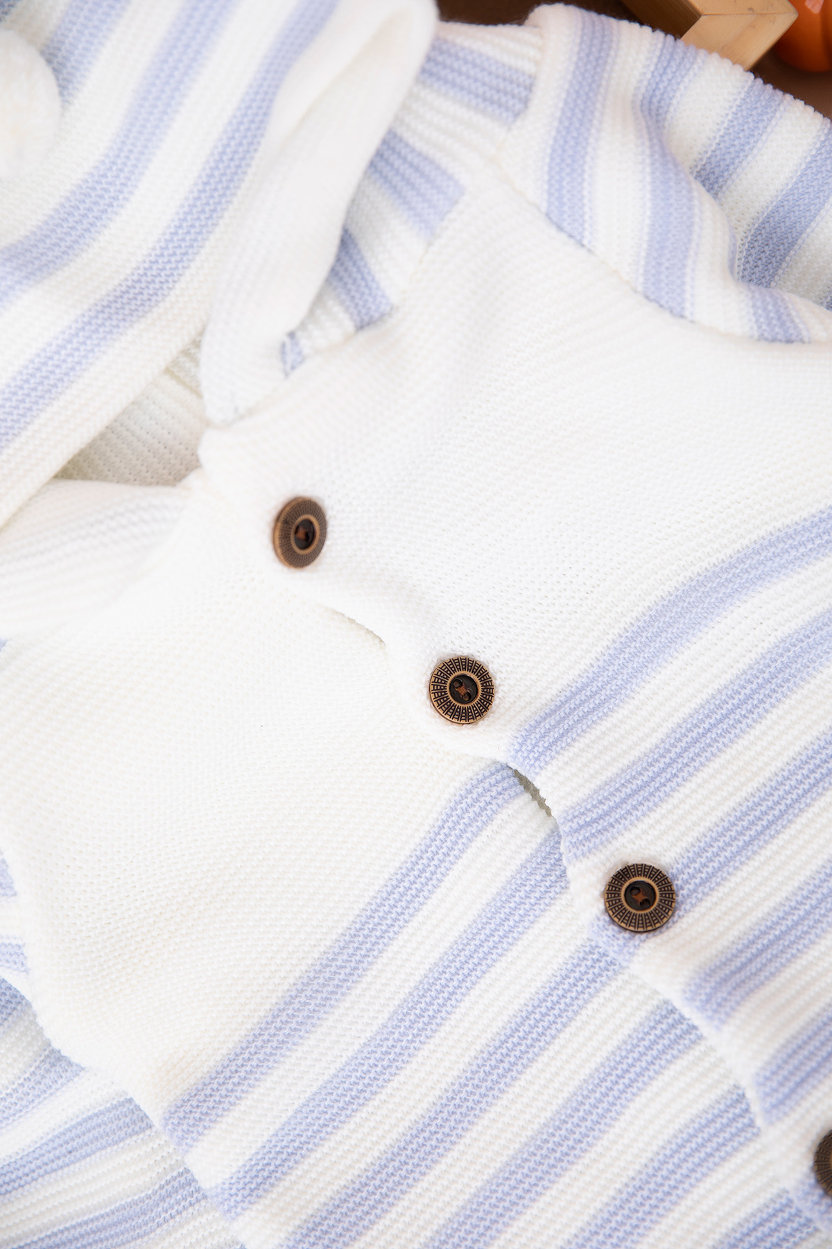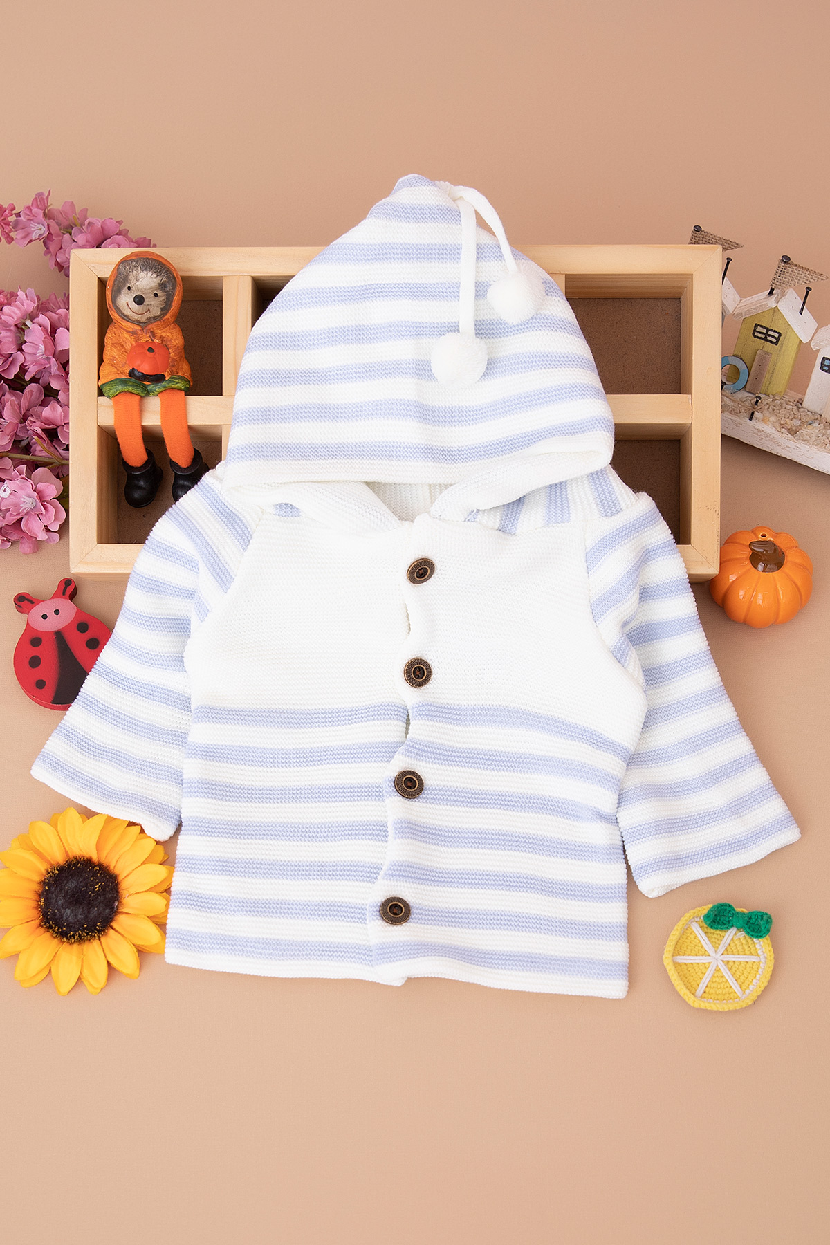 Bebek Çizgili Triko Kapşonlu Hırka - 0200