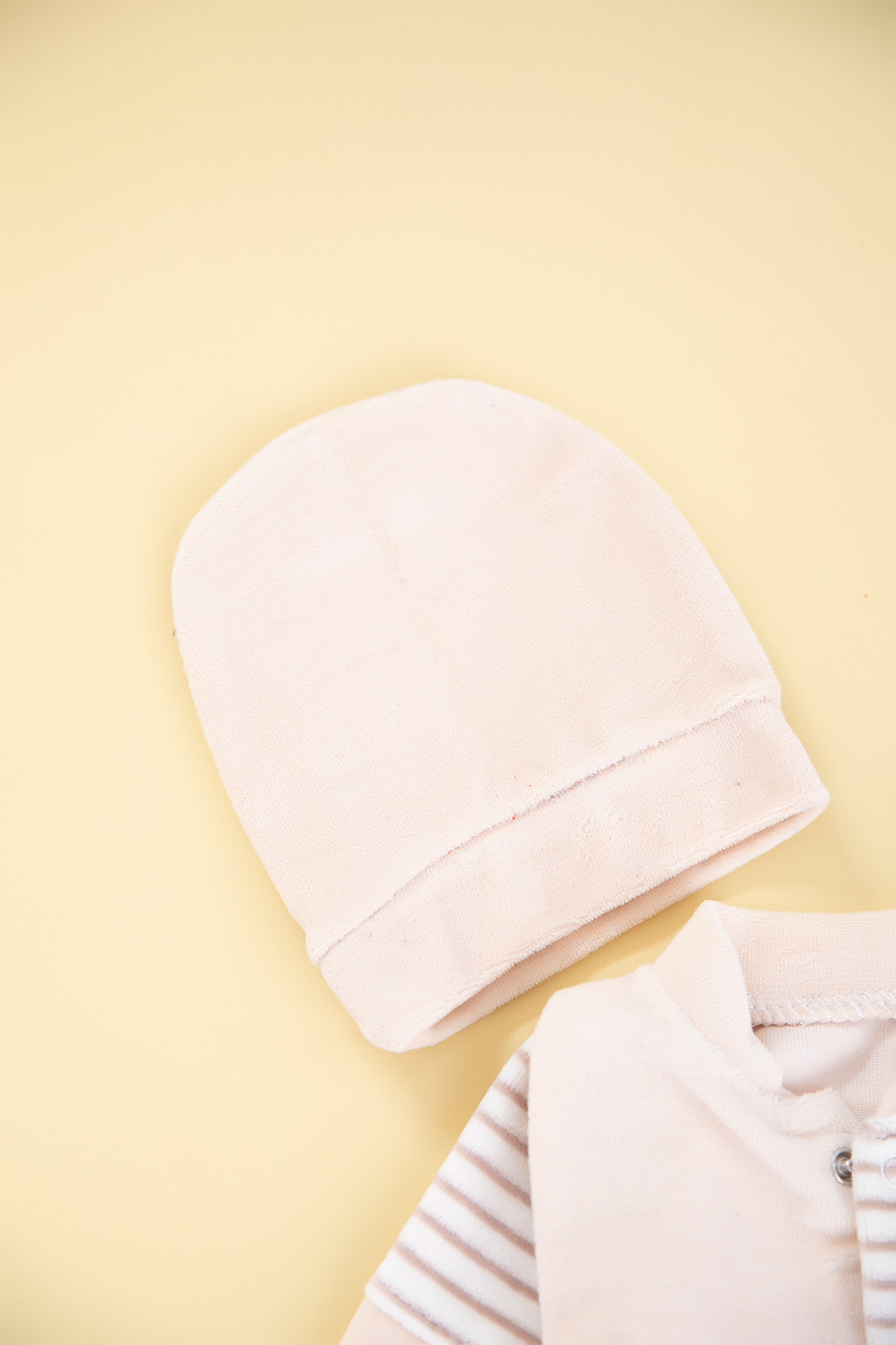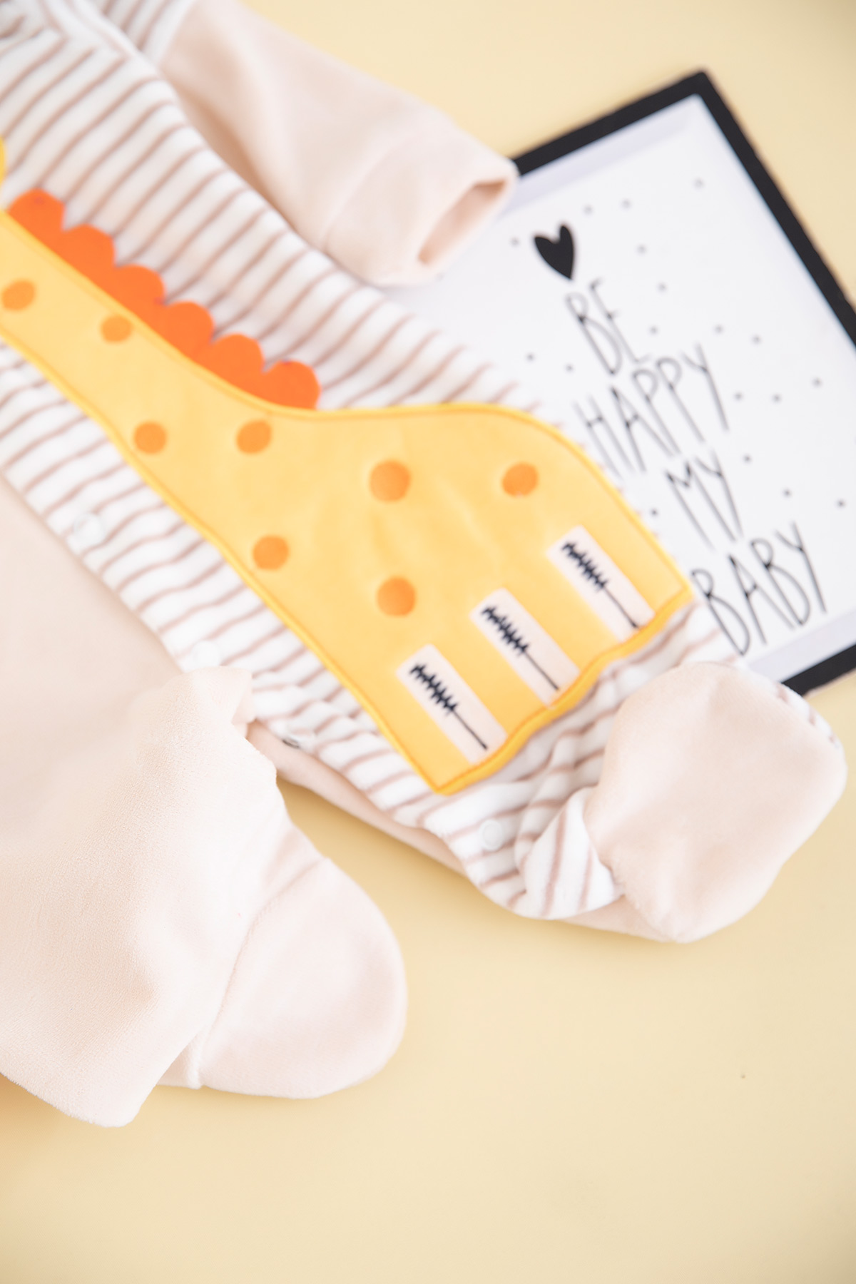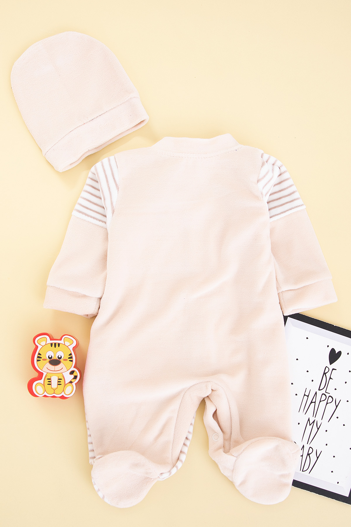 Bebek Çizgili Zürafa Nakışlı Kadife Tulum - 8275 (0-6 Ay)