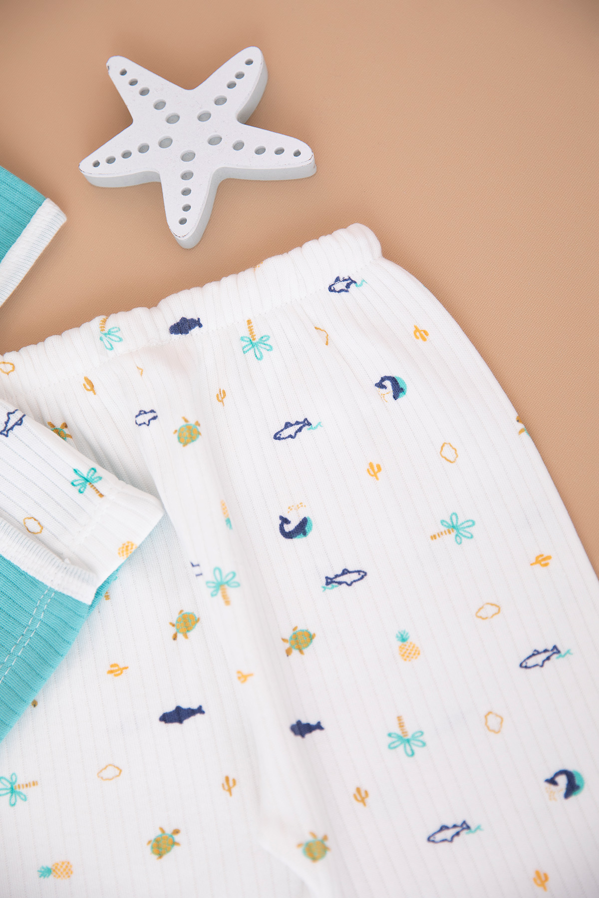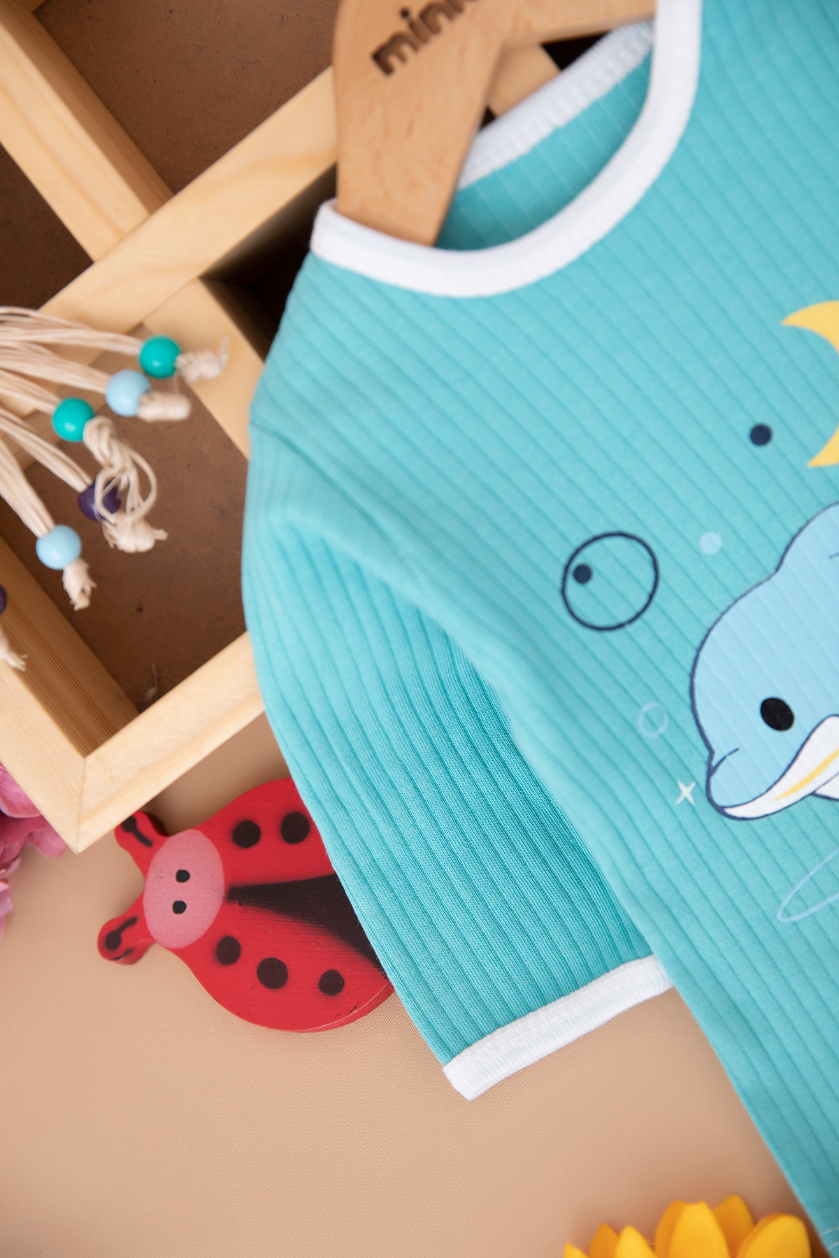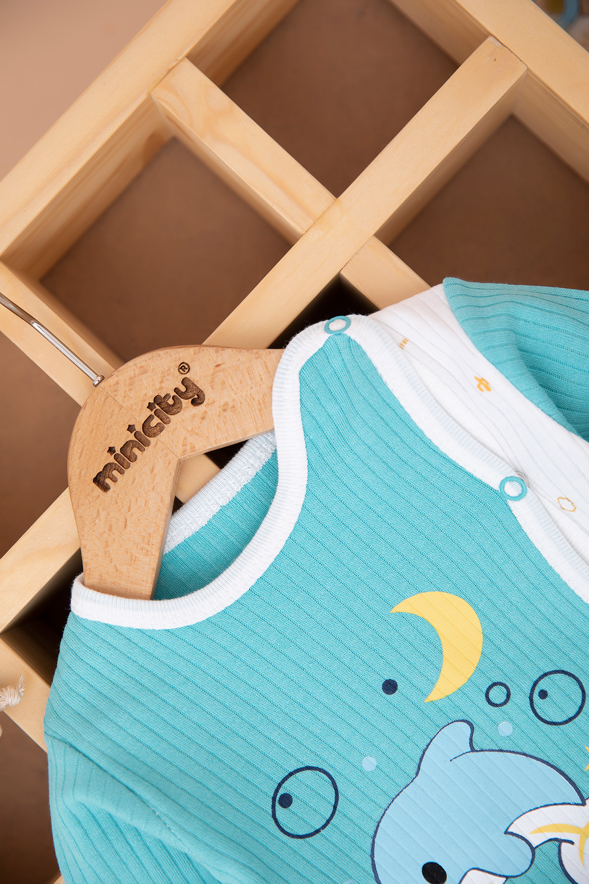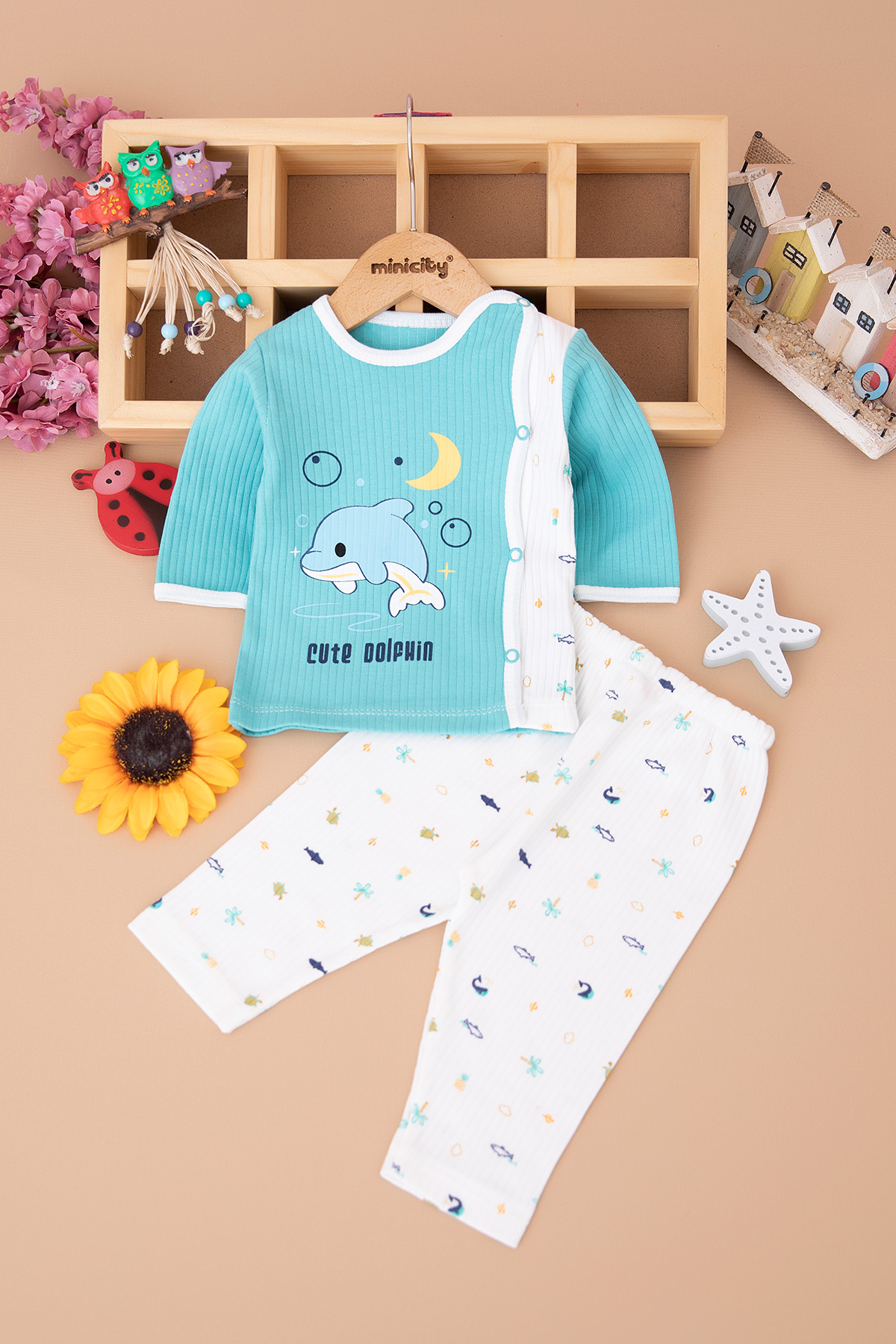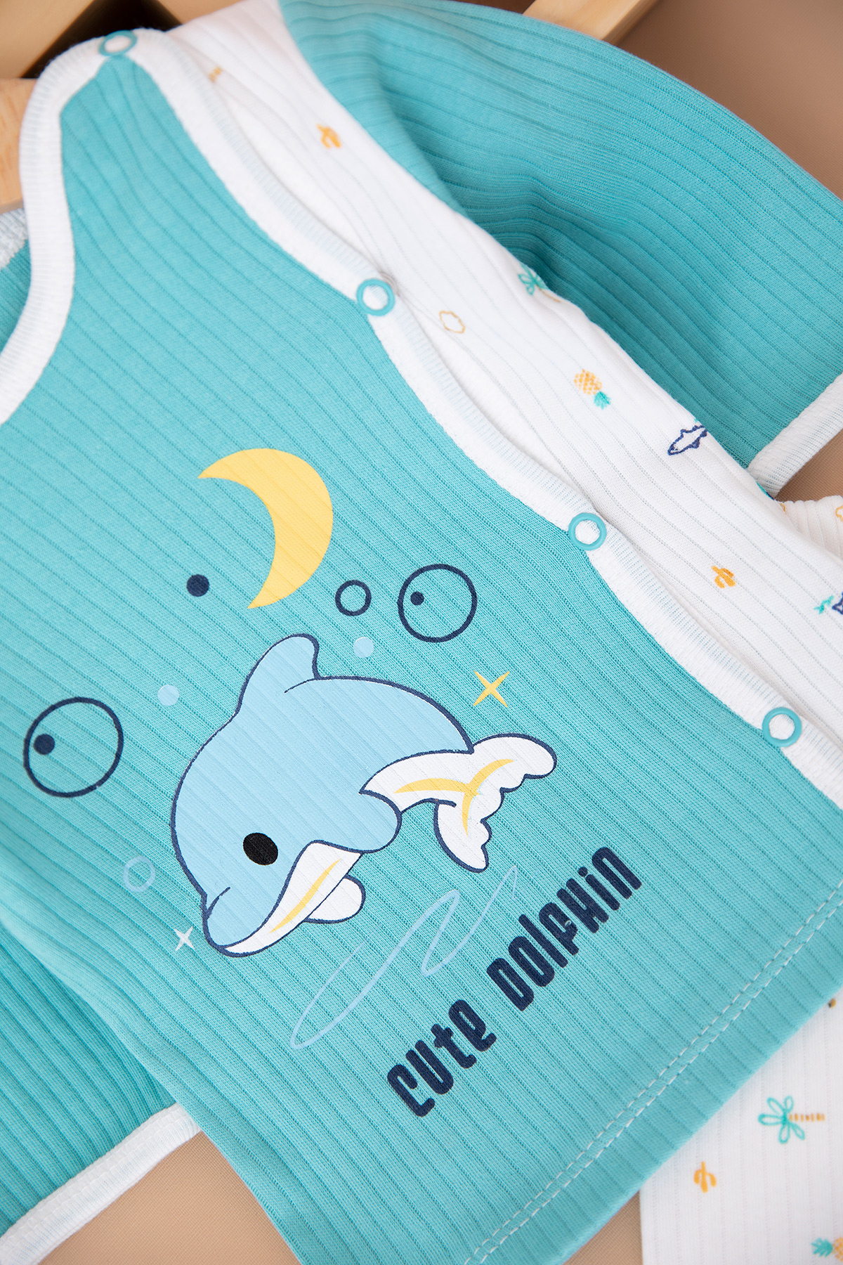 Bebek Cute Golphin Baskılı Zıbın Takımı - 612 (1-3 Ay)