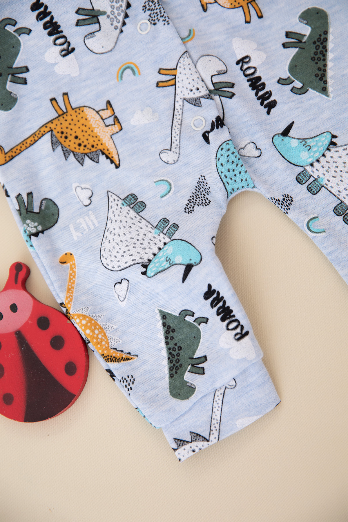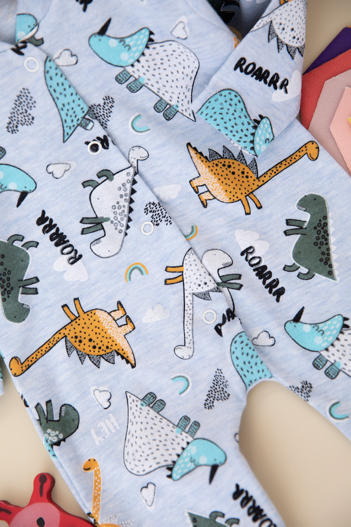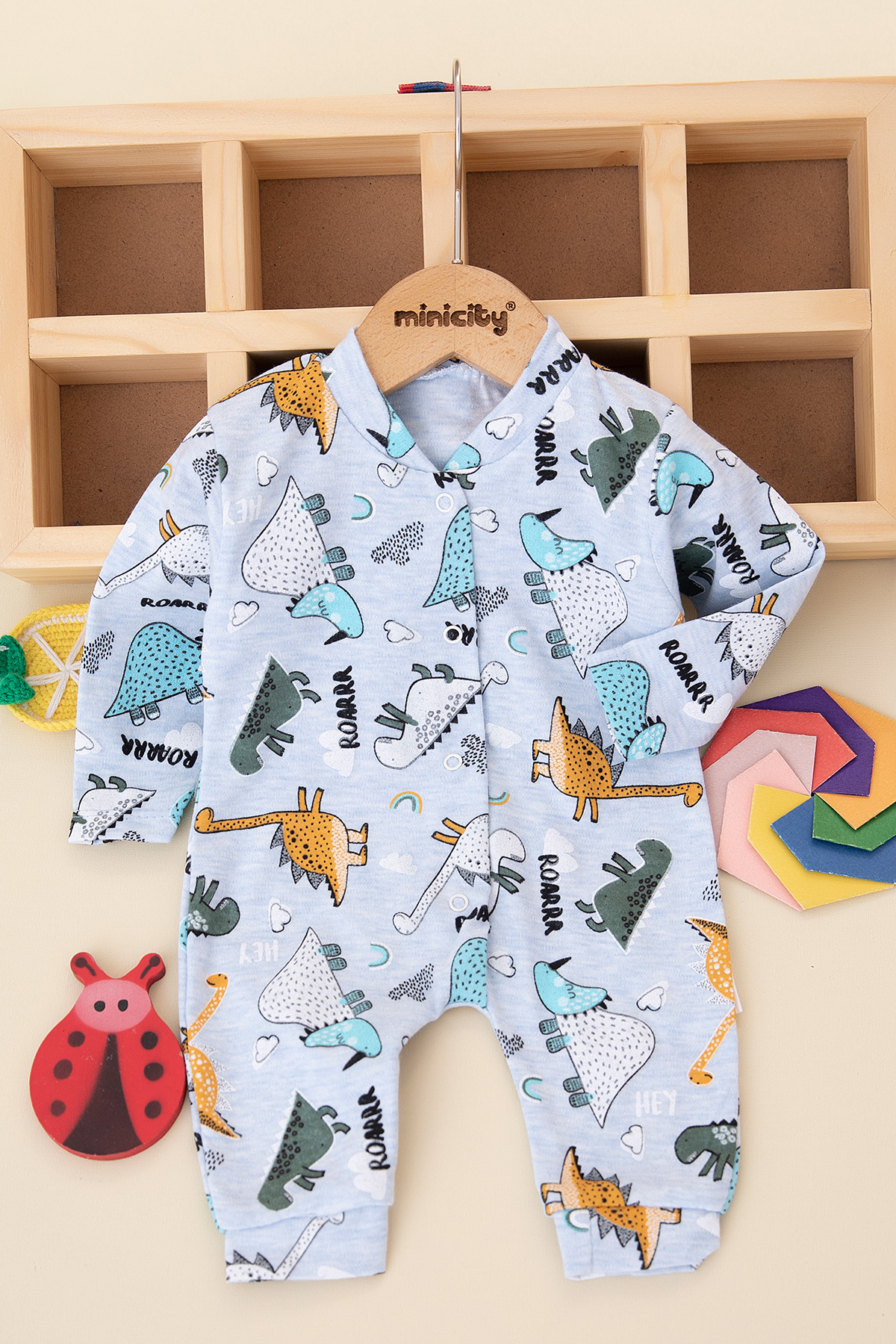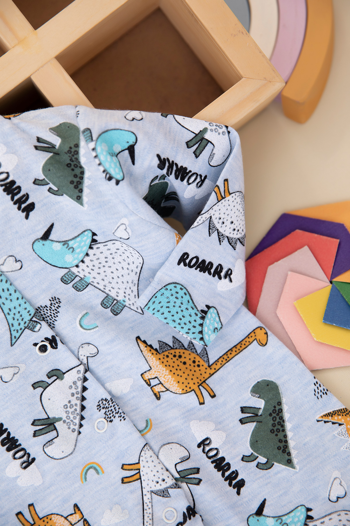 Bebek Dinazor Baskılı Manşetli Tulum - 1855 (3-9 Ay)