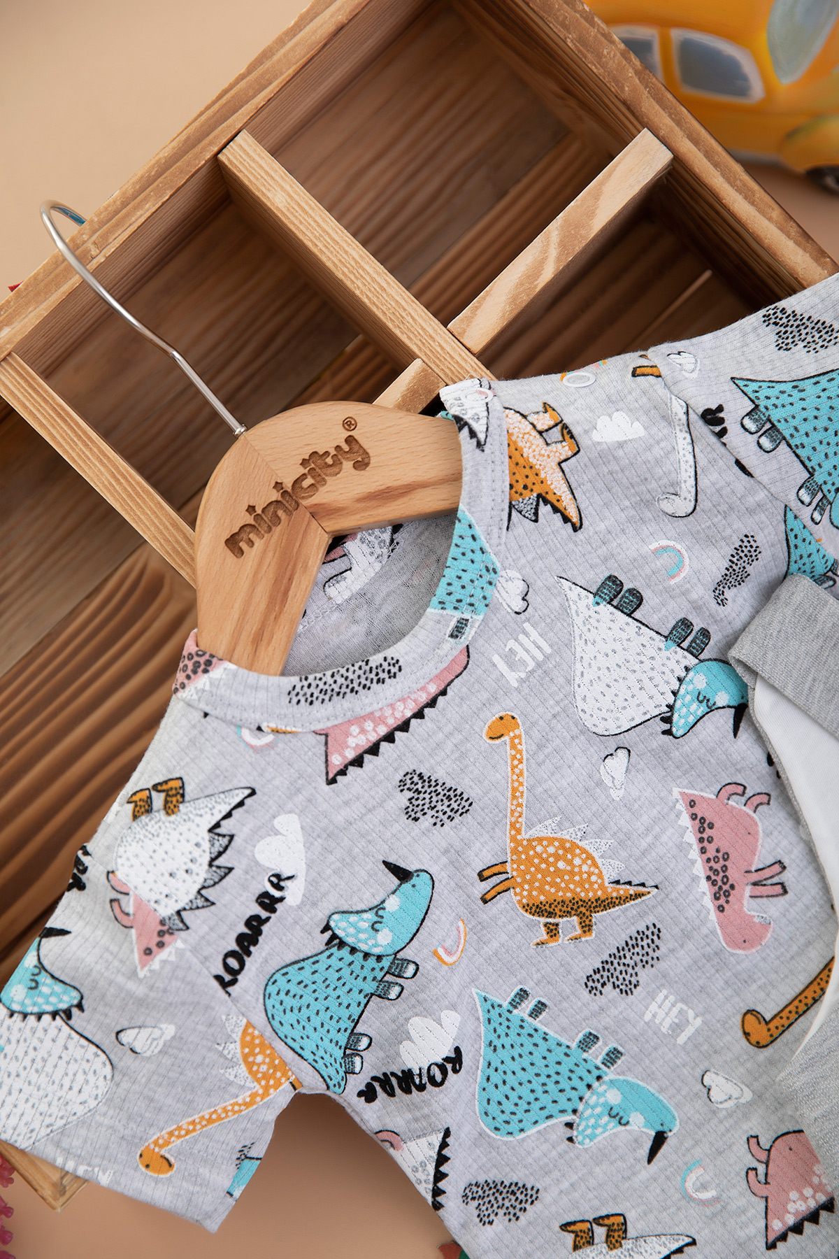 Bebek Dino T-Shırt Şort Tulum - 4204 (3-9 Ay)