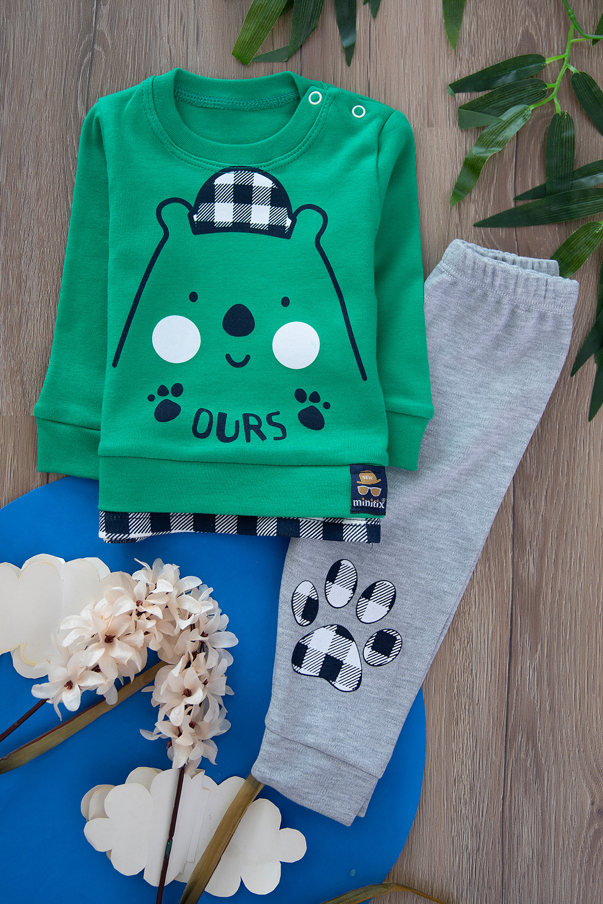 Bebek Ekoseli Ayılı Takım - 20223 (6-18 Ay)