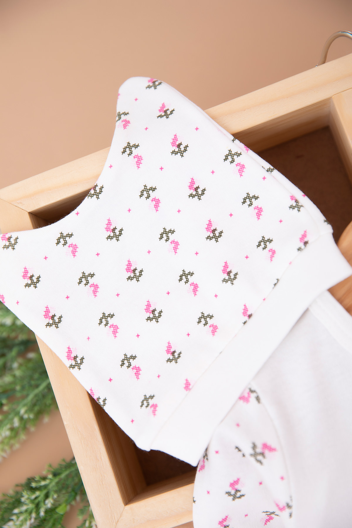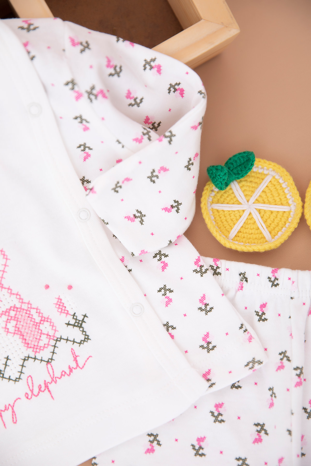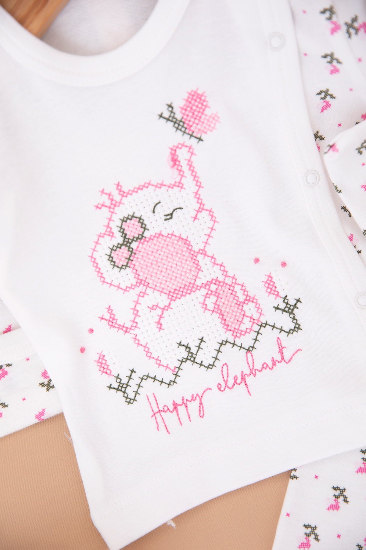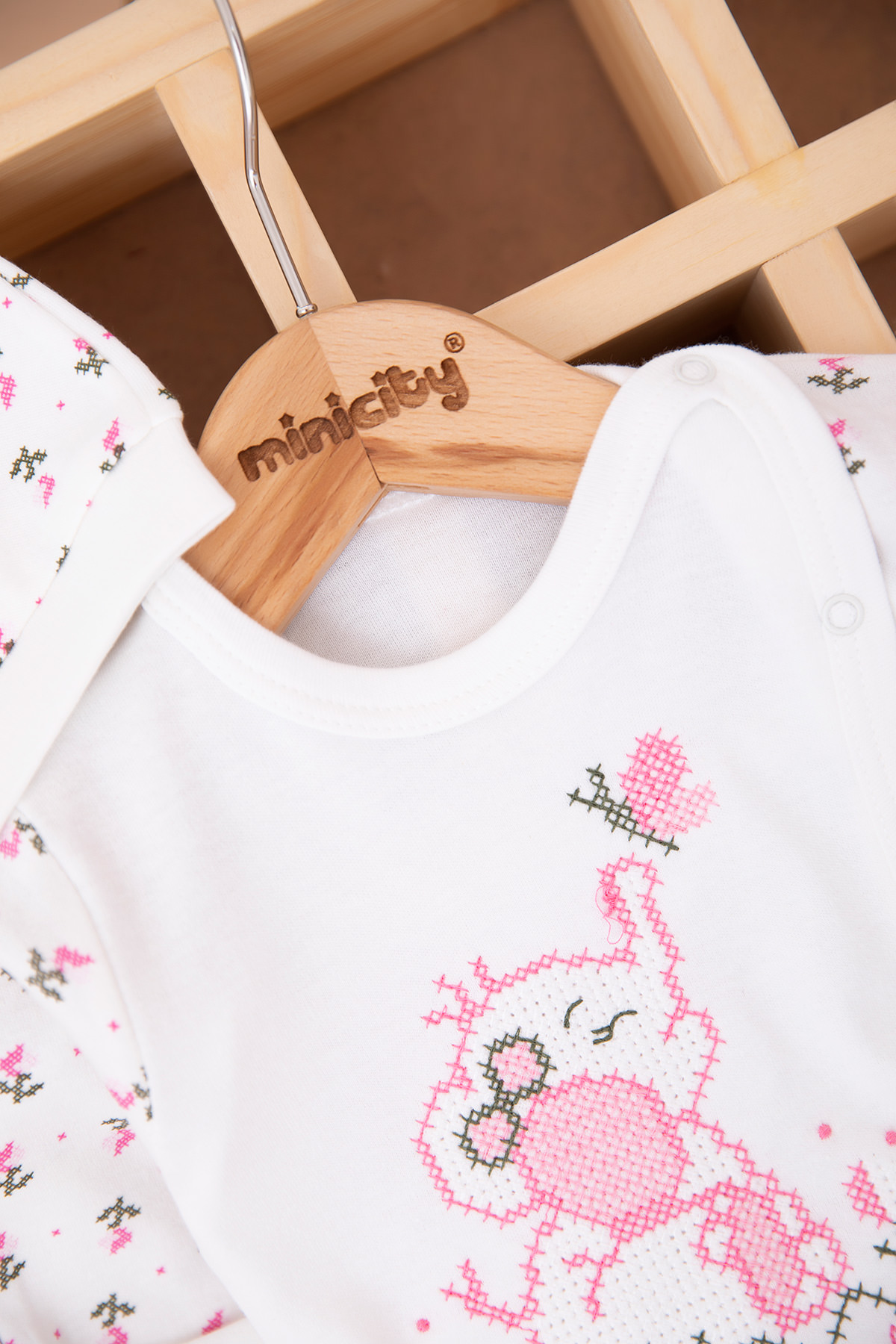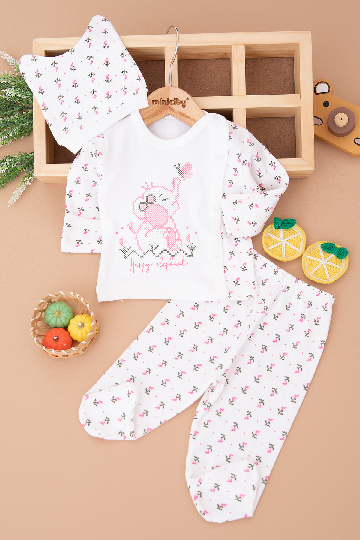 Bebek Fil Kanaviçe Üçlü Zıbın Takım - 9304 (0-3 Ay)