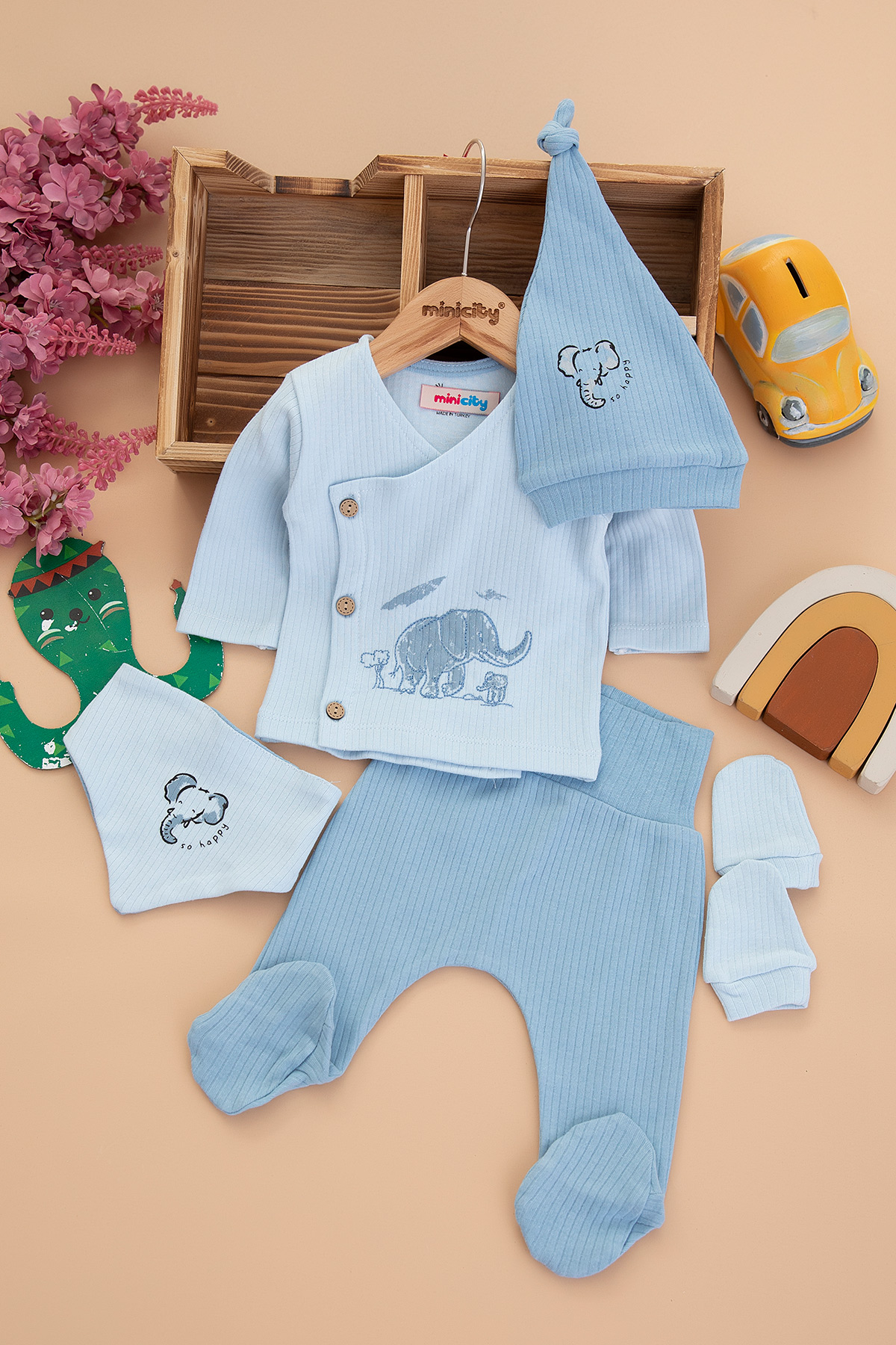 Bebek Fil Nakışlı 5`Li Zıbın Seti - 2562 (0-3 Ay)