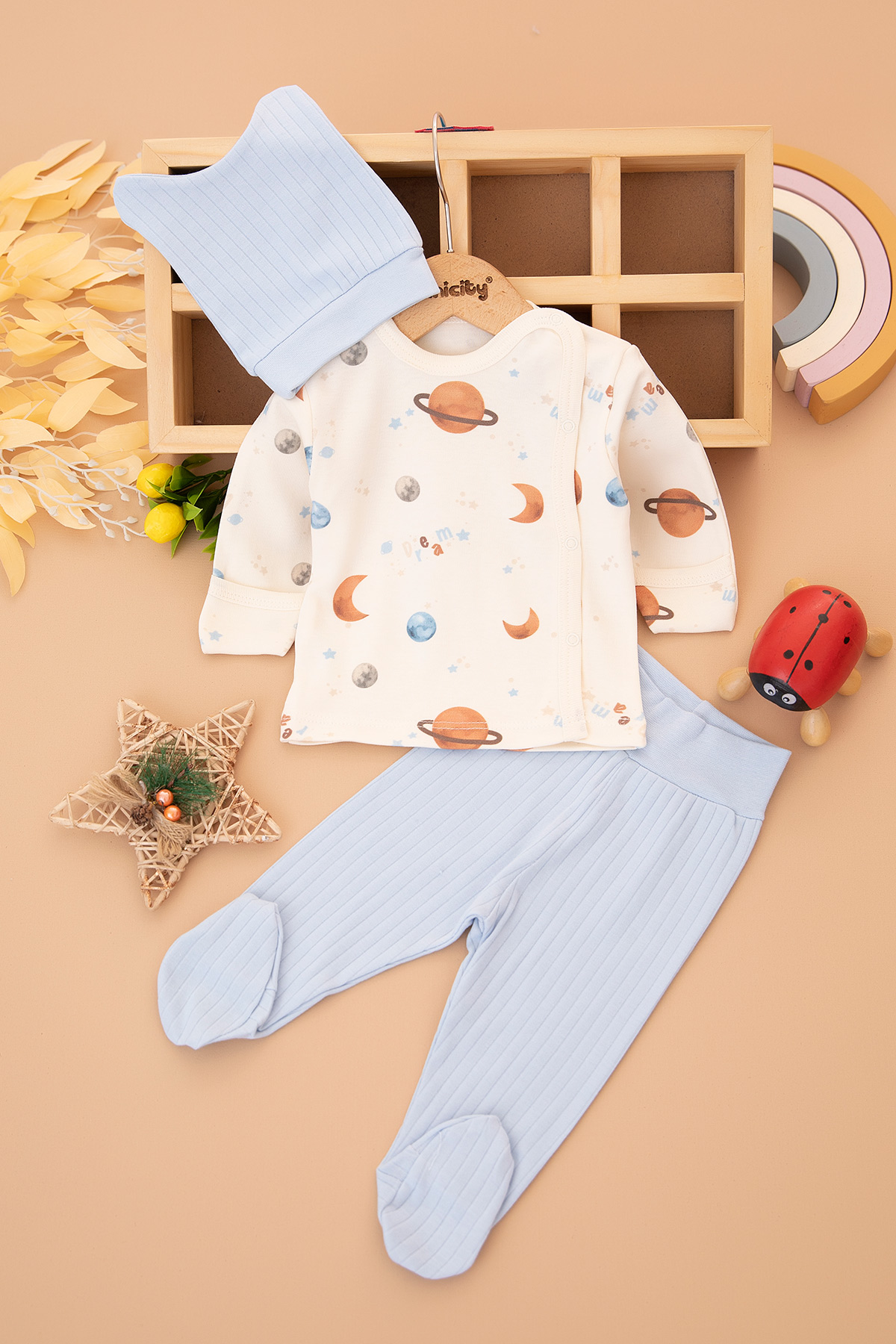 Bebek Gezegenler Baskılı Zıbın Takımı - 9417 (0-3 Ay)