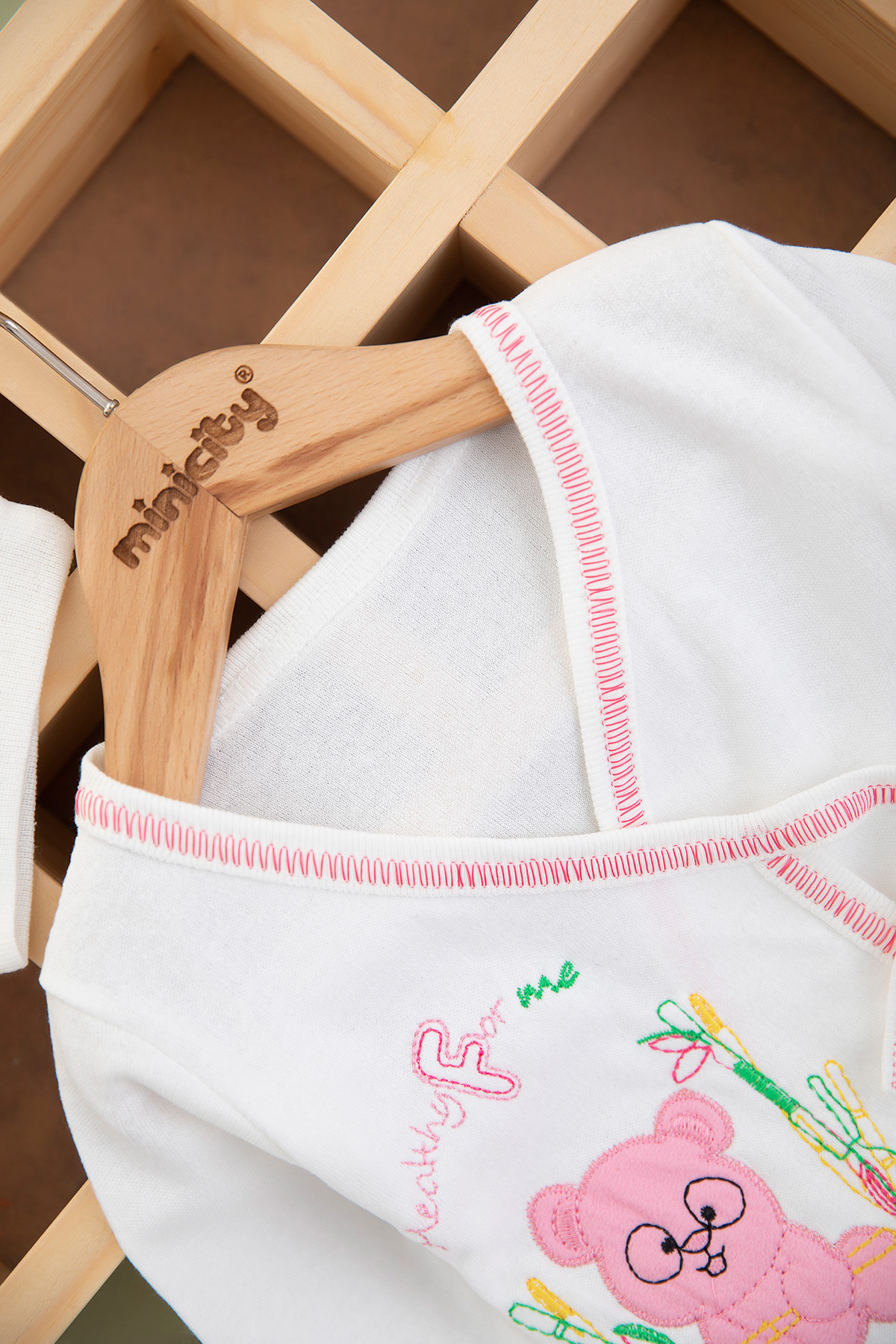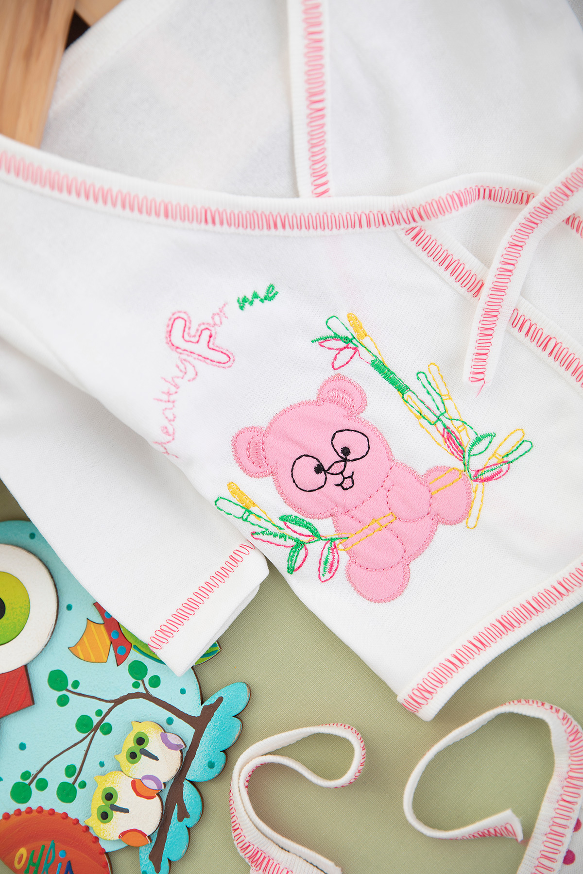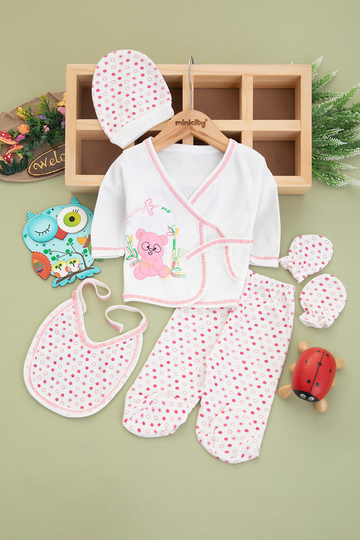 Bebek Gözlüklü Ayıcık Nakışlı 5`Li Zıbın Seti