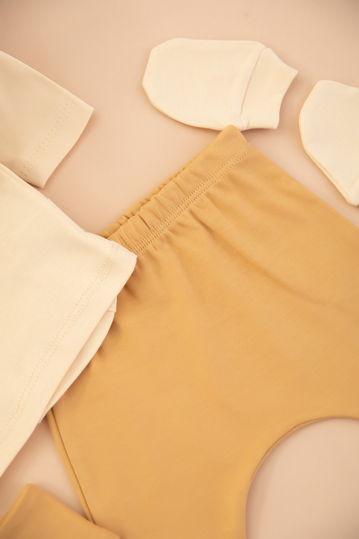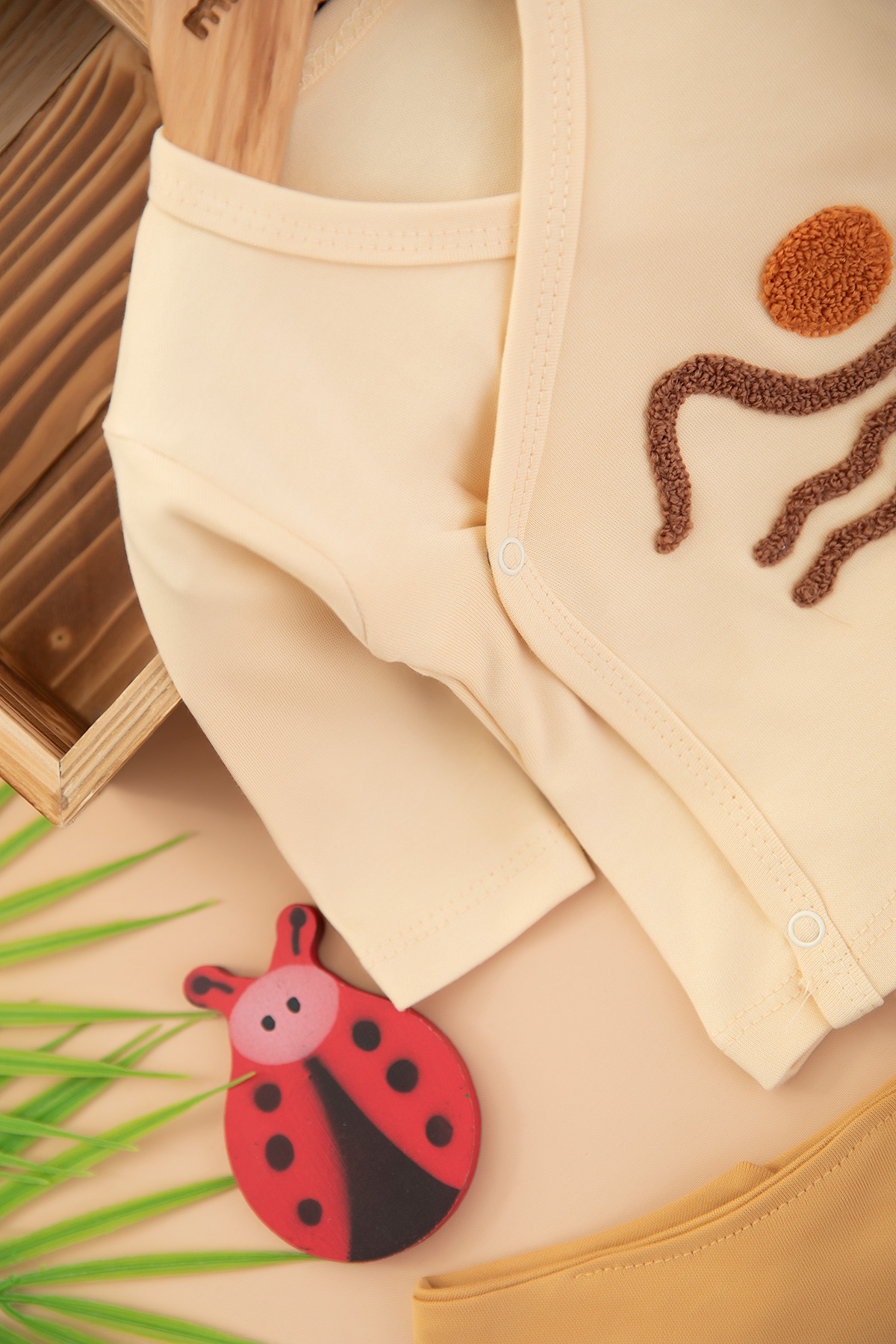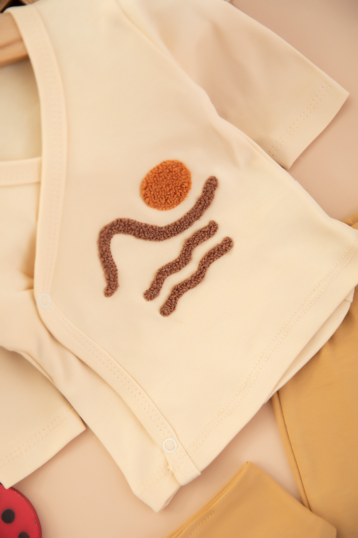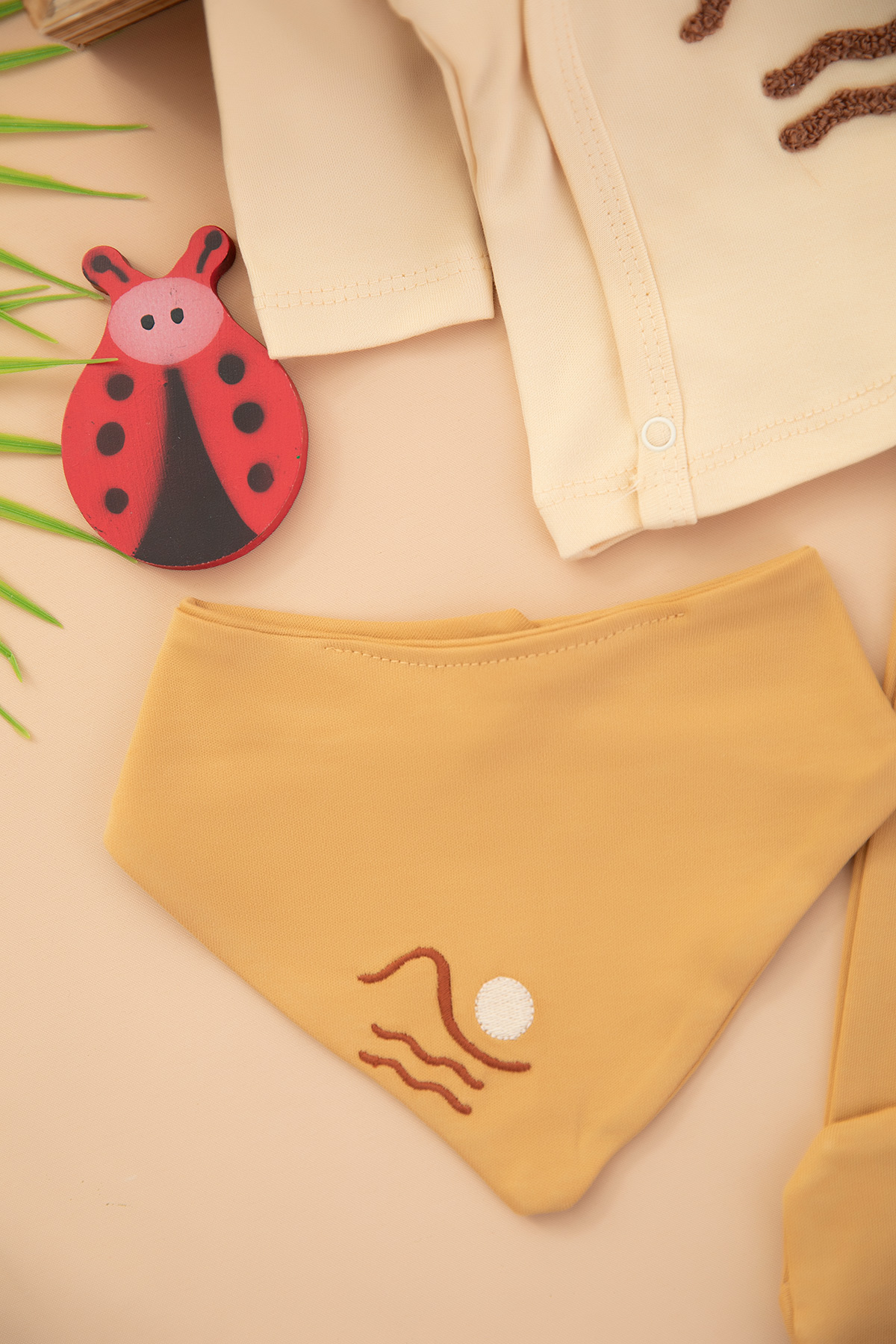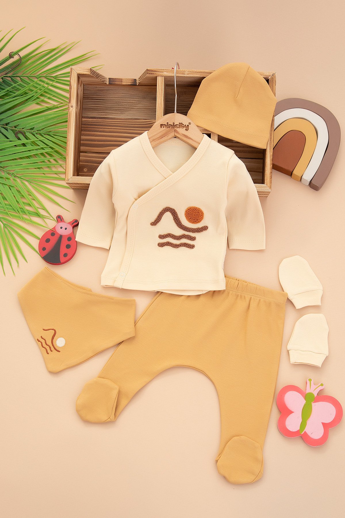 Bebek Güneş Dalga Nakışlı 5`Li Zıbın Seti - 52724 (0-3 Ay)