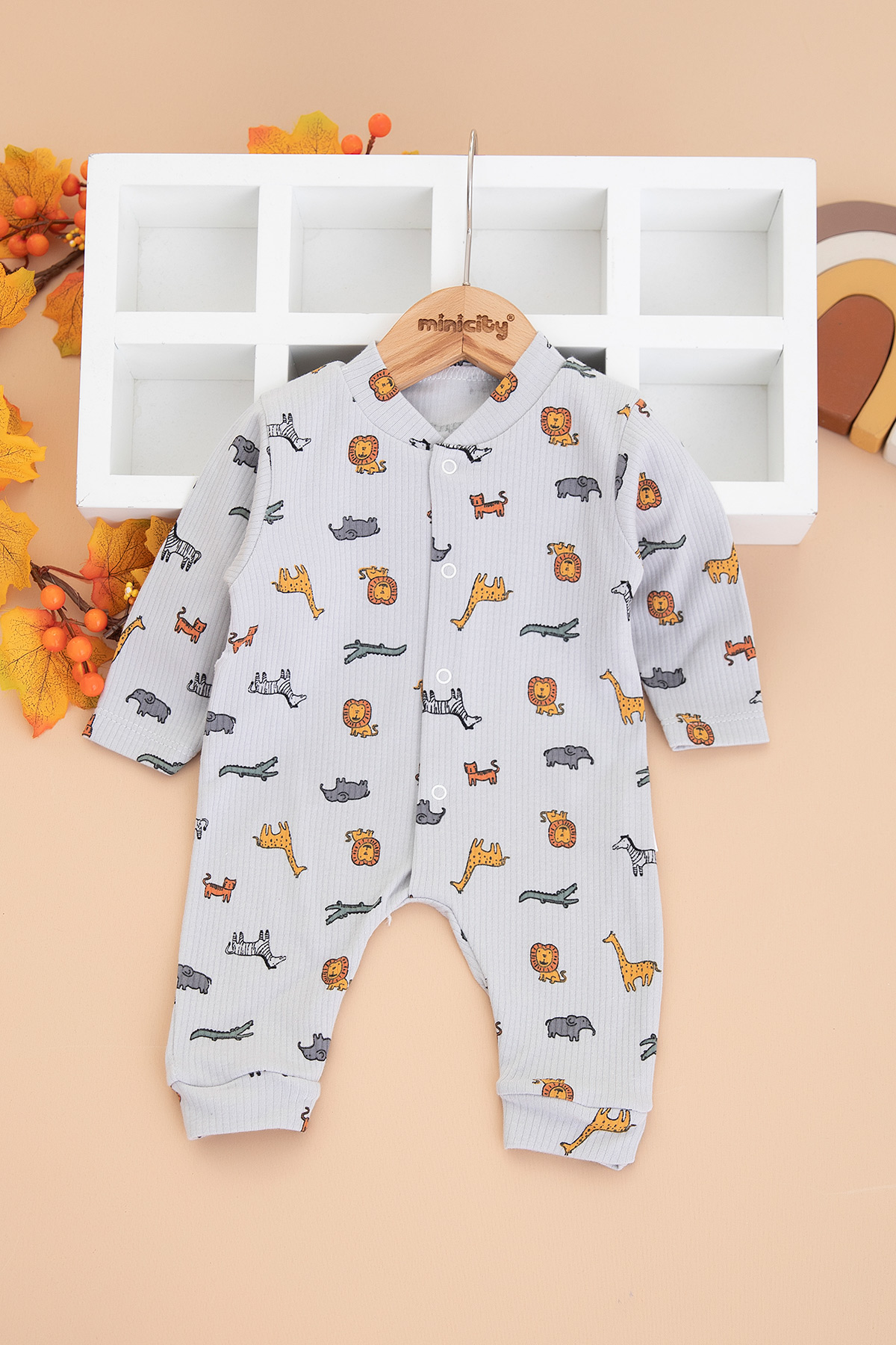 Bebek Hayvanlar Alemi Manşetli Tulum - 1968 (0-6 Ay)