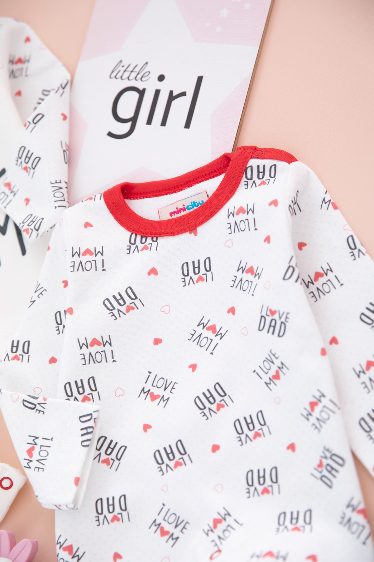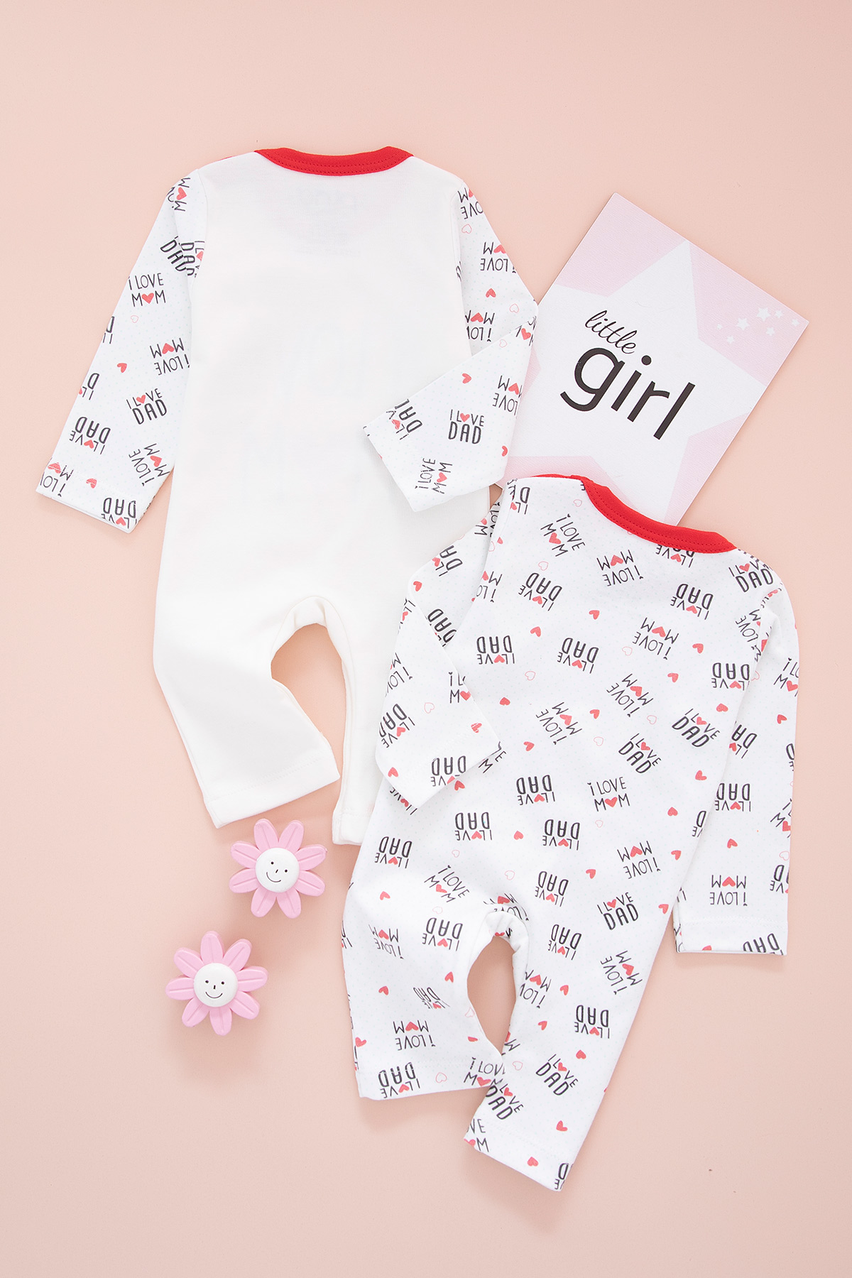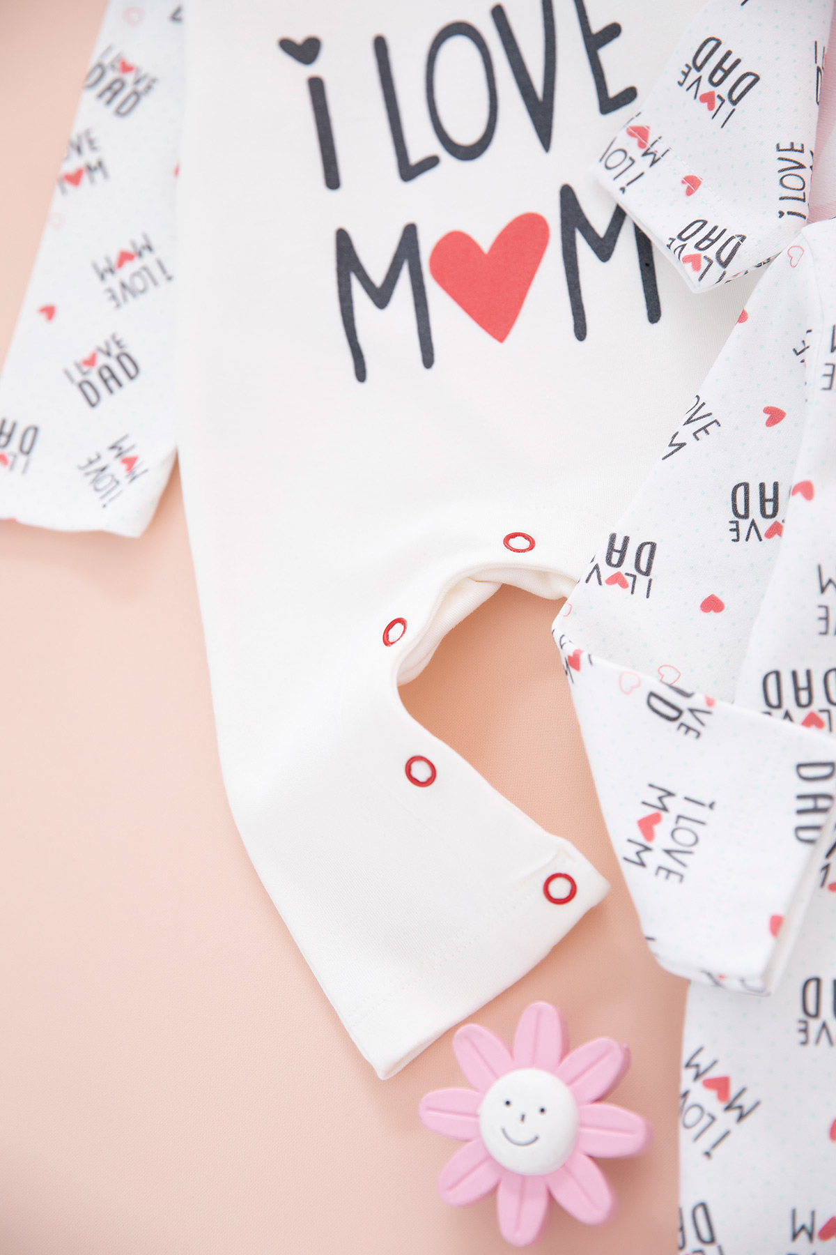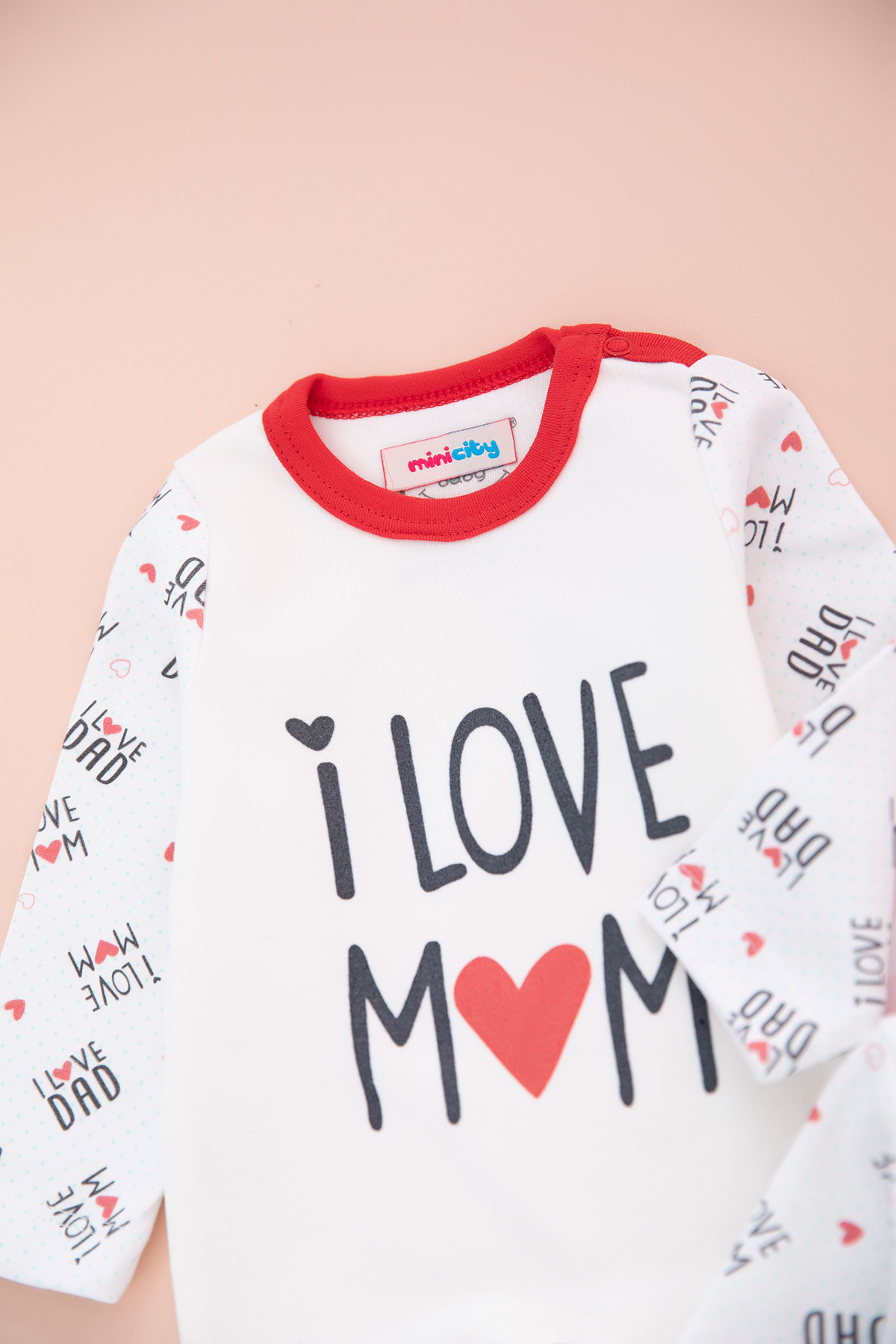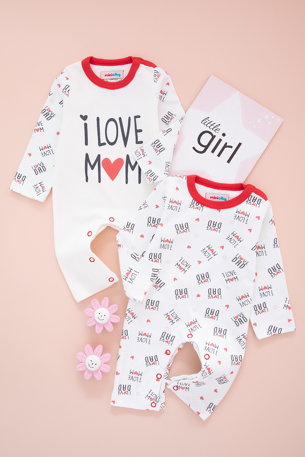 Bebek I Mom I Dad Baskılı İkili Tulum - 3056
