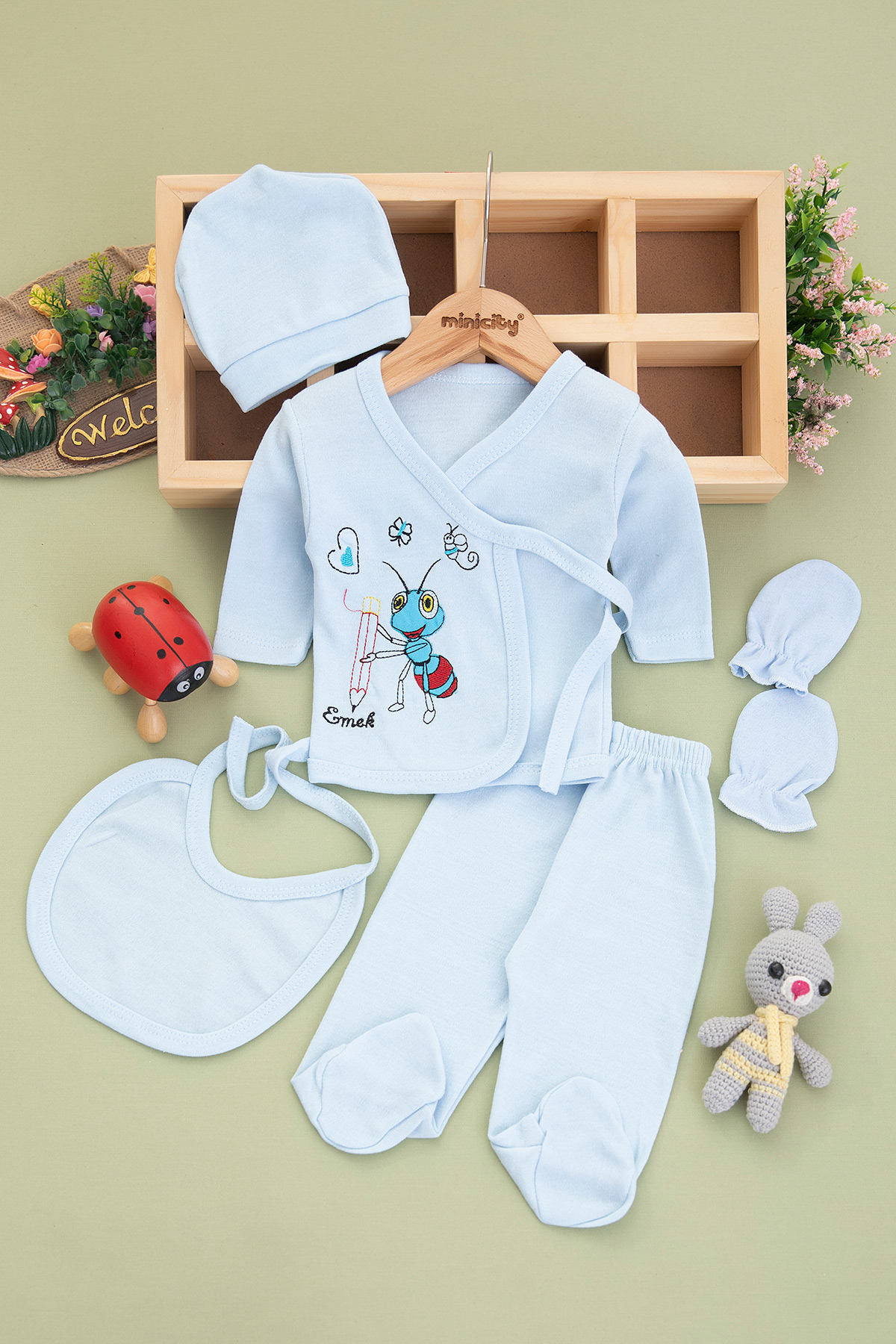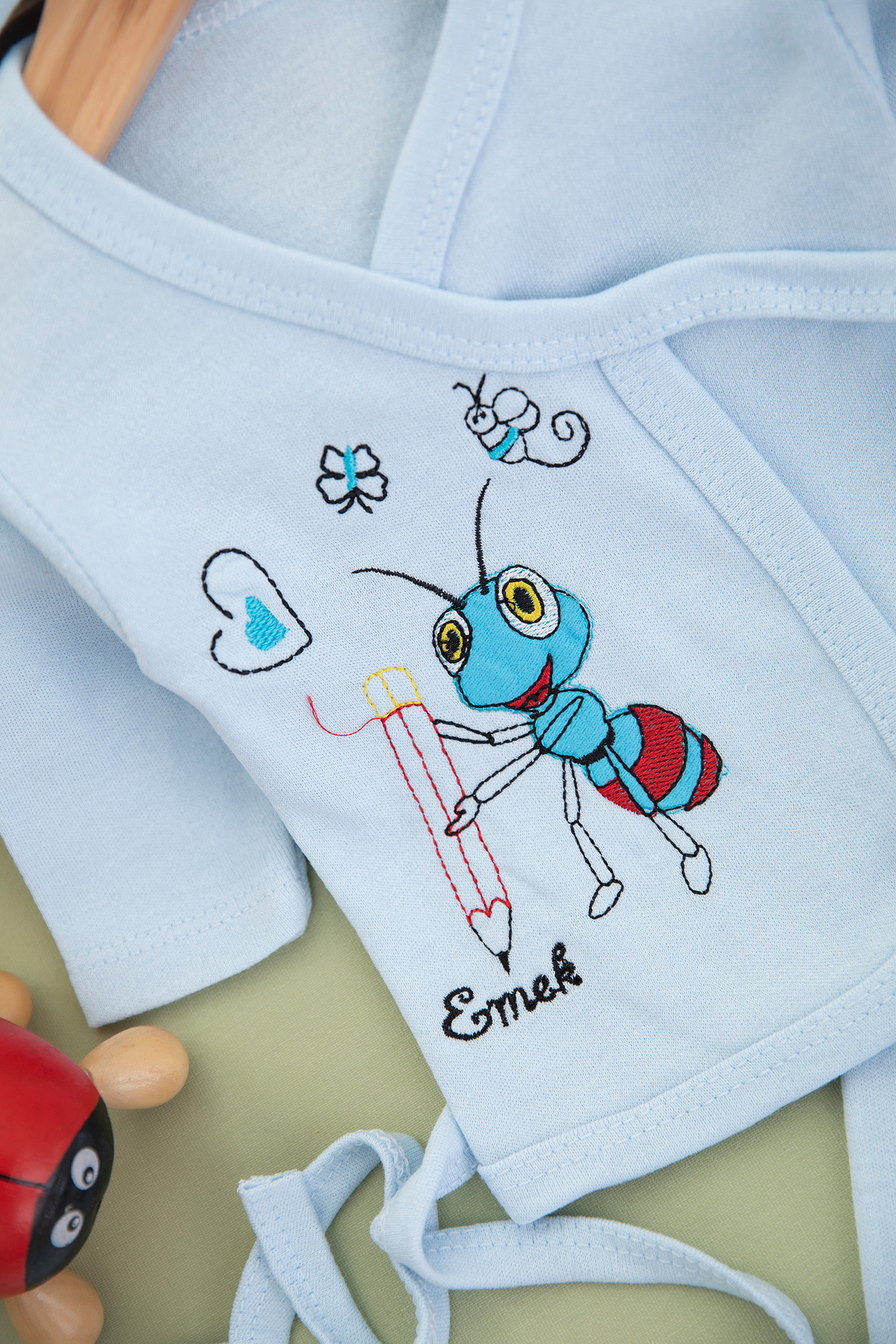 Bebek Kalemli Karınca Nakışlı 5`Li Zıbın Seti