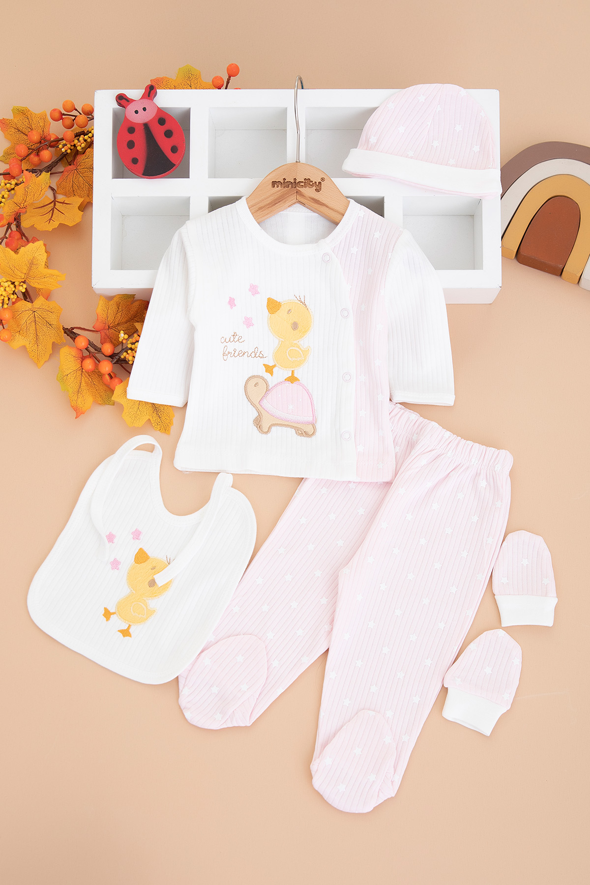 Bebek Kaplumbağa Kuş 5`Li Zıbın Seti - 1016 (0-3 Ay)