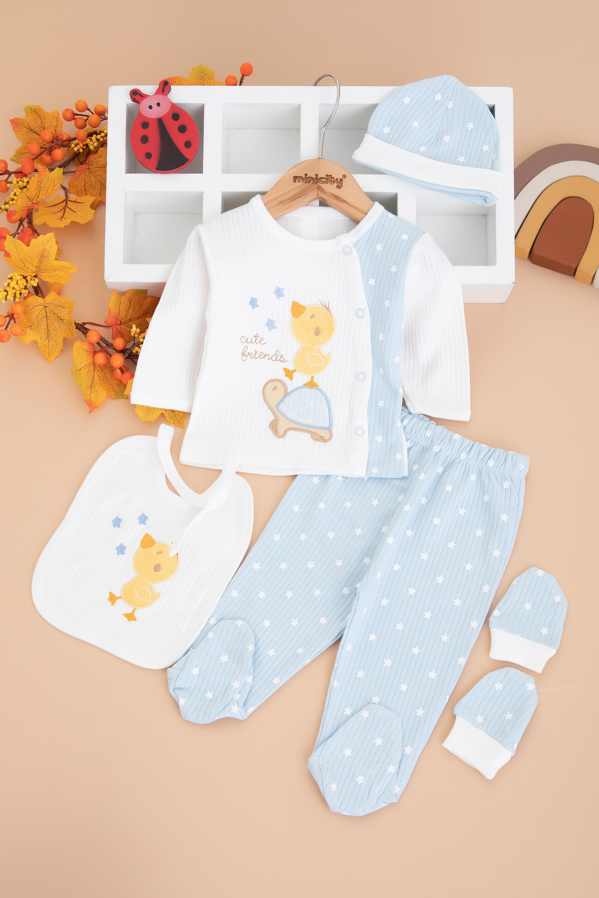 Bebek Kaplumbağa Kuş 5`Li Zıbın Seti - 1016 (0-3 Ay)