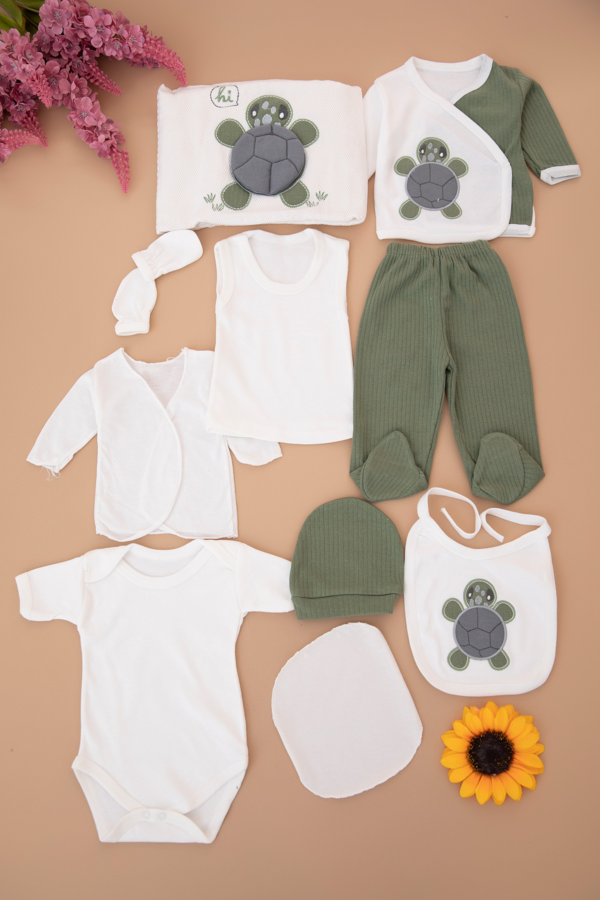 Bebek Kaplumbağa Nakışlı 10`Lu Zıbın Seti - 20298