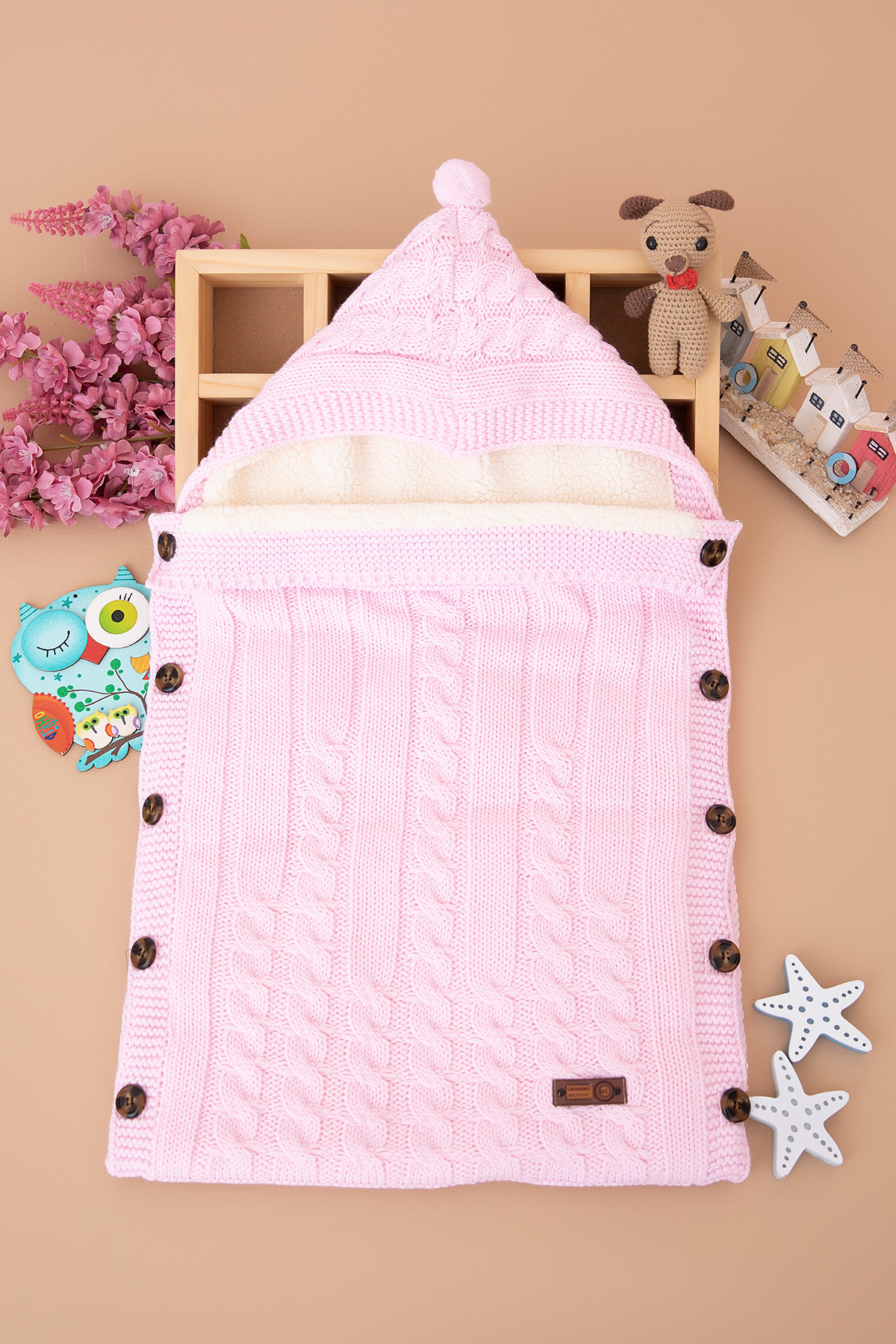 Bebek Kapşonlu Triko Kundak - 5011