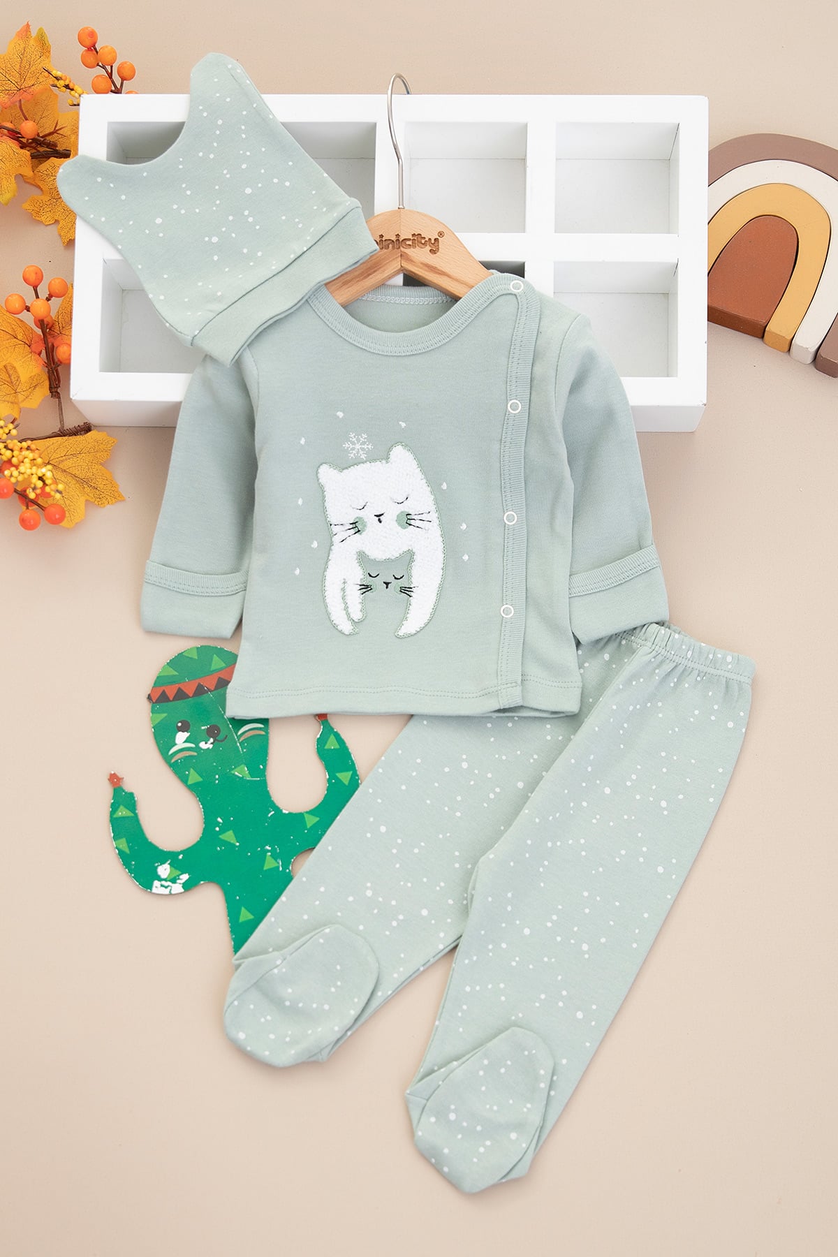 Bebek Karlı Kedi Zıbın Takımı - 9399 (0-3 Ay)