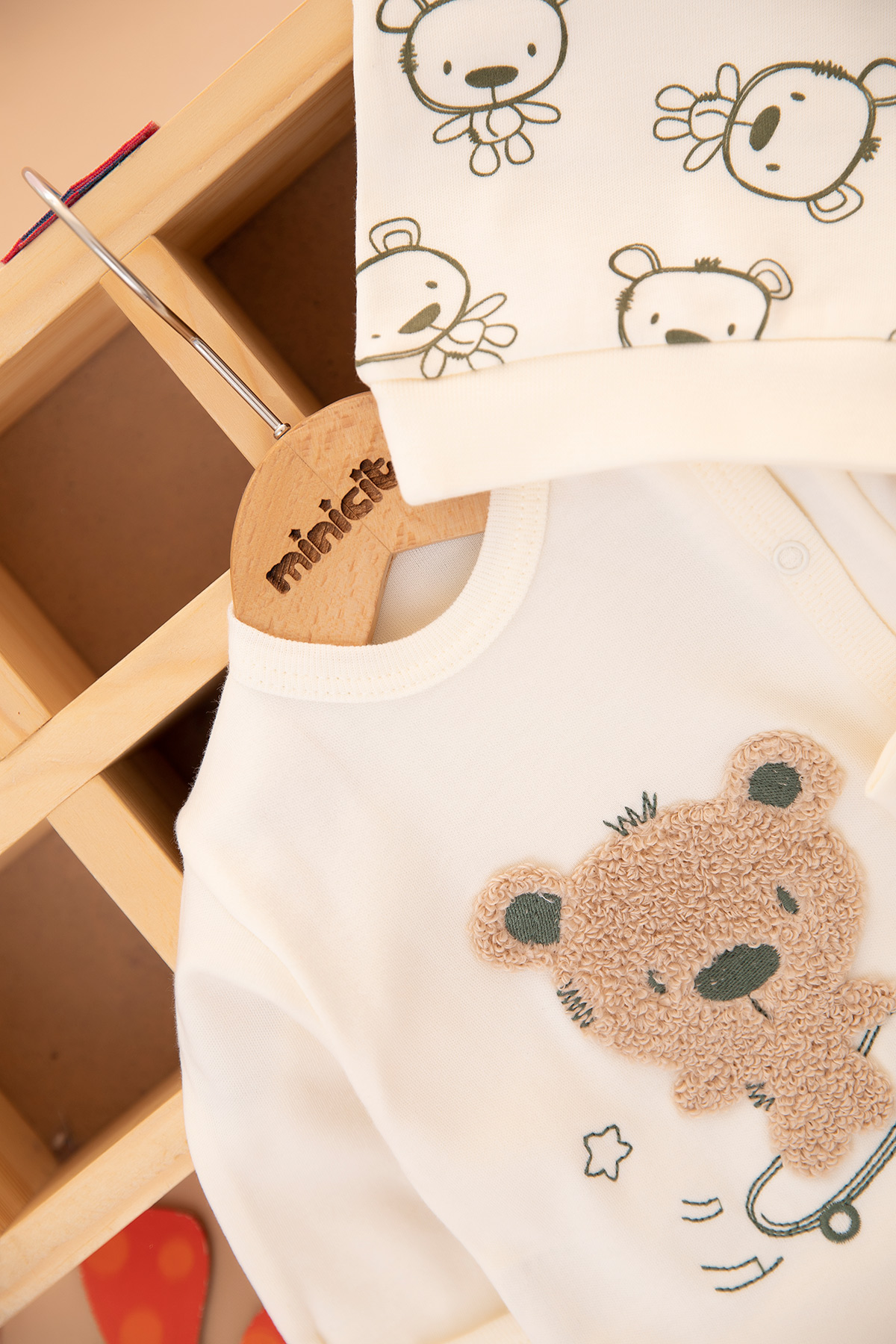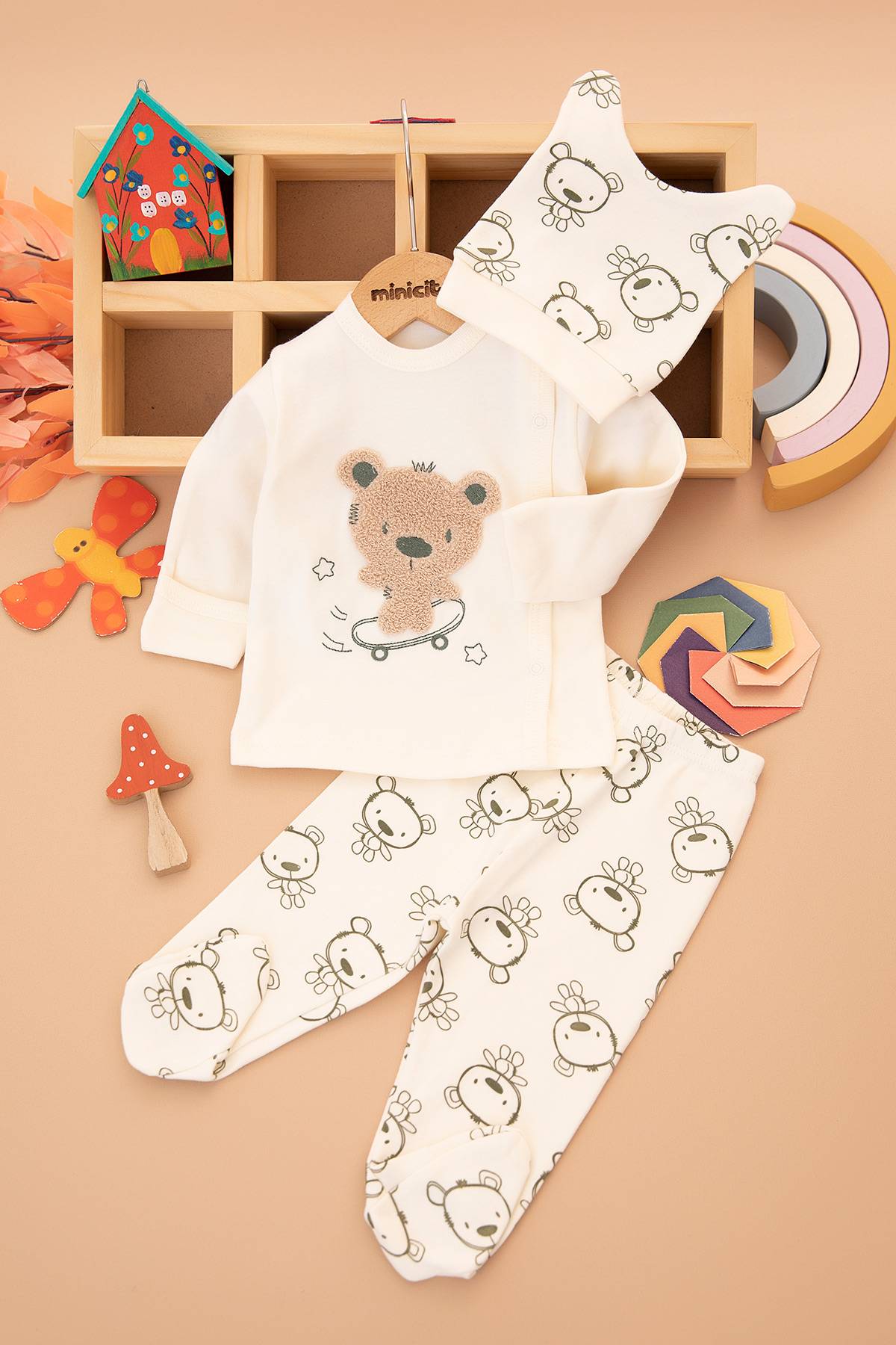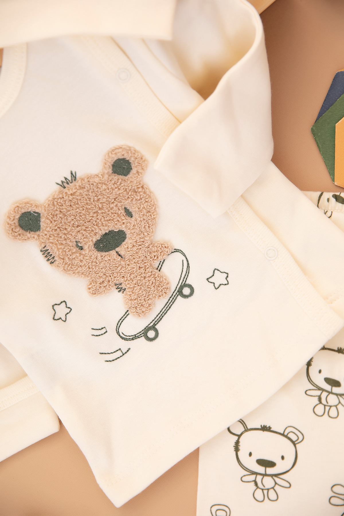 Bebek Kaykaycı Ayı Nakışlı Zıbın Takımı - 9424 (0-3 Ay)