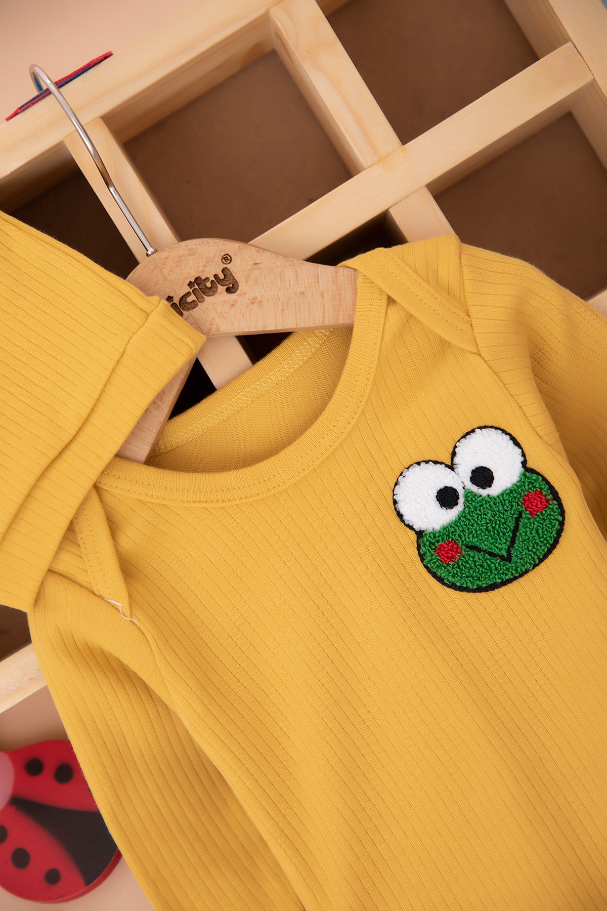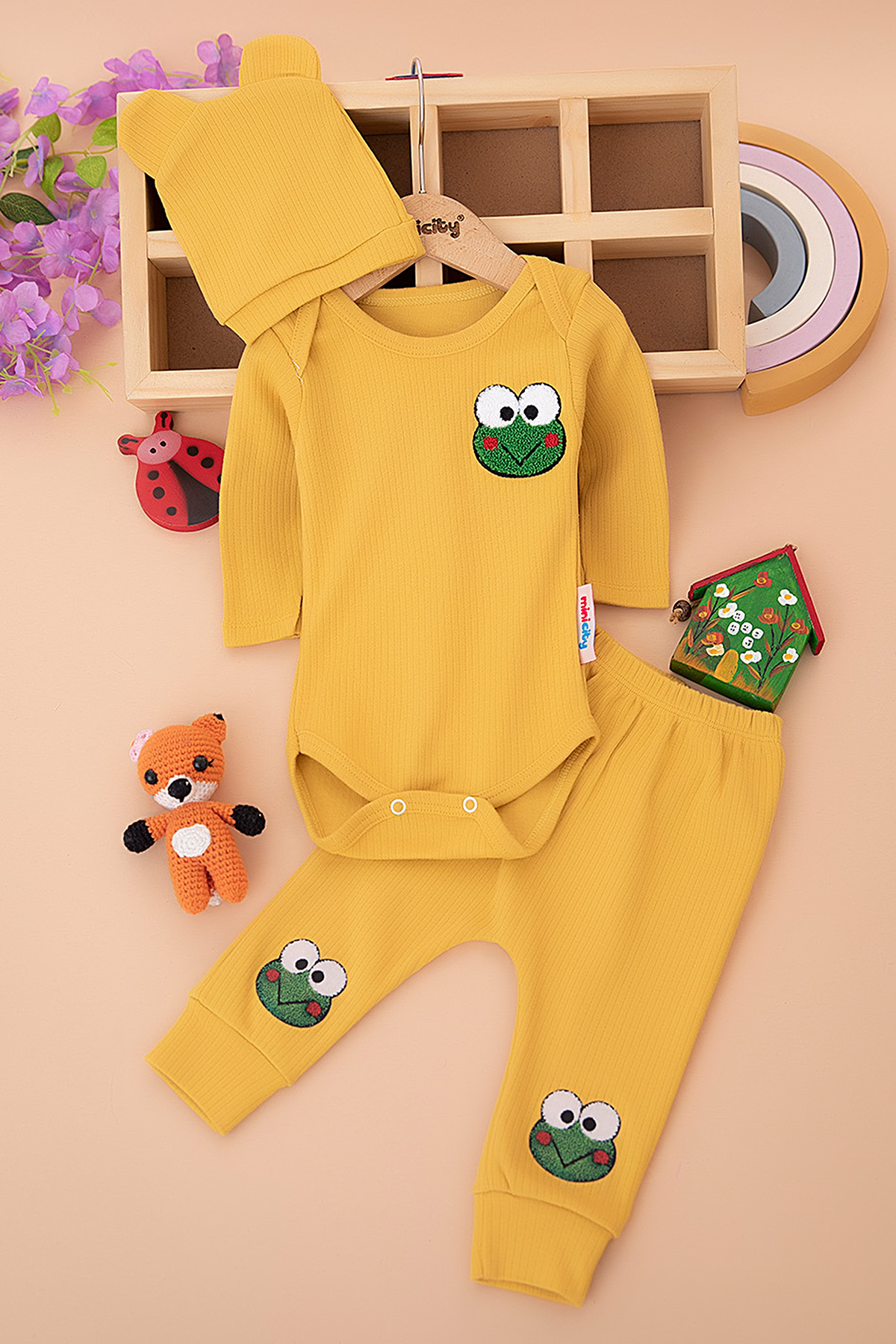 Bebek Kurbağa Nakışlı Üçlü Takım - 2022 (3-9 Ay)