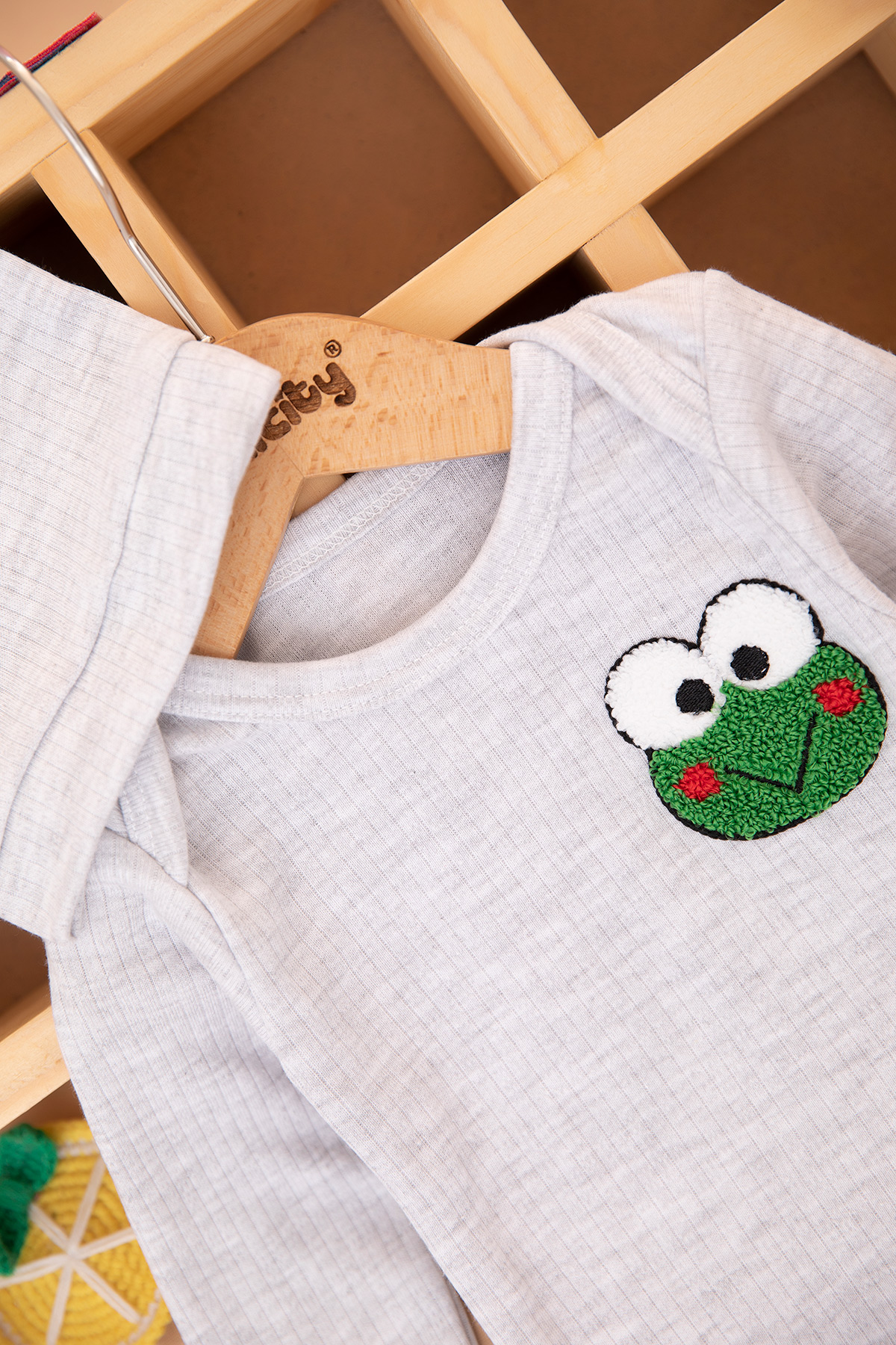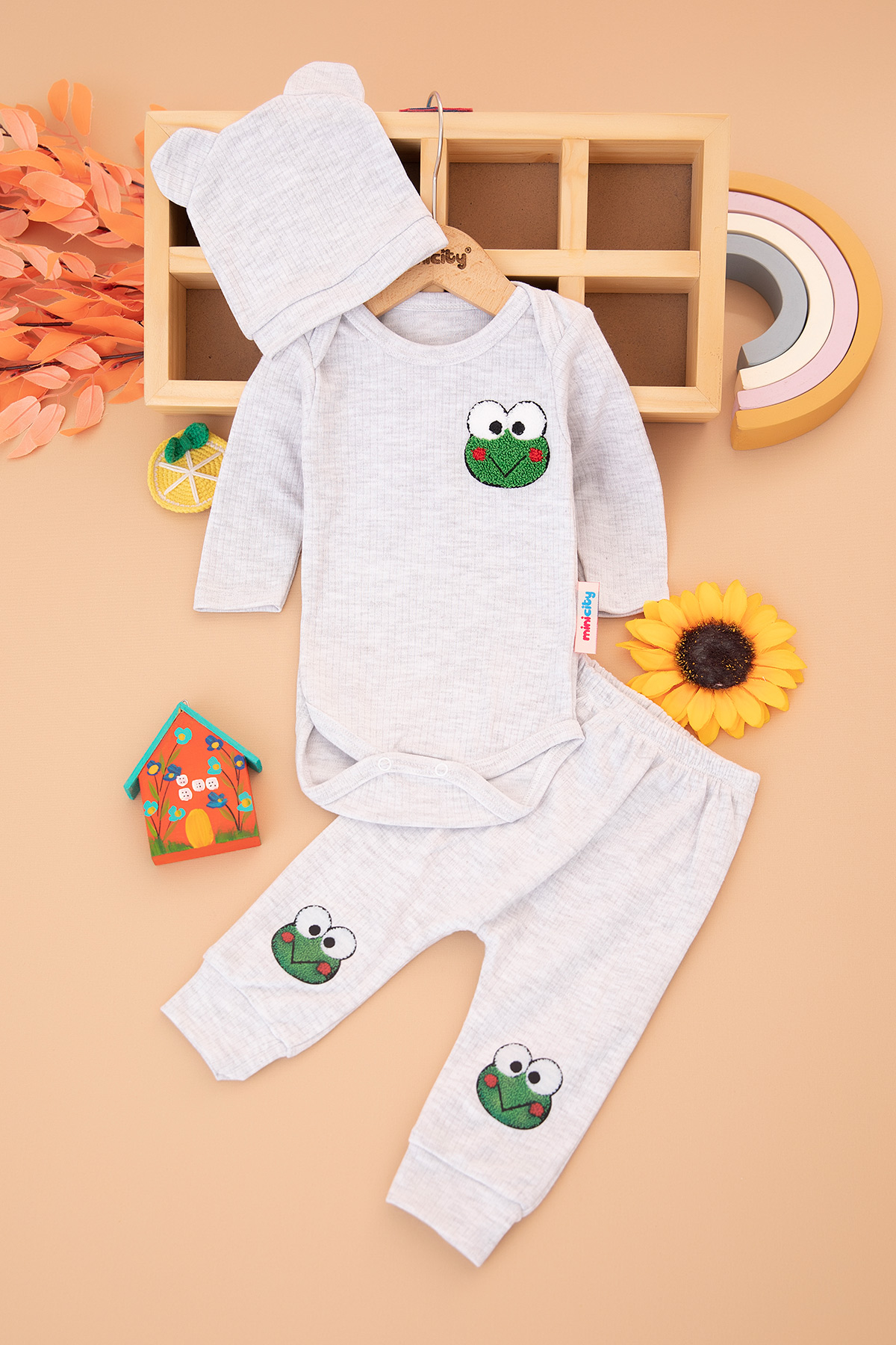 Bebek Kurbağa Nakışlı Üçlü Takım - 2022 (3-9 Ay)