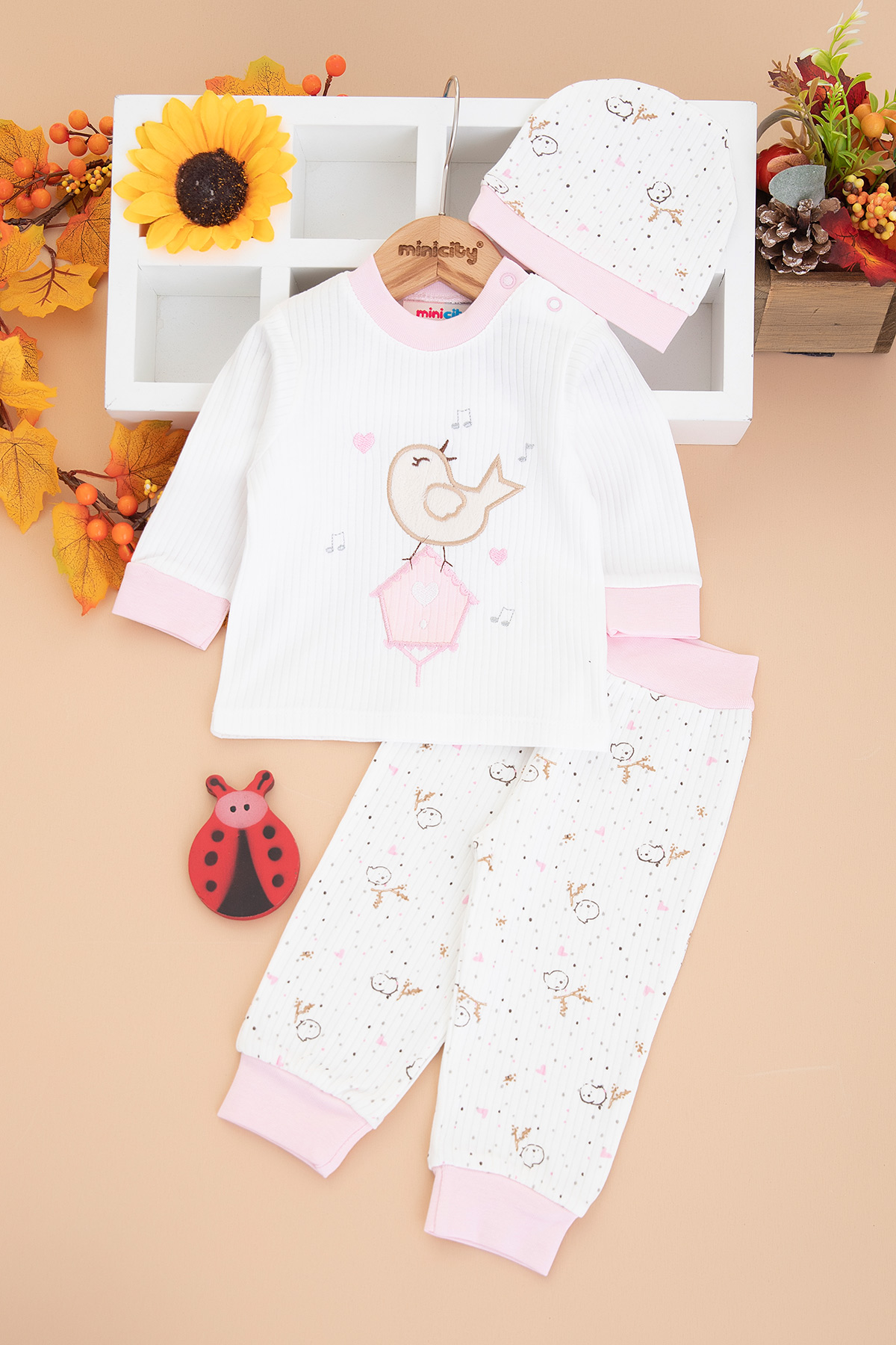 Bebek Kuş Nakışlı Zıbın Takımı - 2215 (3-9 Ay)