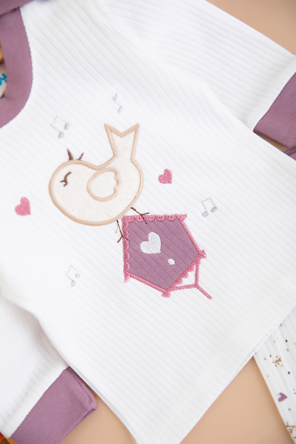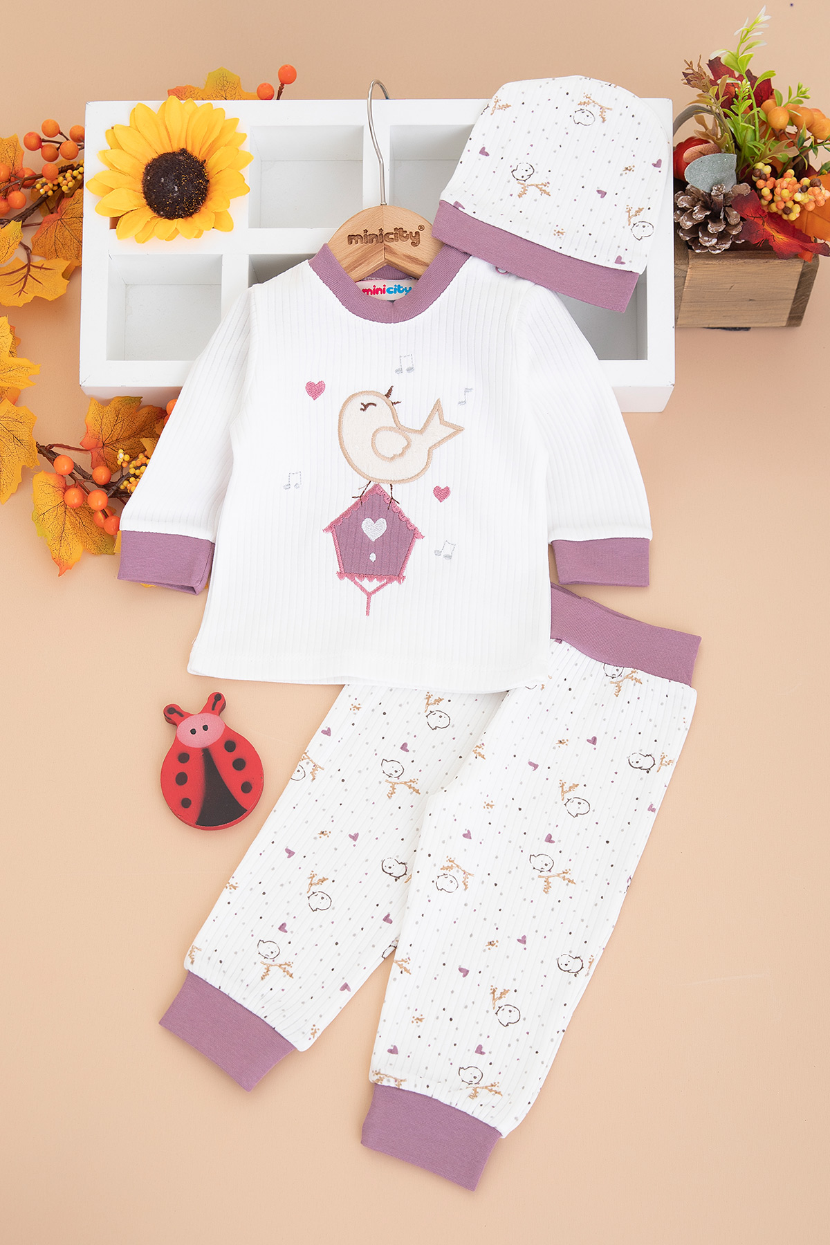 Bebek Kuş Nakışlı Zıbın Takımı - 2215 (3-9 Ay)