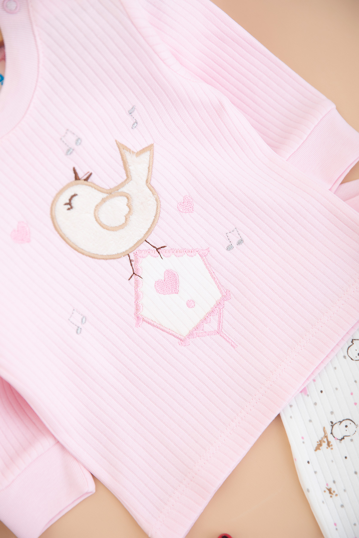 Bebek Kuş Nakışlı Zıbın Takımı - 2215 (3-9 Ay)