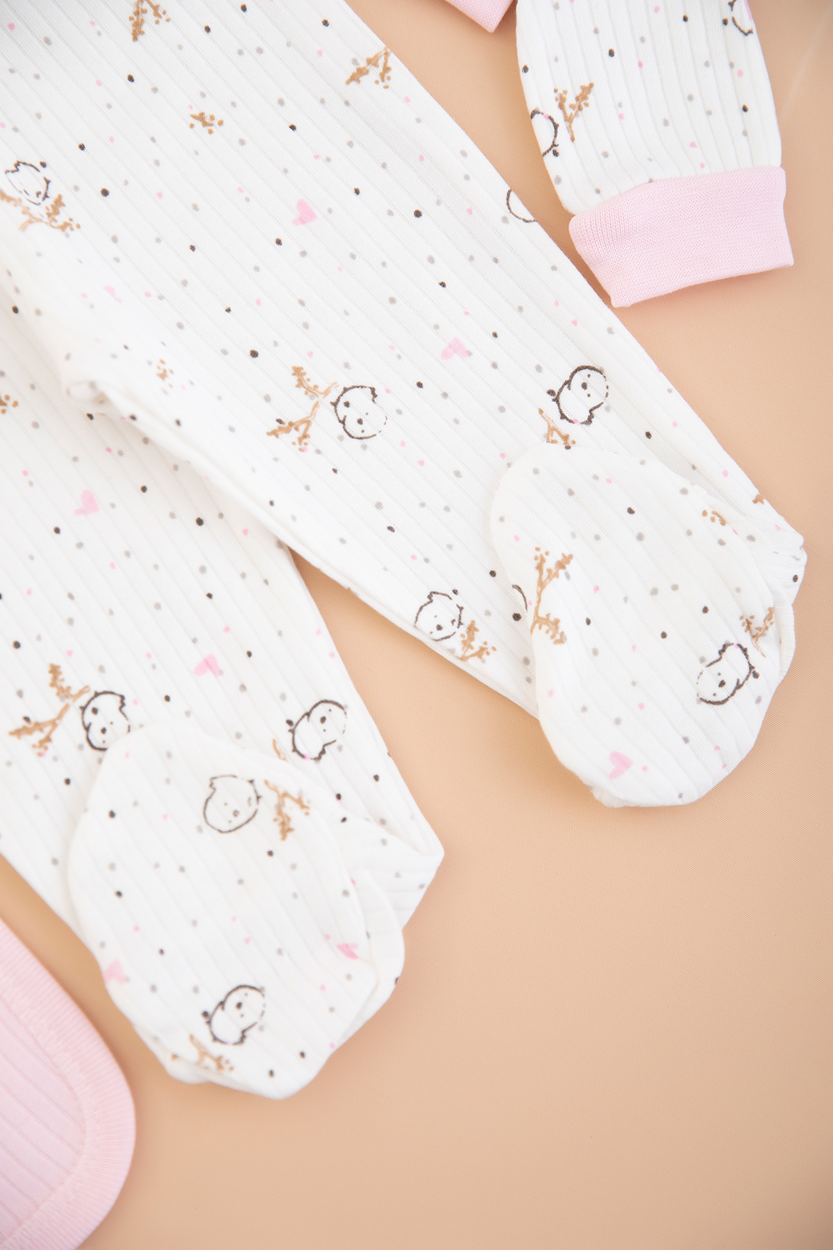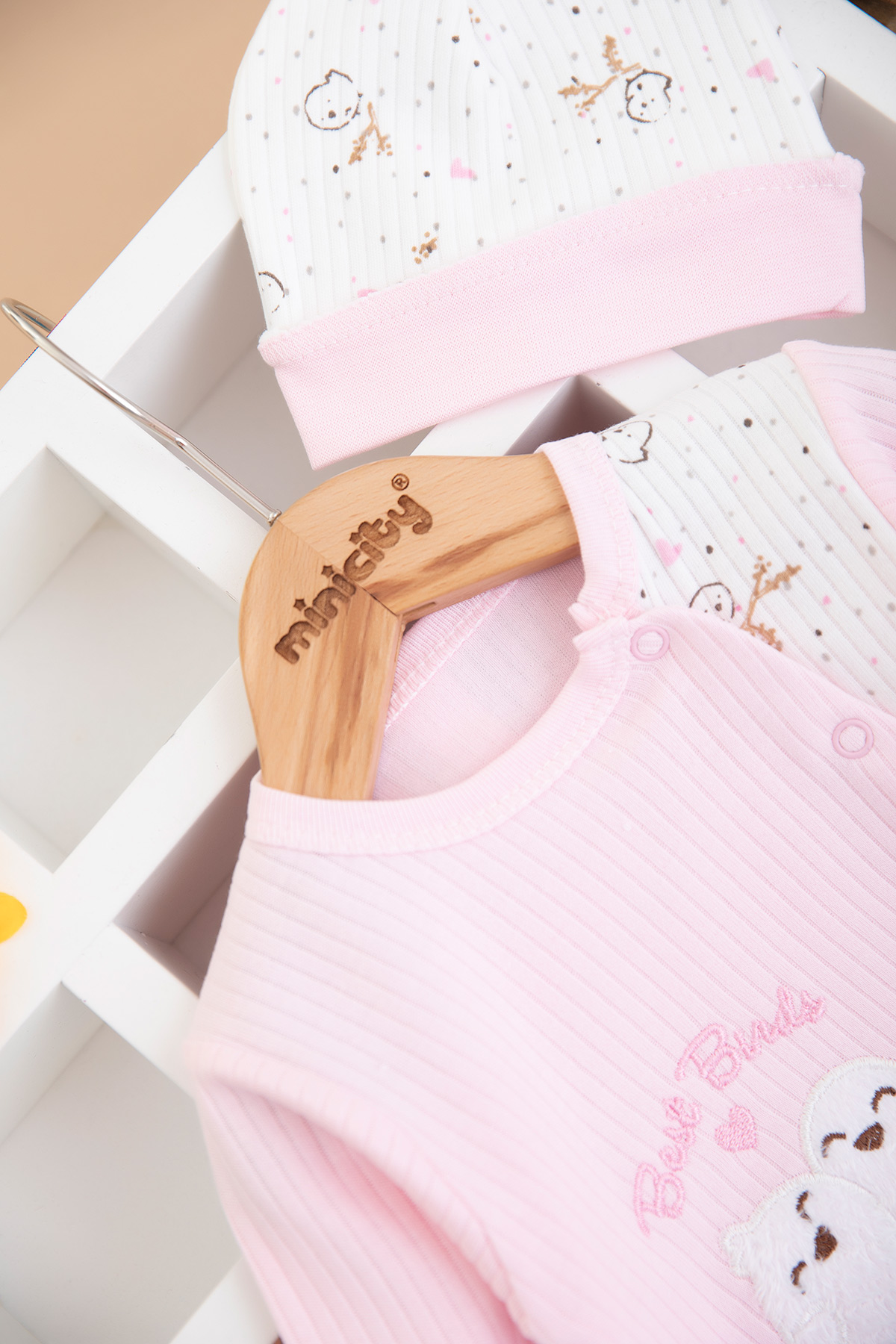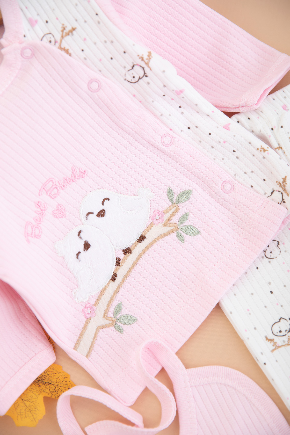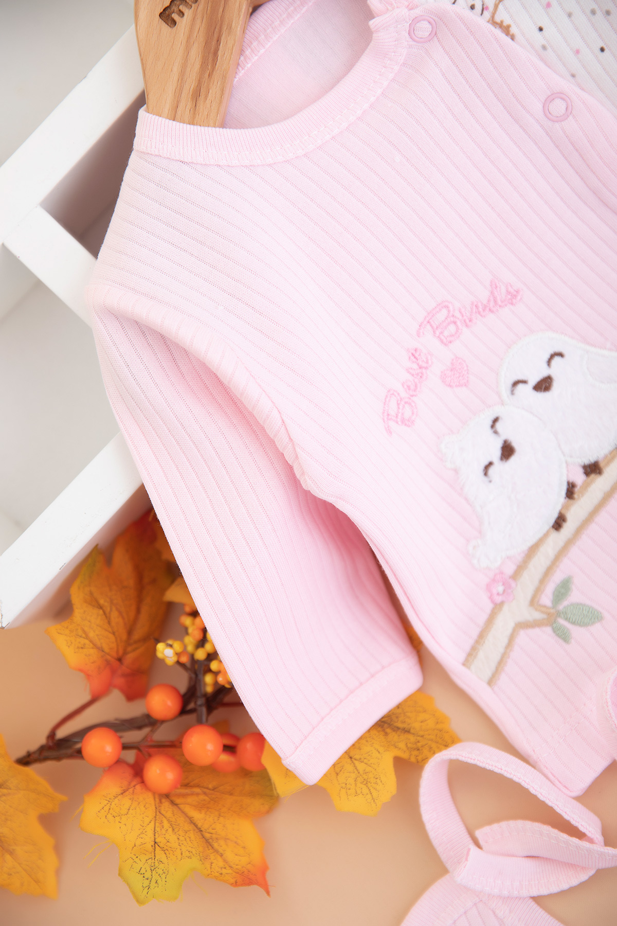 Bebek Kuşlar Nakışlı 5`Li Zıbın Seti - 1018 (0-3 Ay)