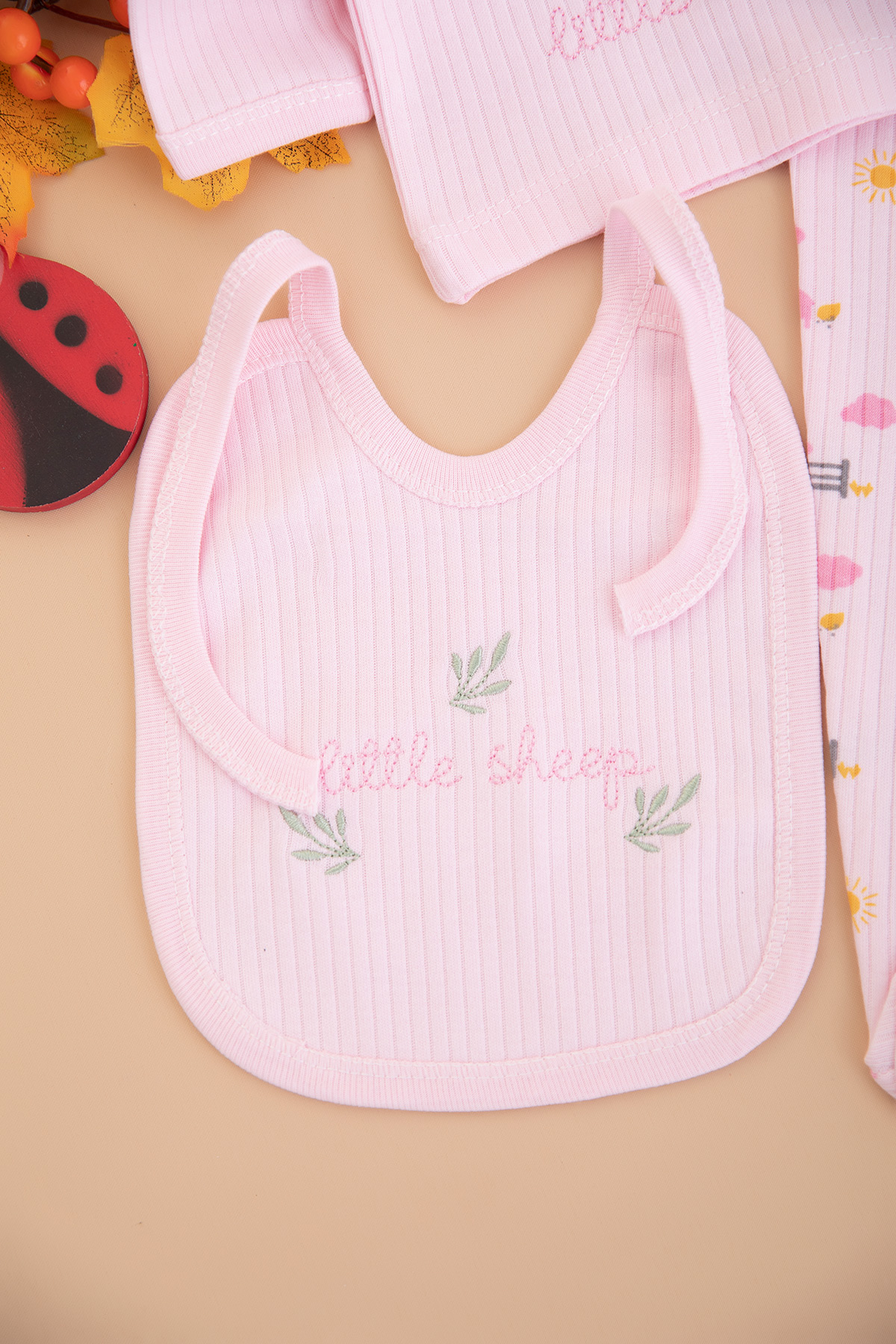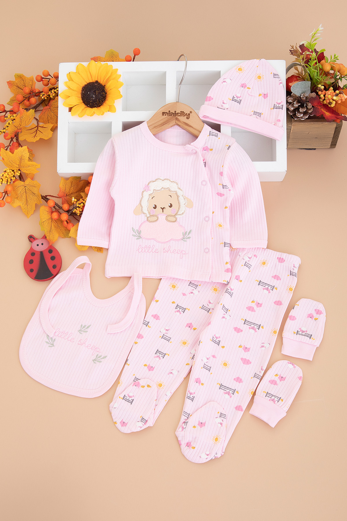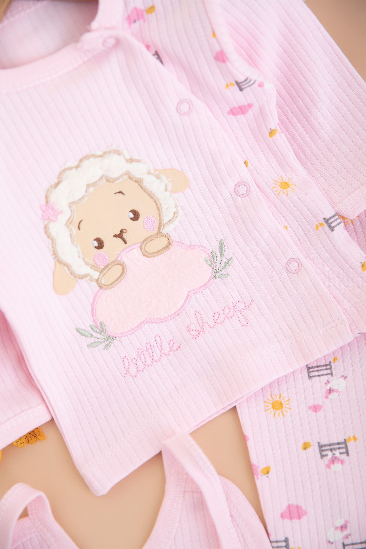 Bebek Kuzu Nakışlı 5`Li Zıbın Seti - 1017 (0-3 Ay)