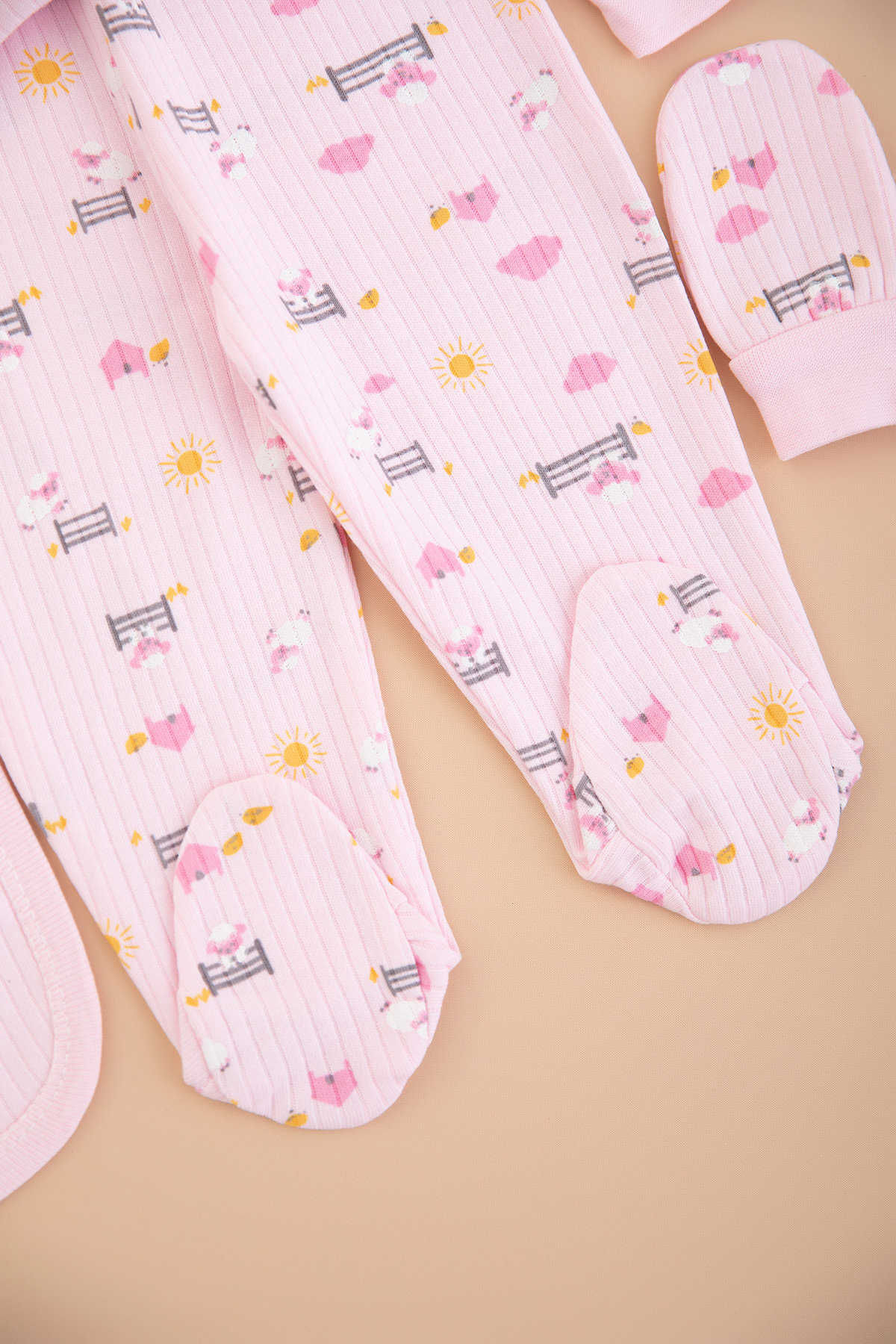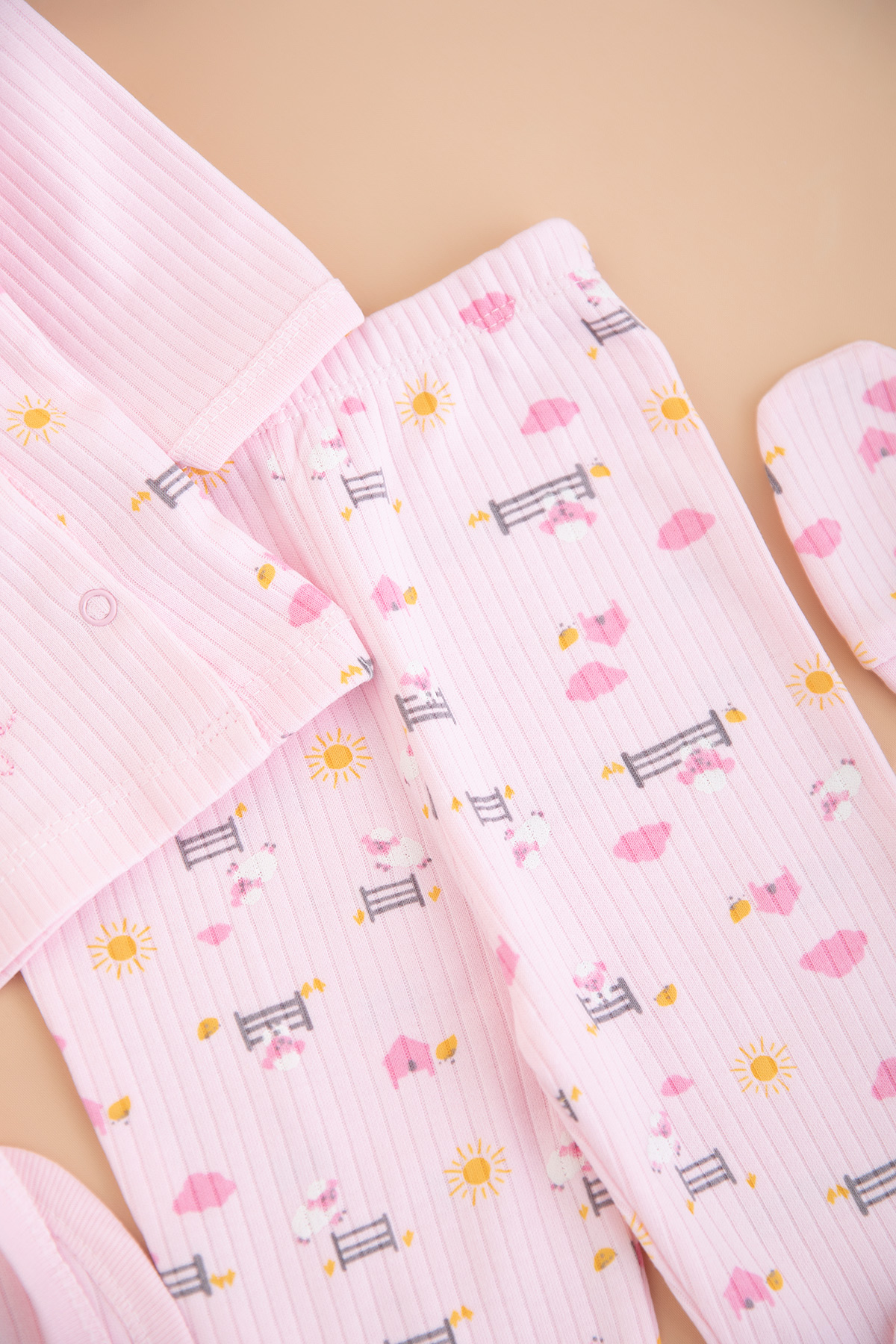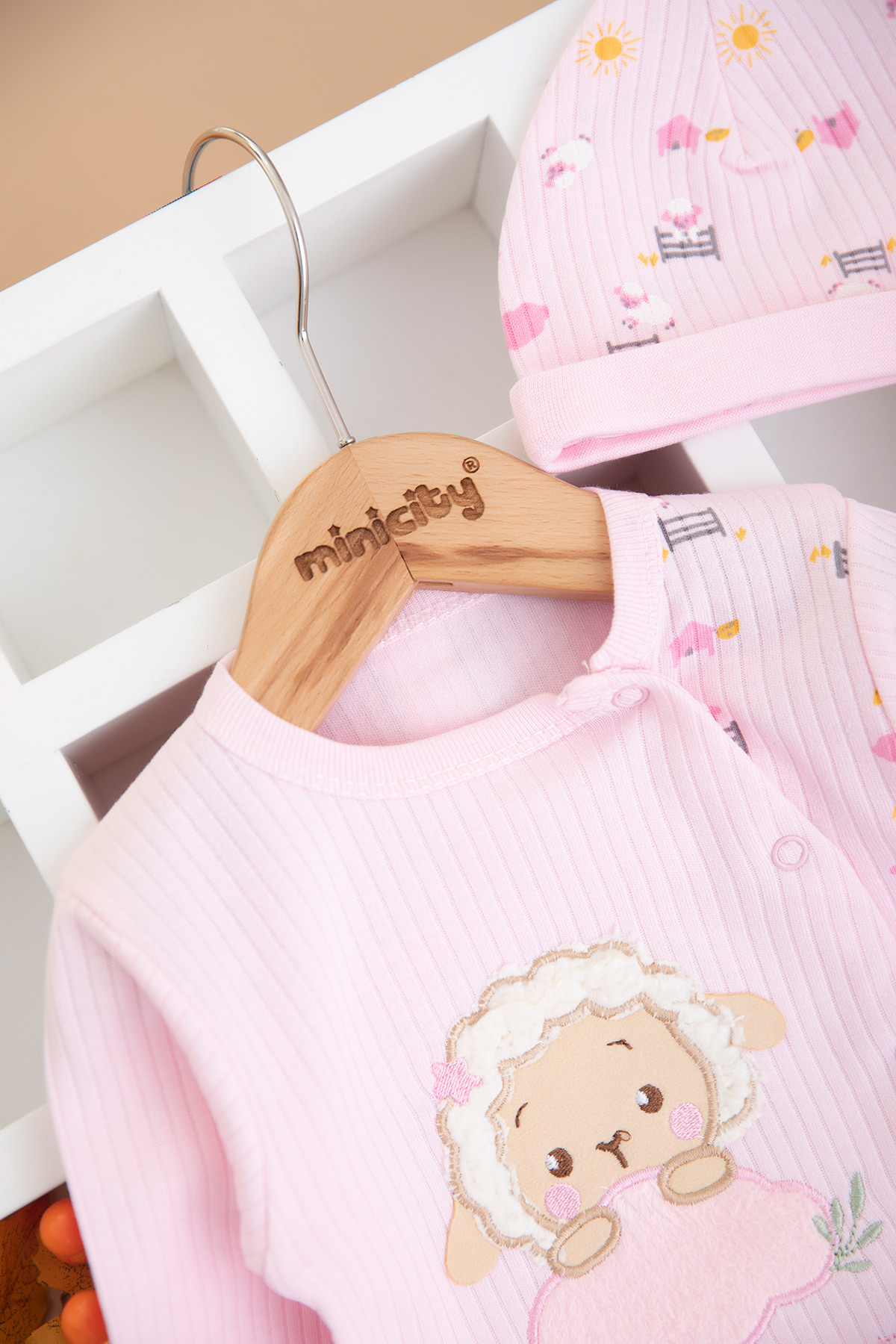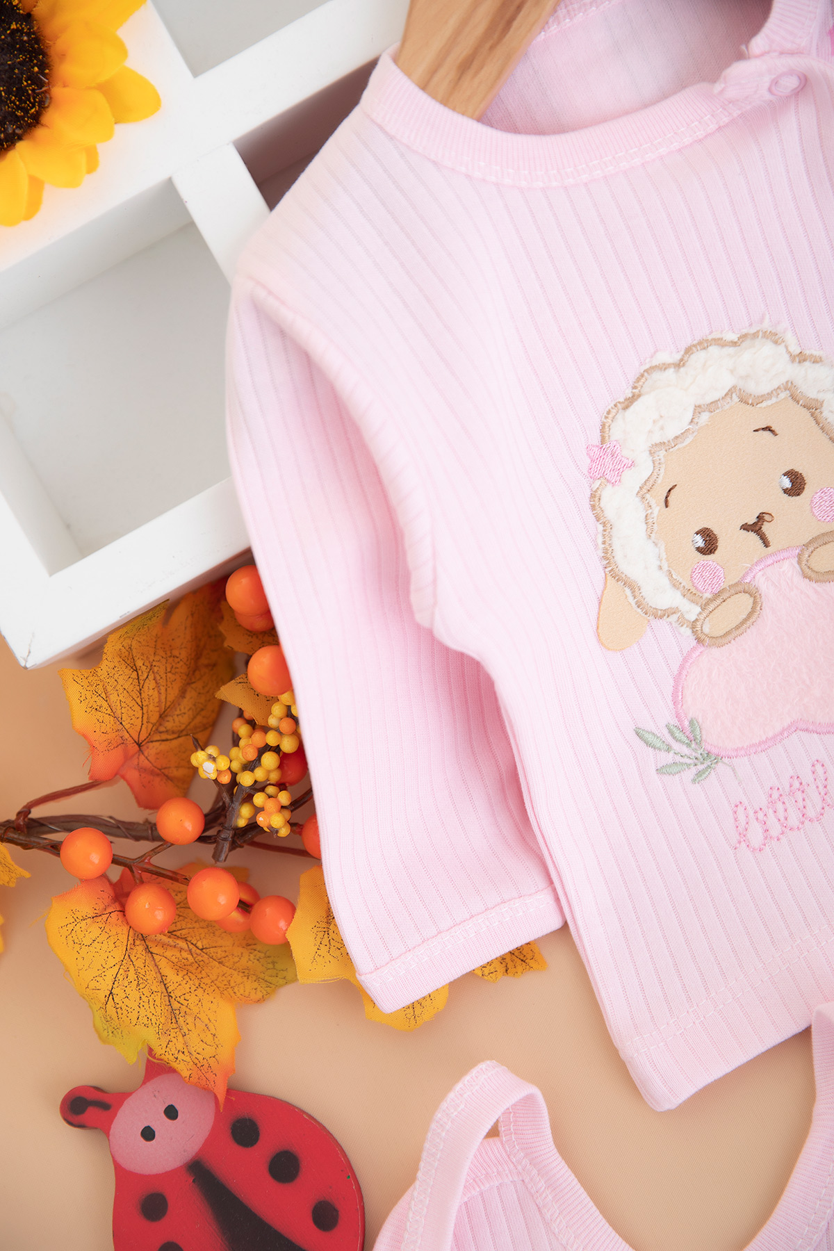 Bebek Kuzu Nakışlı 5`Li Zıbın Seti - 1017 (0-3 Ay)