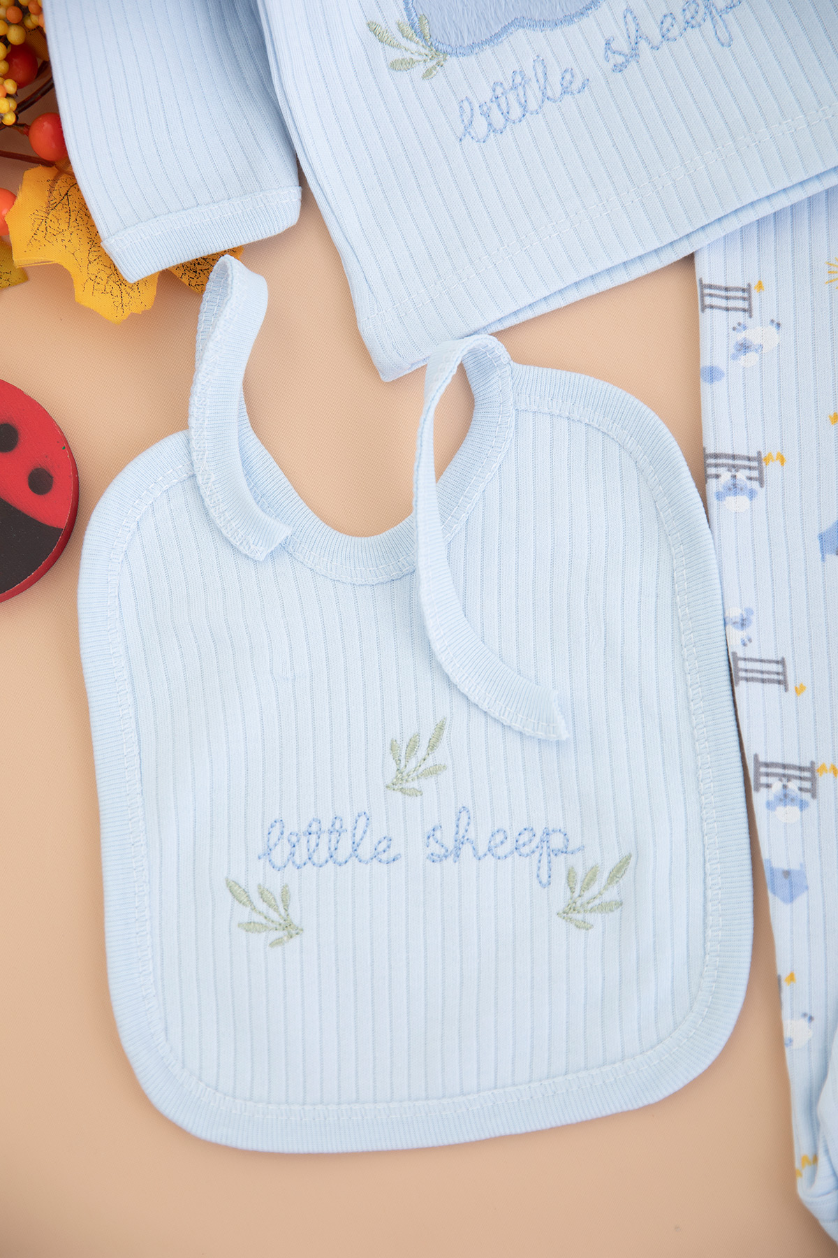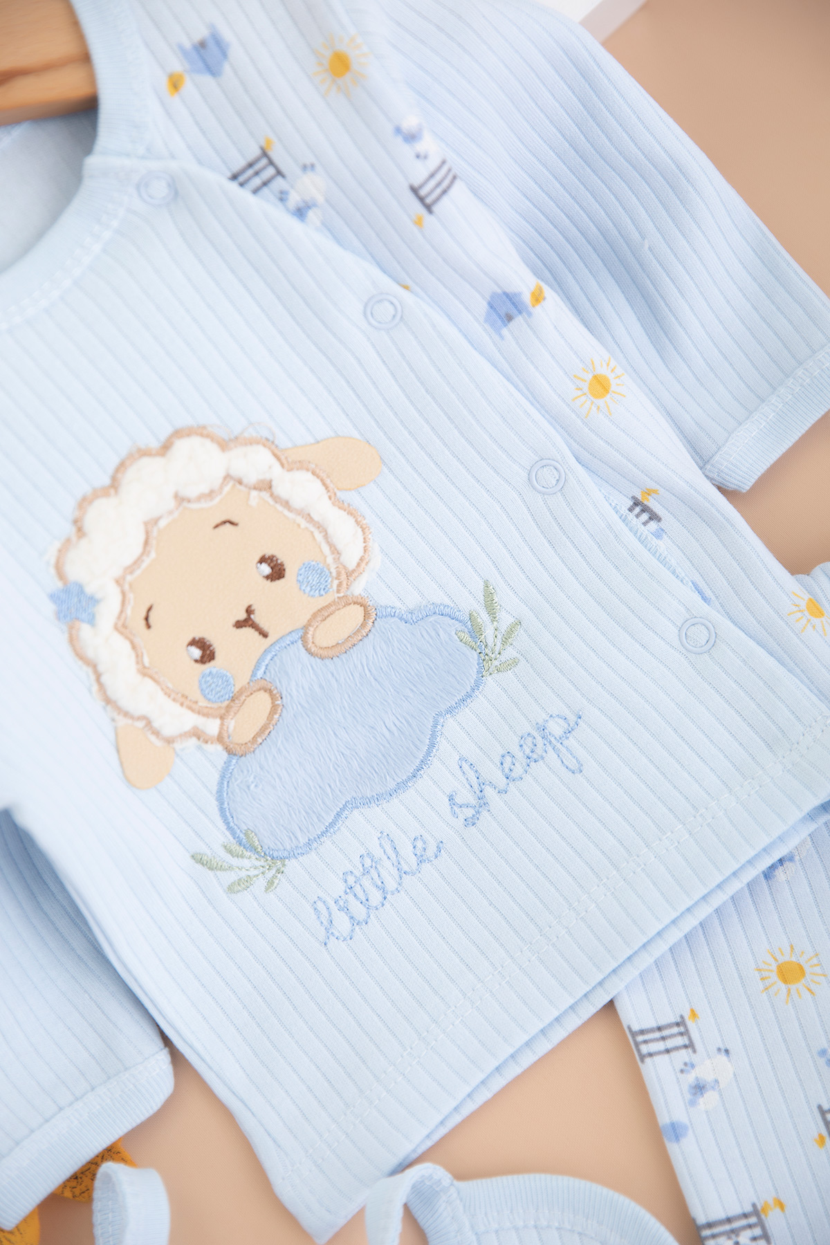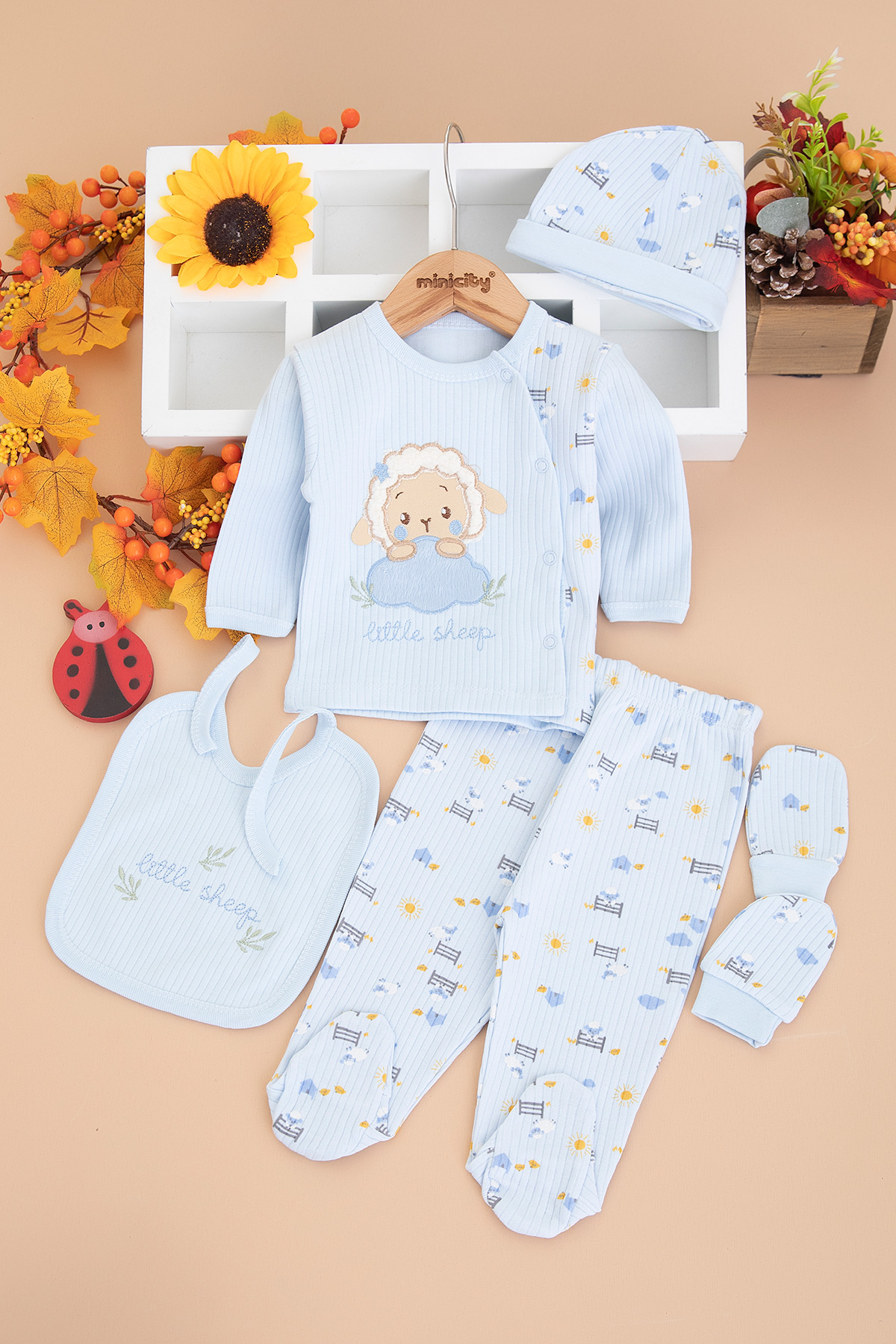 Bebek Kuzu Nakışlı 5`Li Zıbın Seti - 1017 (0-3 Ay)
