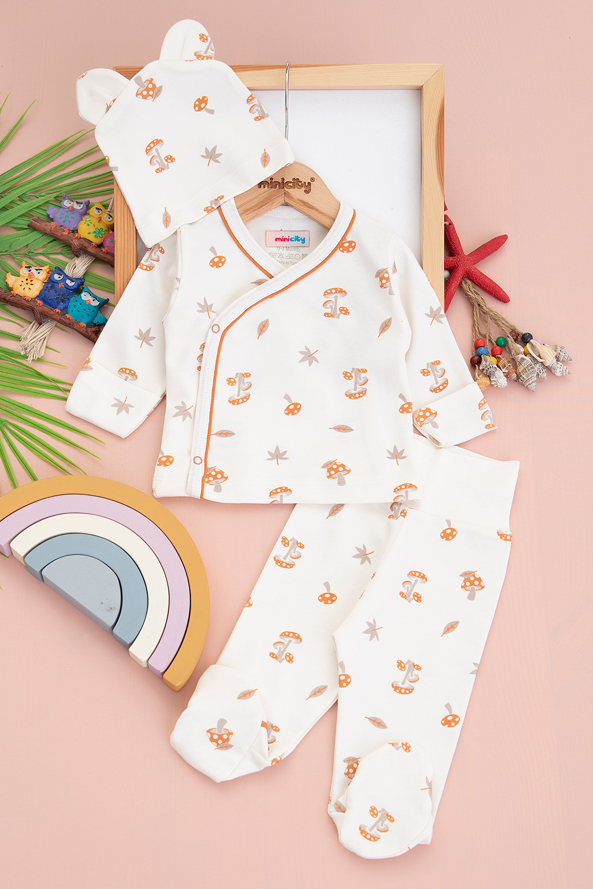 Bebek Mantar Biyeli Üçlü Zıbın Takım - 1057 (0-3 Ay)
