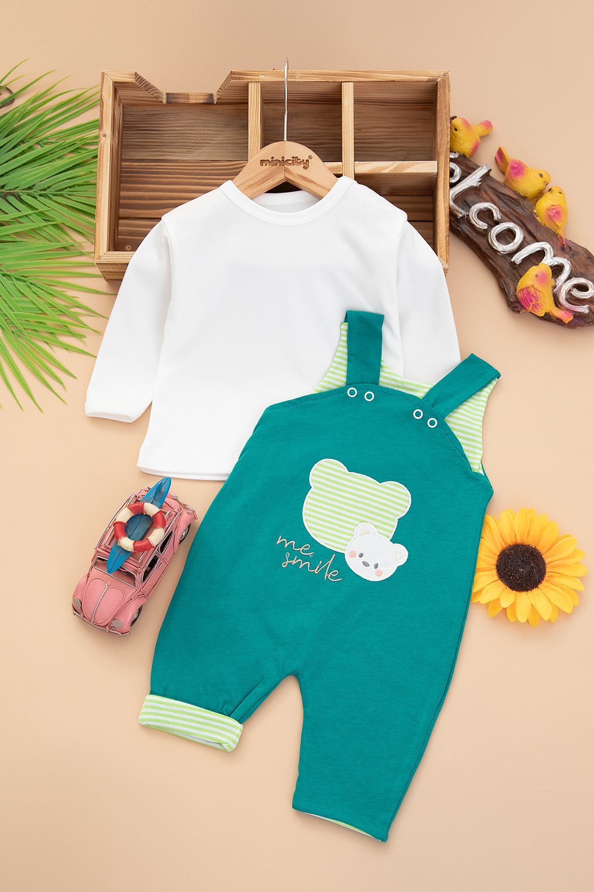 Bebek Paça Çizgili İkili Tulum - 4257 (3-9 Ay)